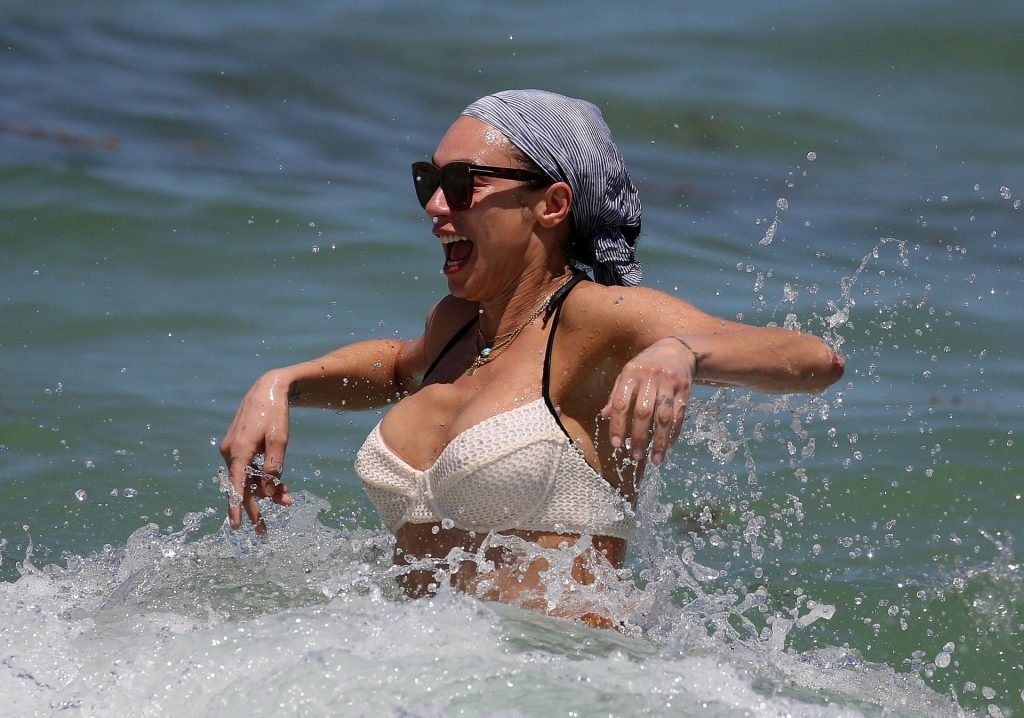 Lilly Becker столкнулась с неприятной ситуацией, когда её верхняя часть бикини слетела после удара большой волны во время купания на пляже Майами, 13.04.2019. Казалось, что Lilly отлично проводит время, купаясь на пляже Майами, когда внезапно подошла огромная волна и сорвала верх бикини. Lilly рассмеялась, схватила свой топ, и к ней присоединился её сын, Амадеус.