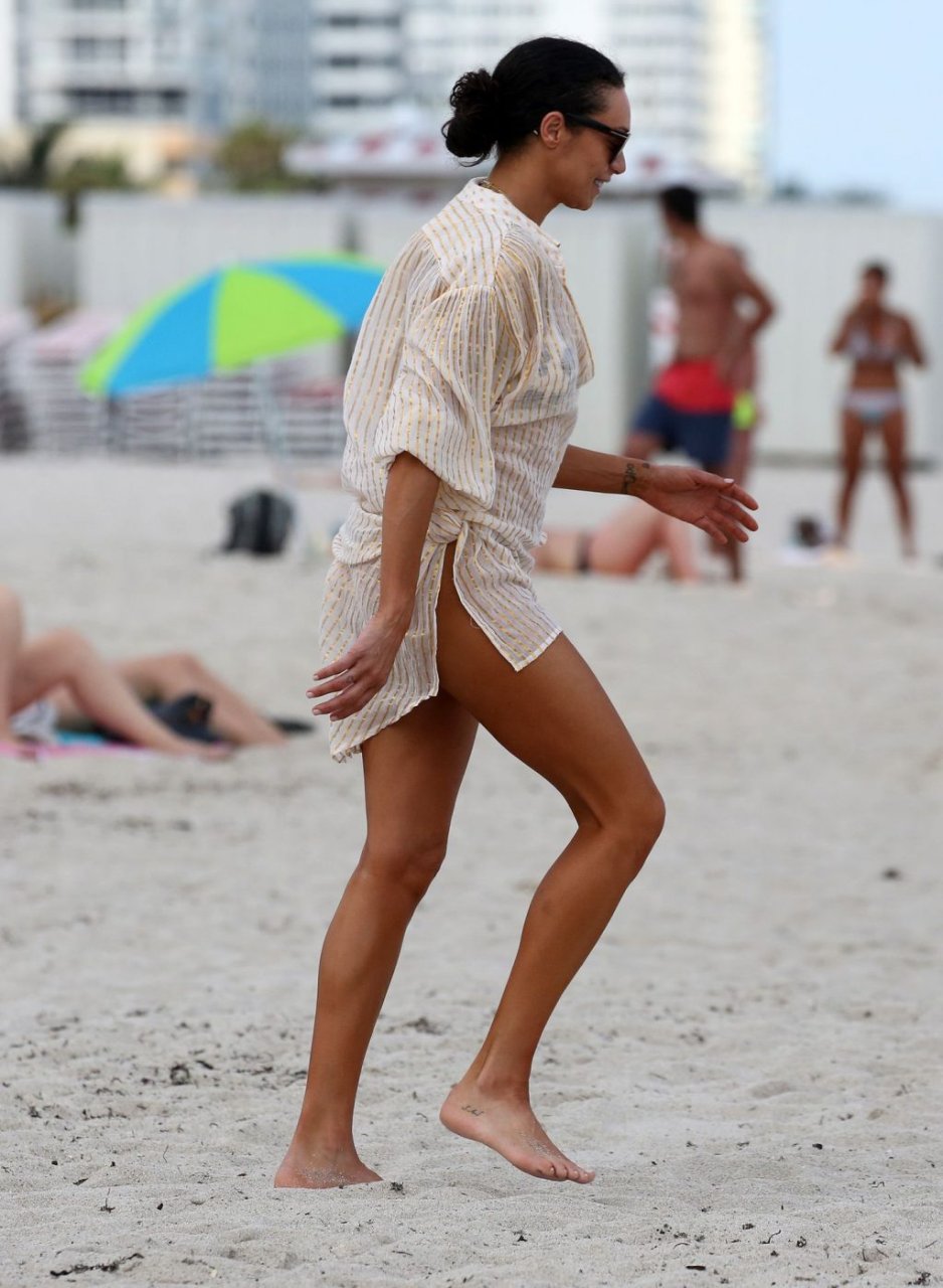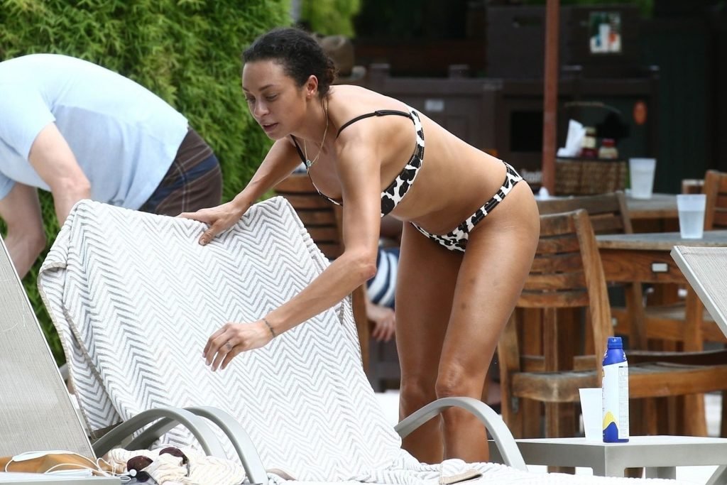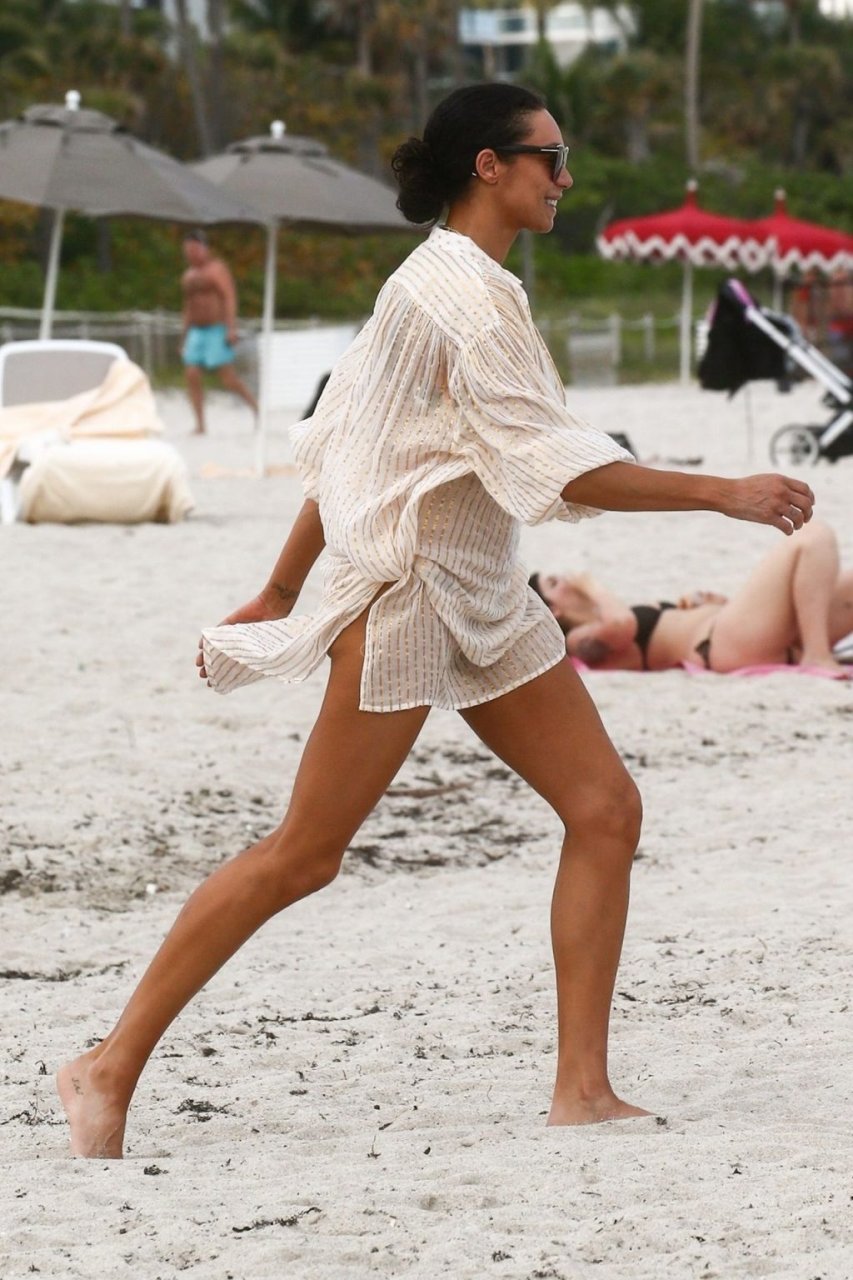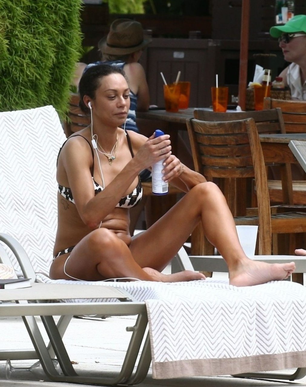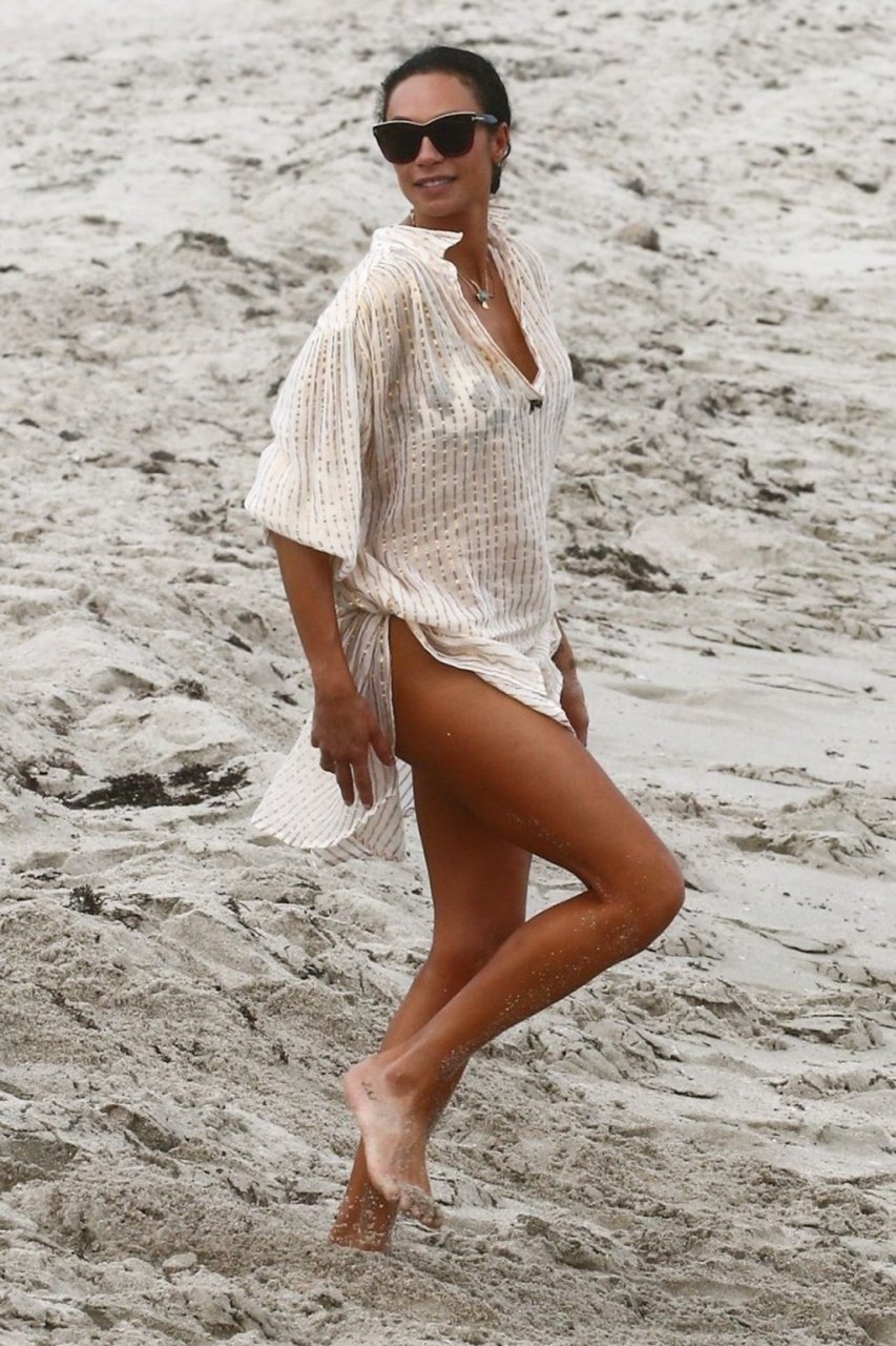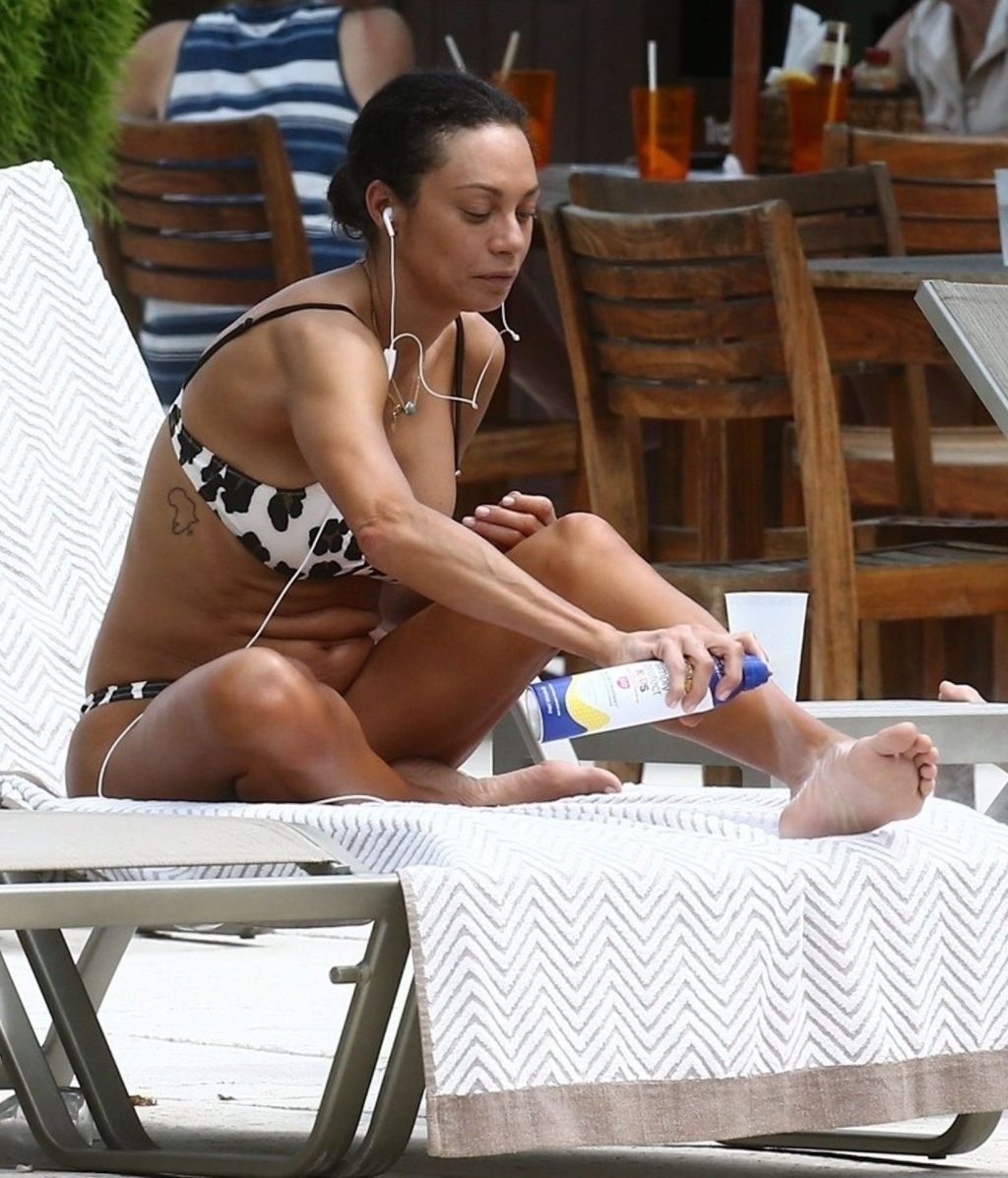 Недавно ставшая свободной Лилли Беккер загорает в бикини с животным принтом вместе со своим сыном Амадеусом Беккером на солнечном пляже Майами, 10.04.2019. Лилли наносит лосьон, в то время как её сын отдыхает на пляжном кресле.