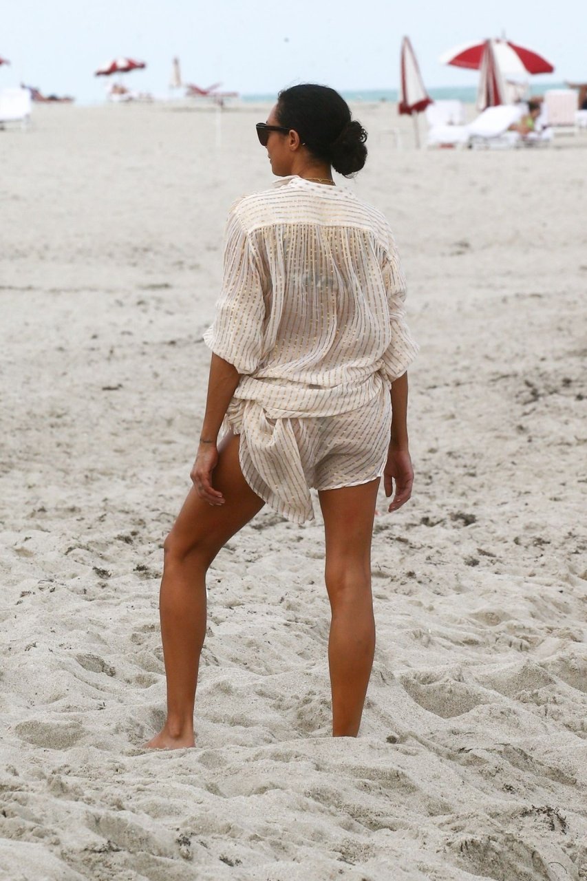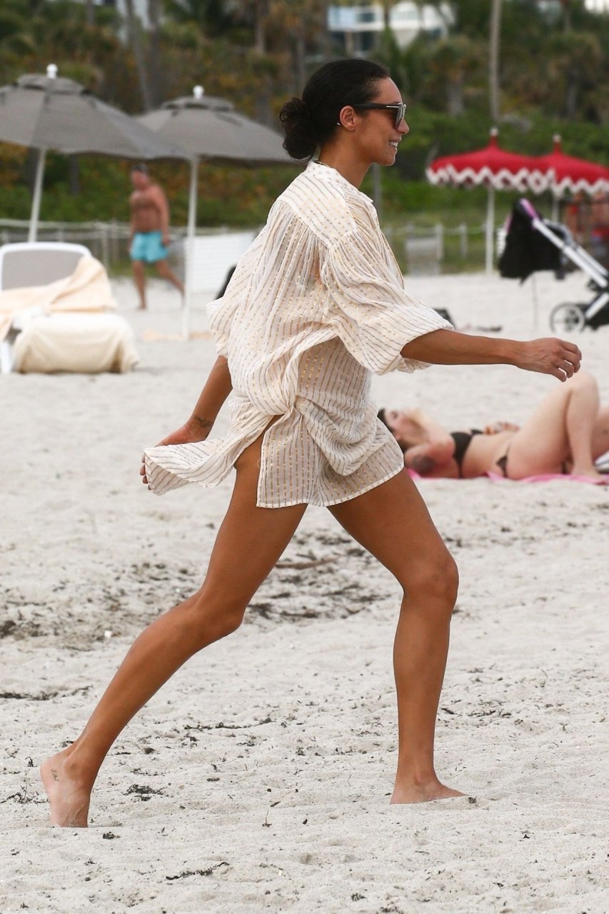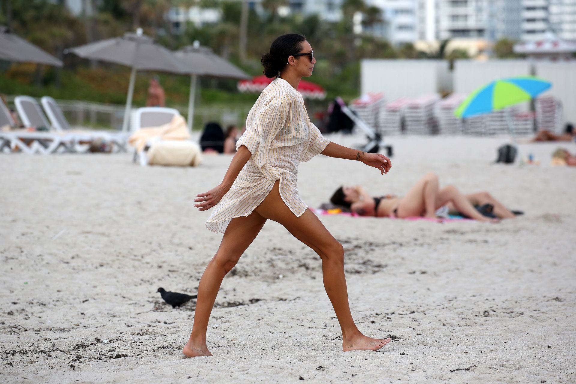 Недавно ставшая свободной Лилли Беккер загорает в бикини с животным принтом вместе со своим сыном Амадеусом Беккером на солнечном пляже Майами, 10.04.2019. Лилли наносит лосьон, в то время как её сын отдыхает на пляжном кресле.