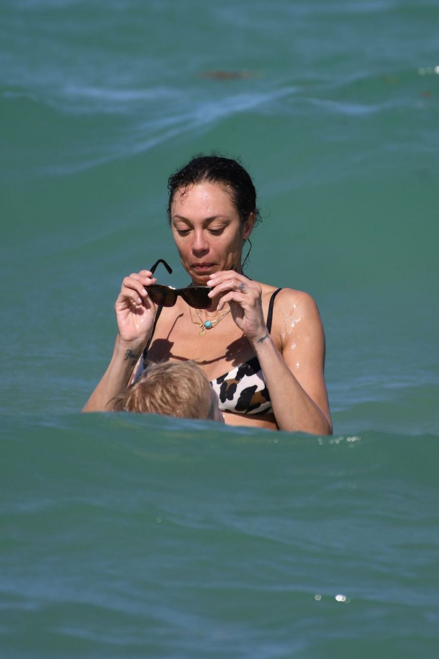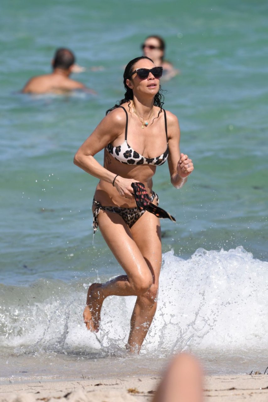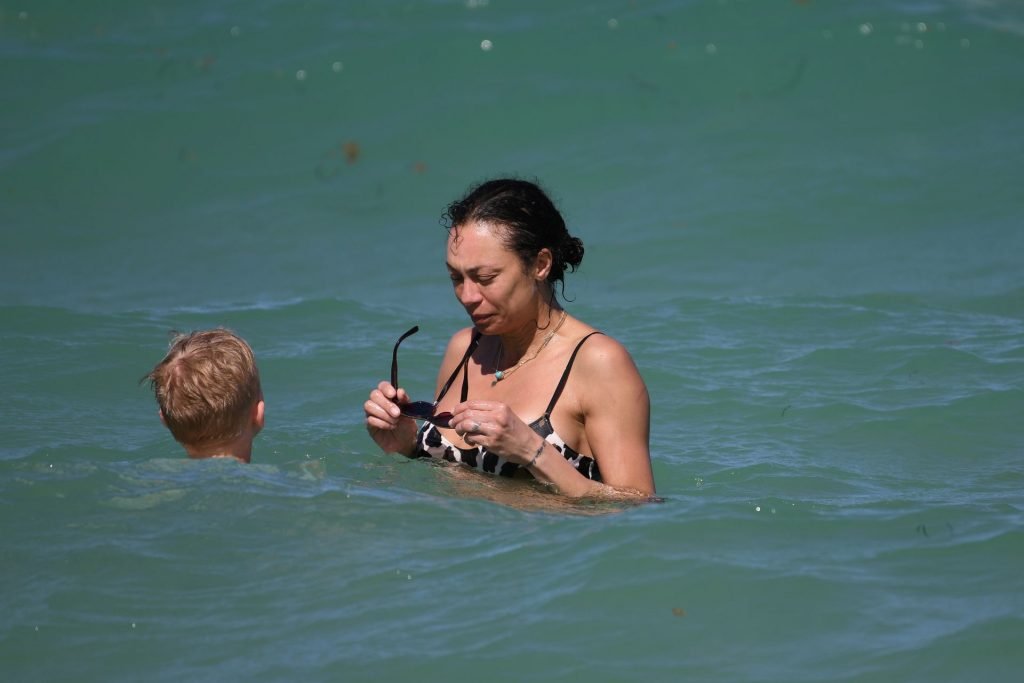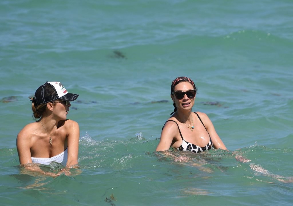 Lilly Becker демонстрирует свою фигуру в несочетающемся бикини, весело проводя время на пляже Майами, 16.04.2019. Бывшая миссис Борис Беккер была замечена в компании друзей и сына Амадеуса сегодня днем на пляже Майами в леопардовых плавках и несочетающемся лифе от бикини.