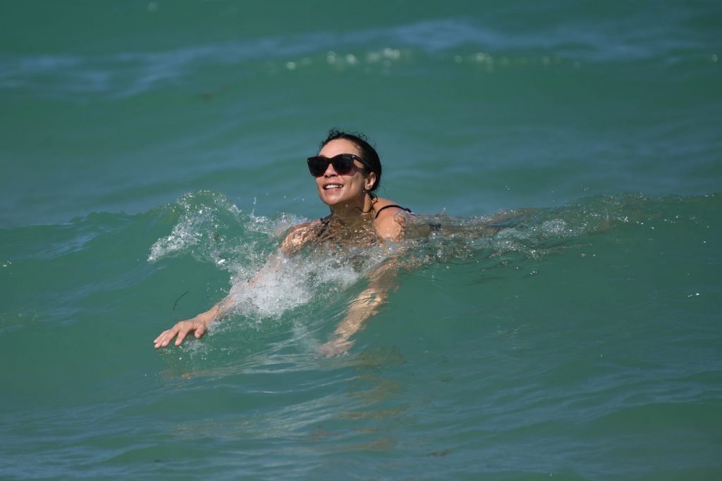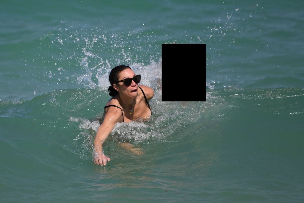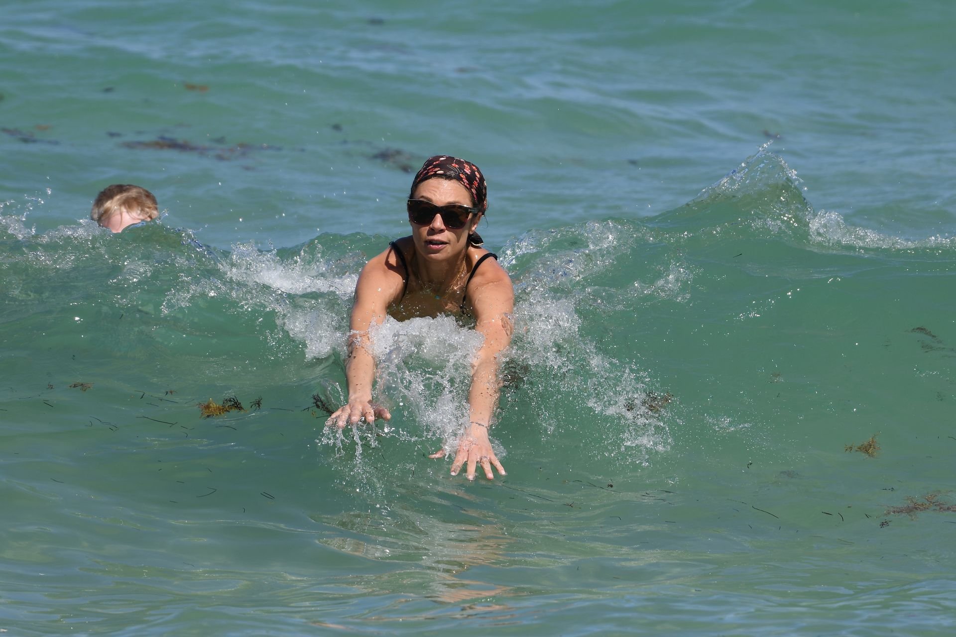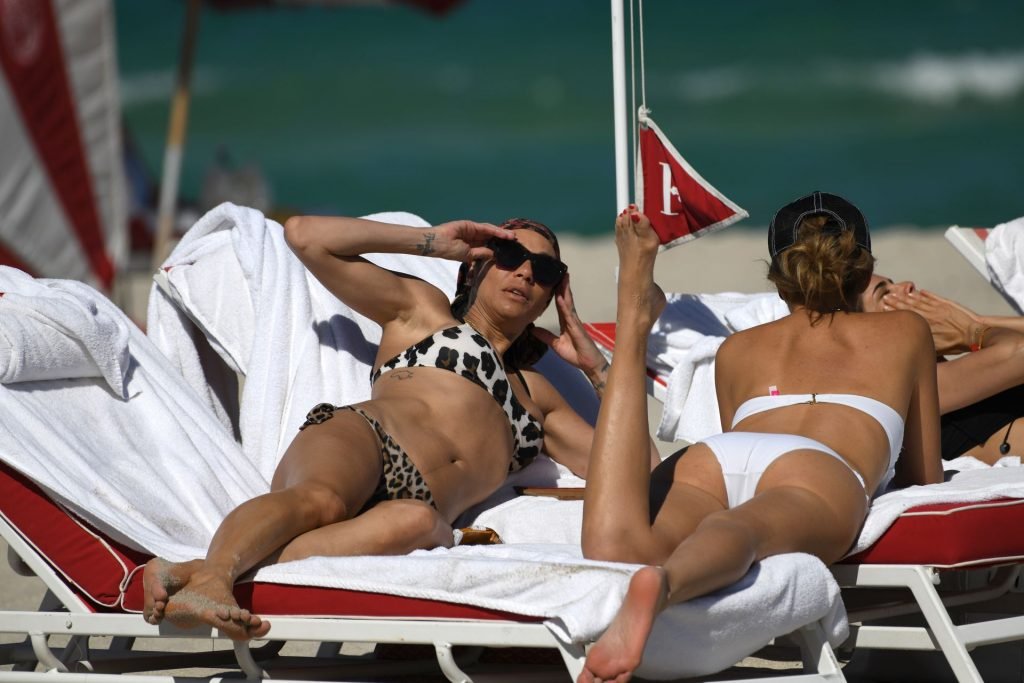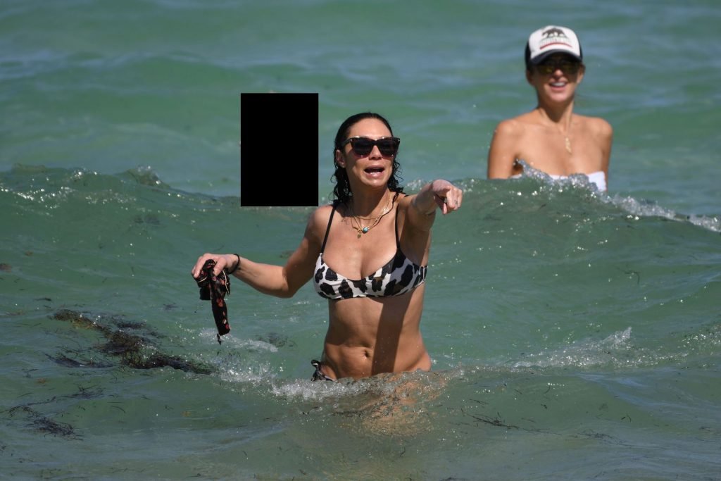 Lilly Becker демонстрирует свою фигуру в несочетающемся бикини, весело проводя время на пляже Майами, 16.04.2019. Бывшая миссис Борис Беккер была замечена в компании друзей и сына Амадеуса сегодня днем на пляже Майами в леопардовых плавках и несочетающемся лифе от бикини.