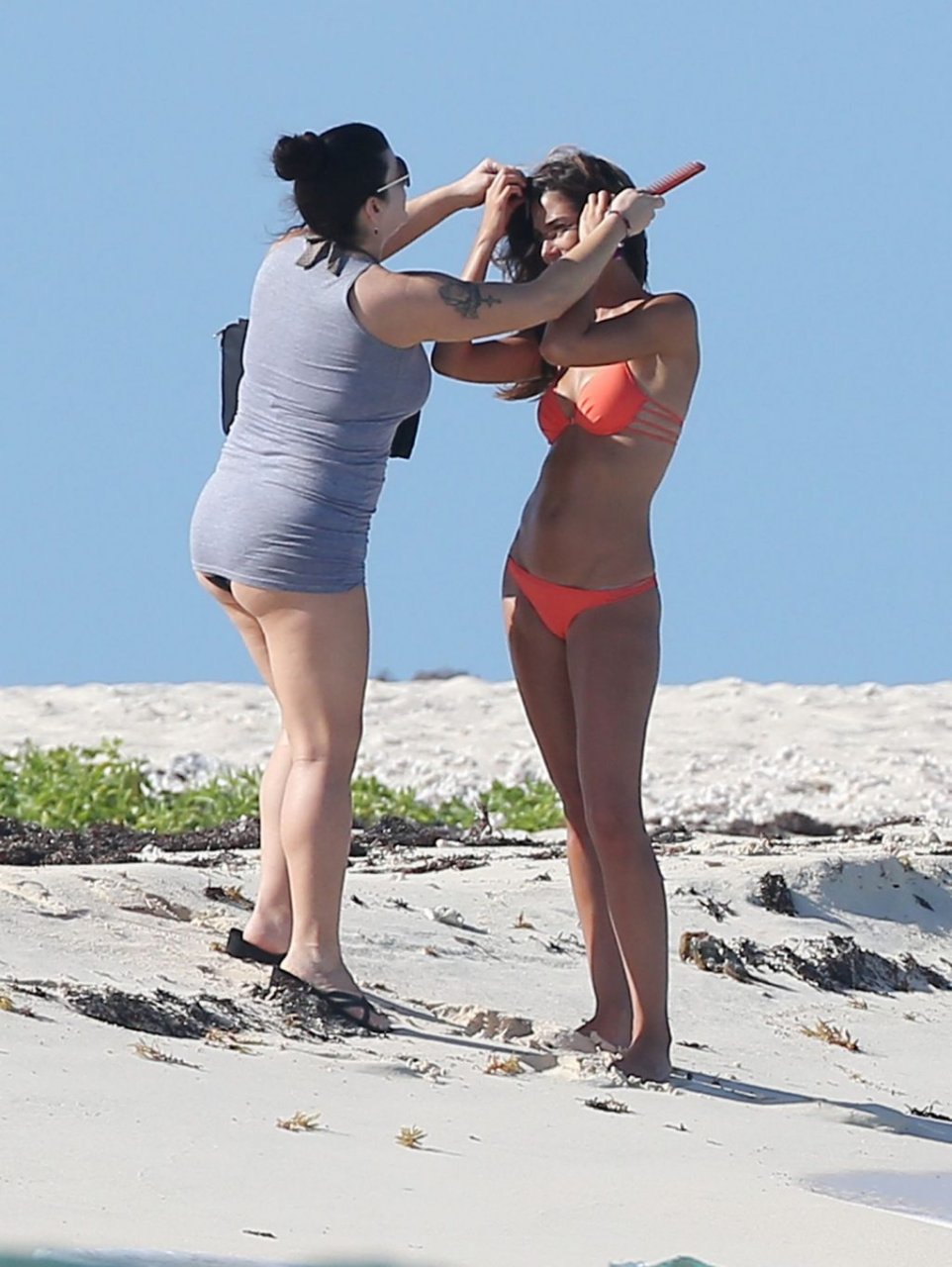 Ангел Victoria’s Secret Лили Олдридж разогревает атмосферу на пляже в Пуэрто-Рико вместе с другими моделями Victoria’s Secret, 01.10.2015.