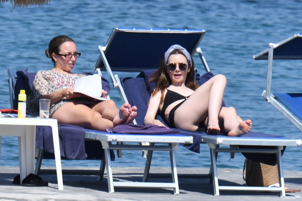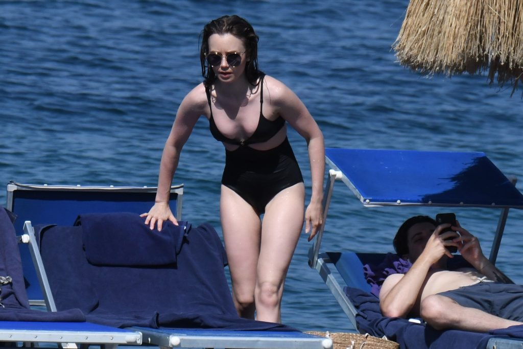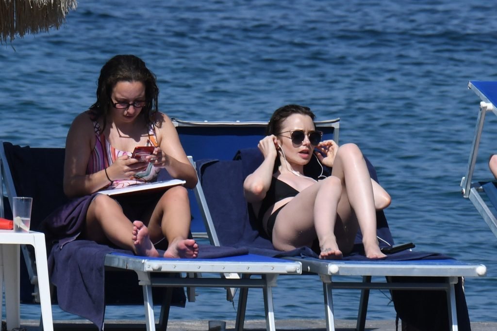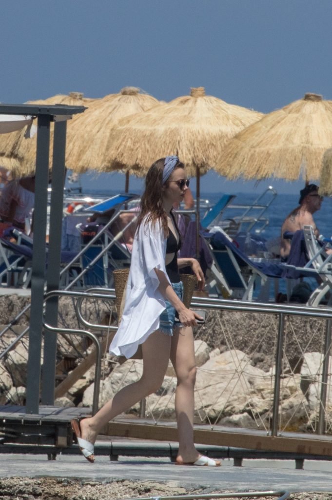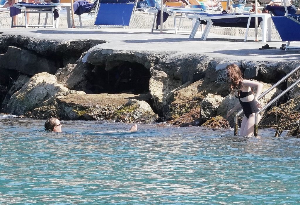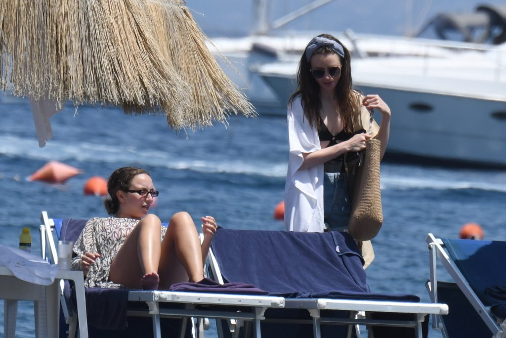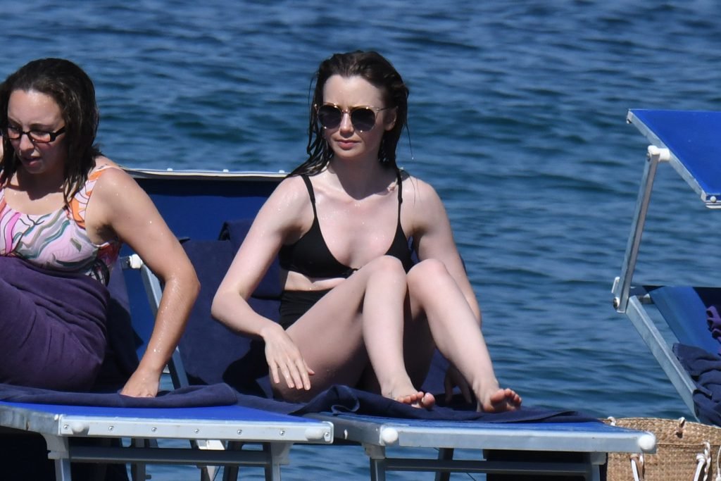 Lily Collins была замечена отдыхающей в отеле Regina Isabella в Искья Порто, Италия, 15.07.2018. 29-летняя актриса была одета в черный цельный купальник.
