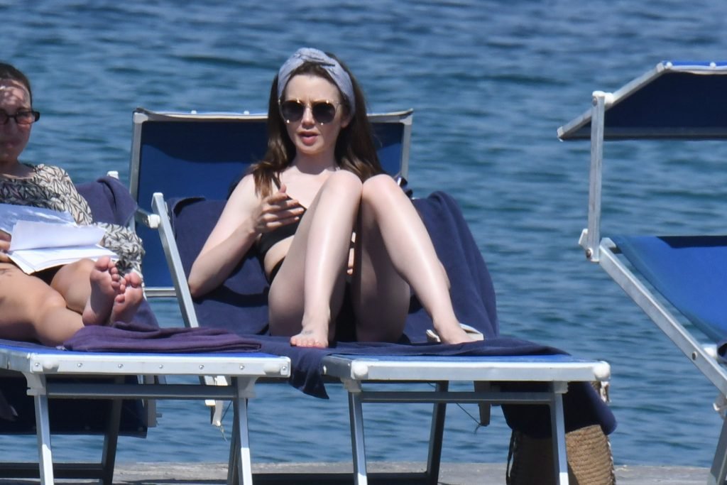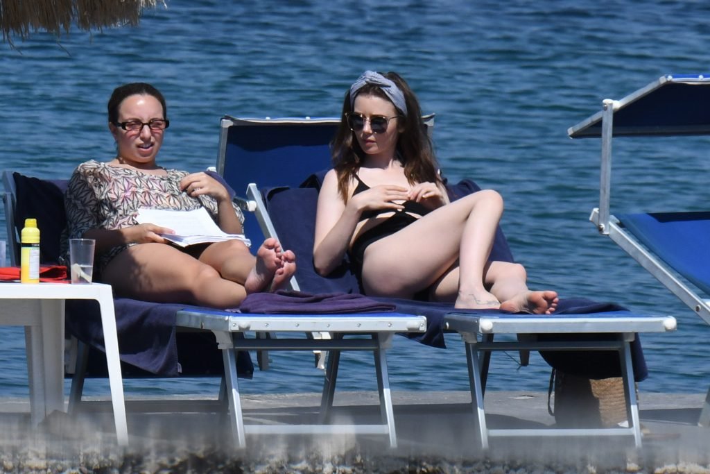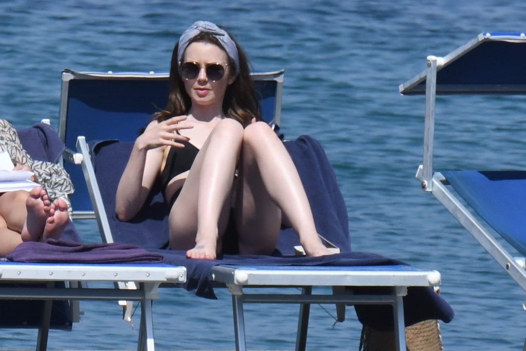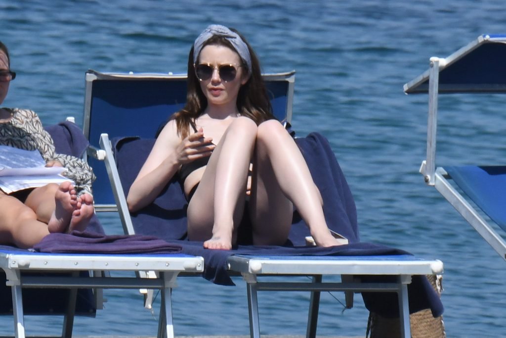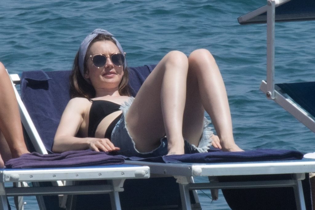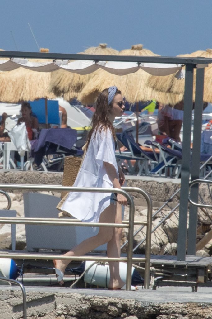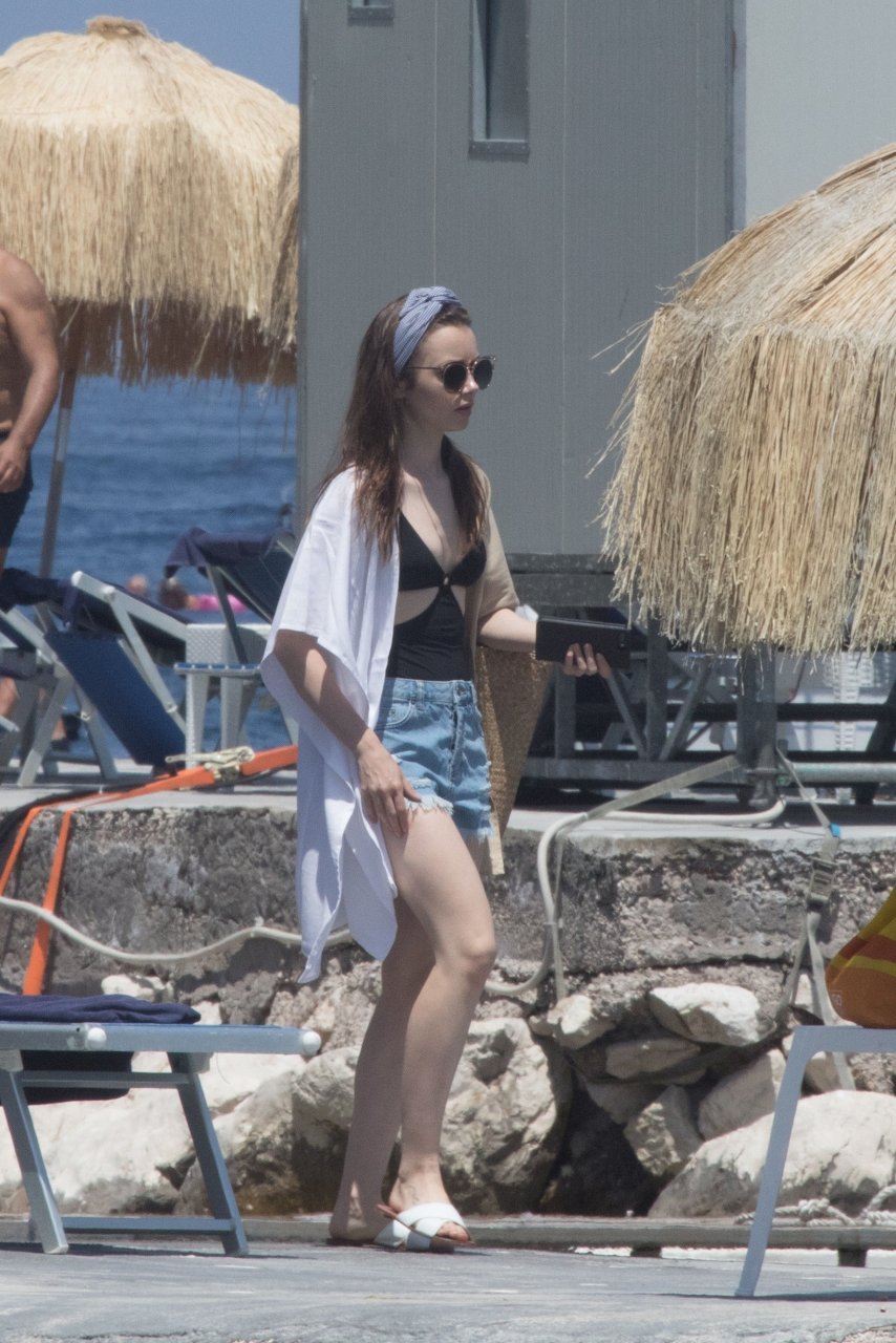 Lily Collins была замечена отдыхающей в отеле Regina Isabella в Искья Порто, Италия, 15.07.2018. 29-летняя актриса была одета в черный цельный купальник.