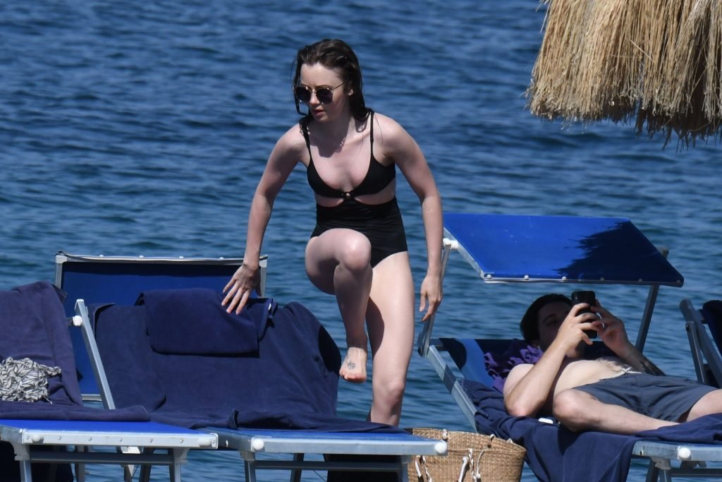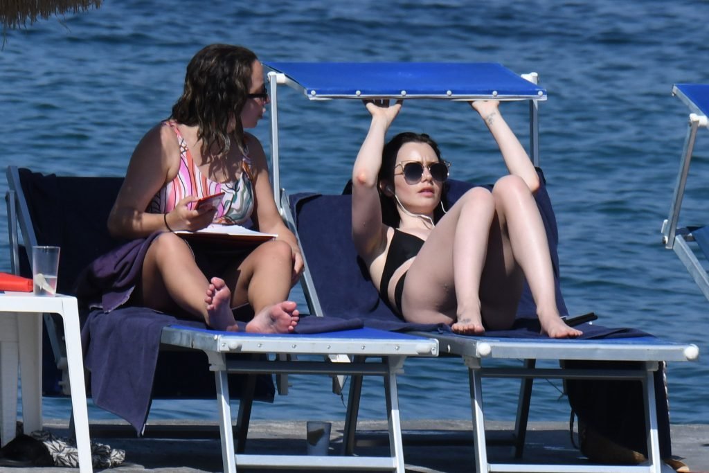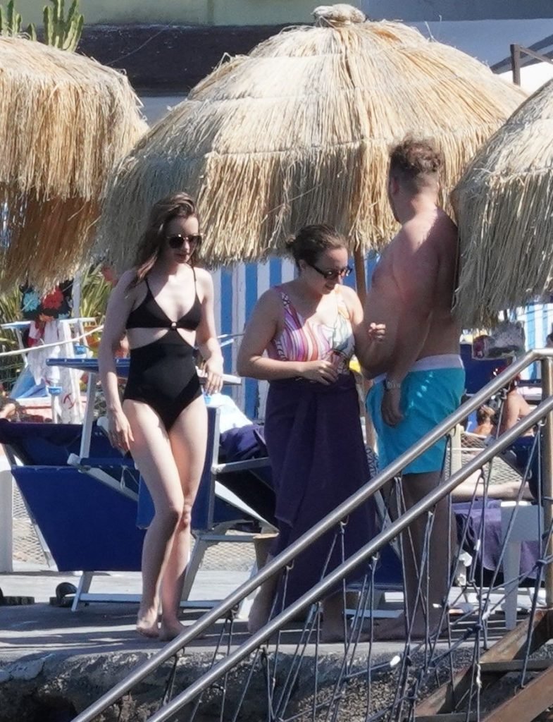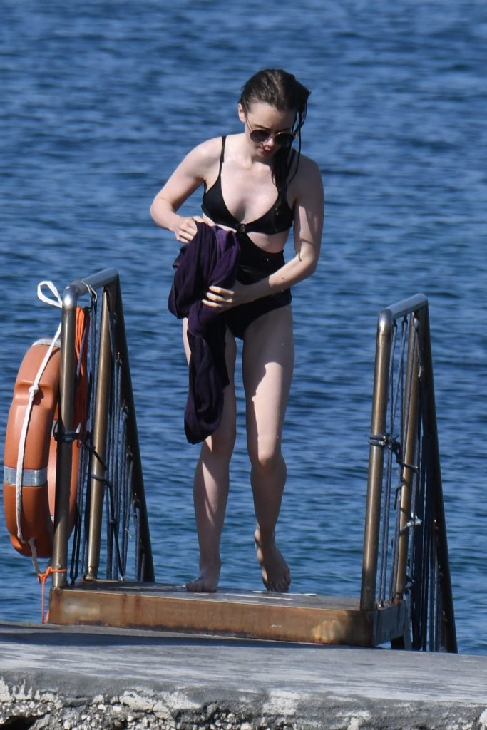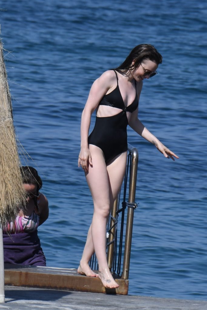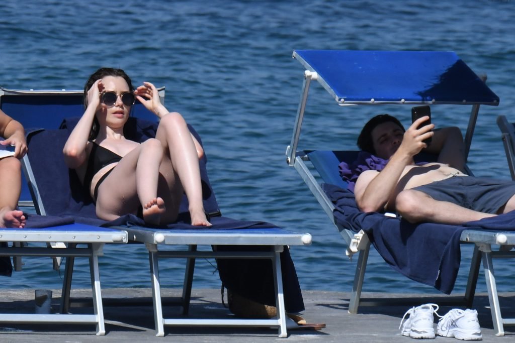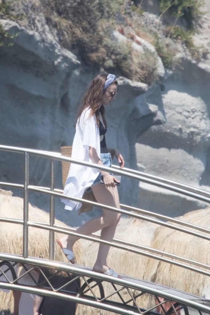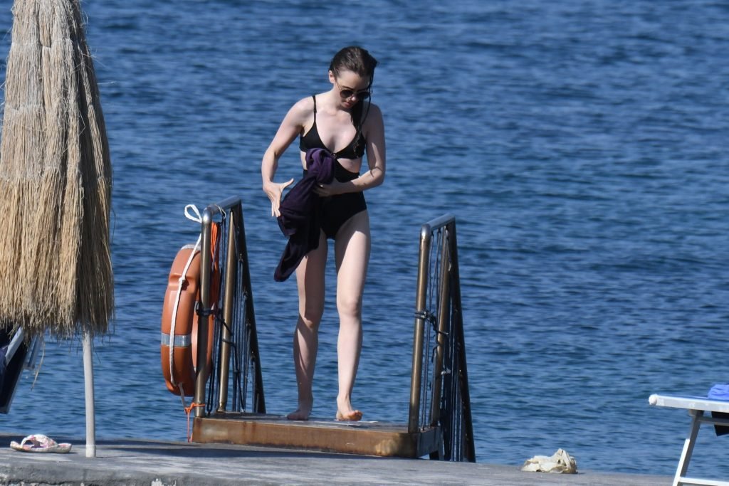 Lily Collins была замечена отдыхающей в отеле Regina Isabella в Искья Порто, Италия, 15.07.2018. 29-летняя актриса была одета в черный цельный купальник.