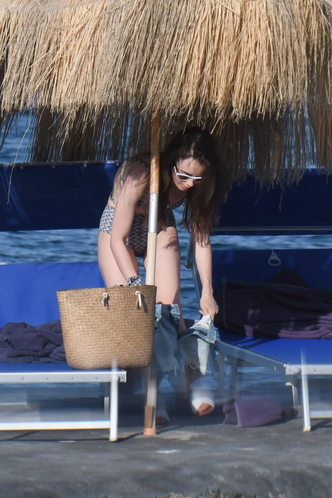 Дочь Фила Коллинза, Лили Коллинз, продемонстрировала свою стройную и подтянутую фигуру, загорая на пляже во время отпуска на Искье, 17.07.2018. Актриса и модель взяла заслуженный перерыв от съемок в своей последней роли для телевизионной адаптации “Отверженных”.