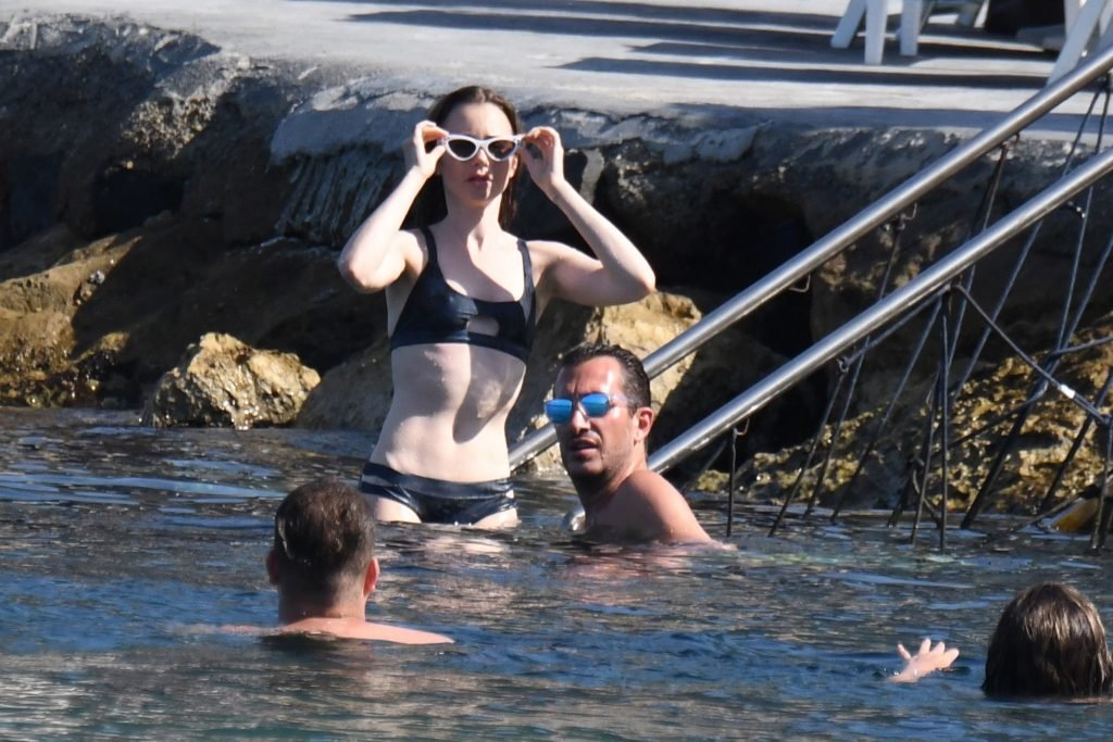 Lily Collins была замечена, наслаждаясь погодой и купанием на Искье, Италия, 19.07.2018. Актриса останавливалась в отеле Regina Isabella.