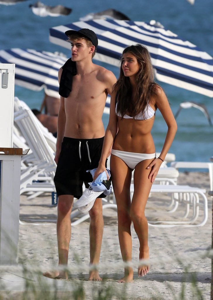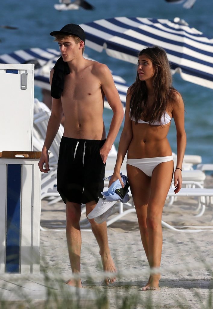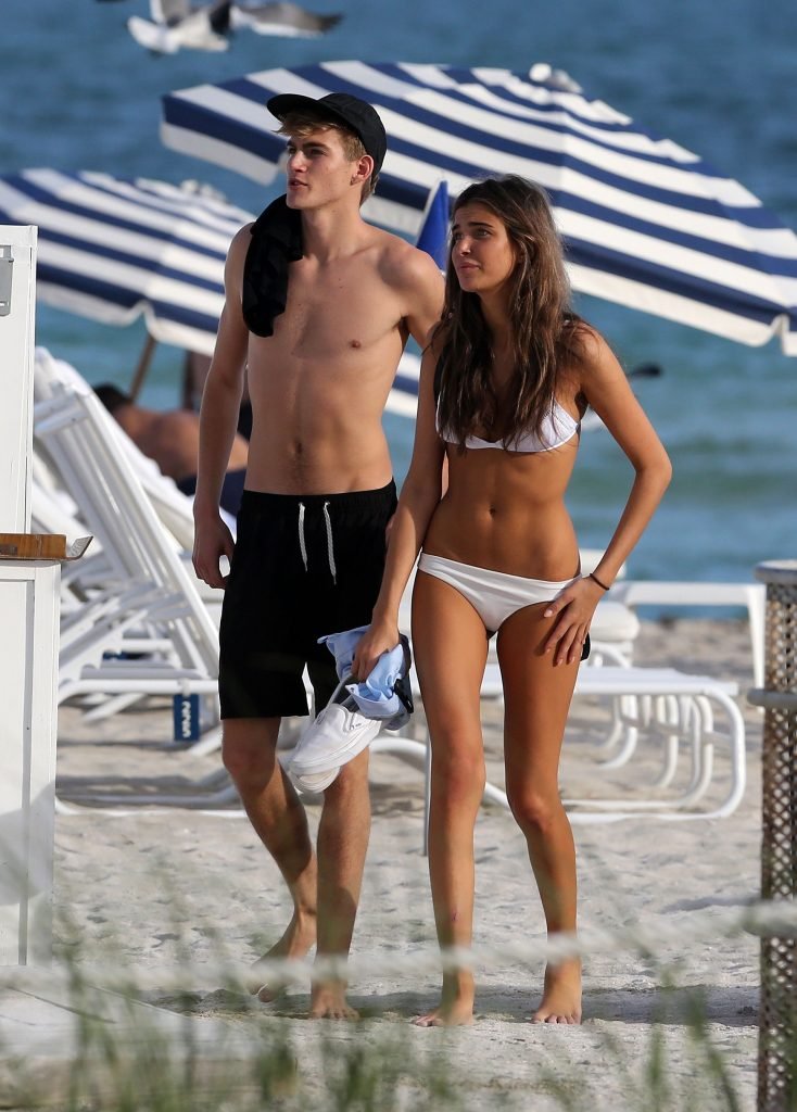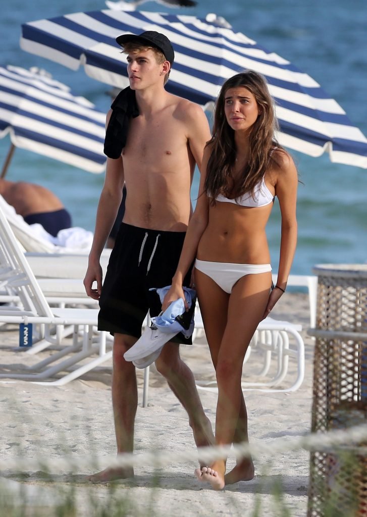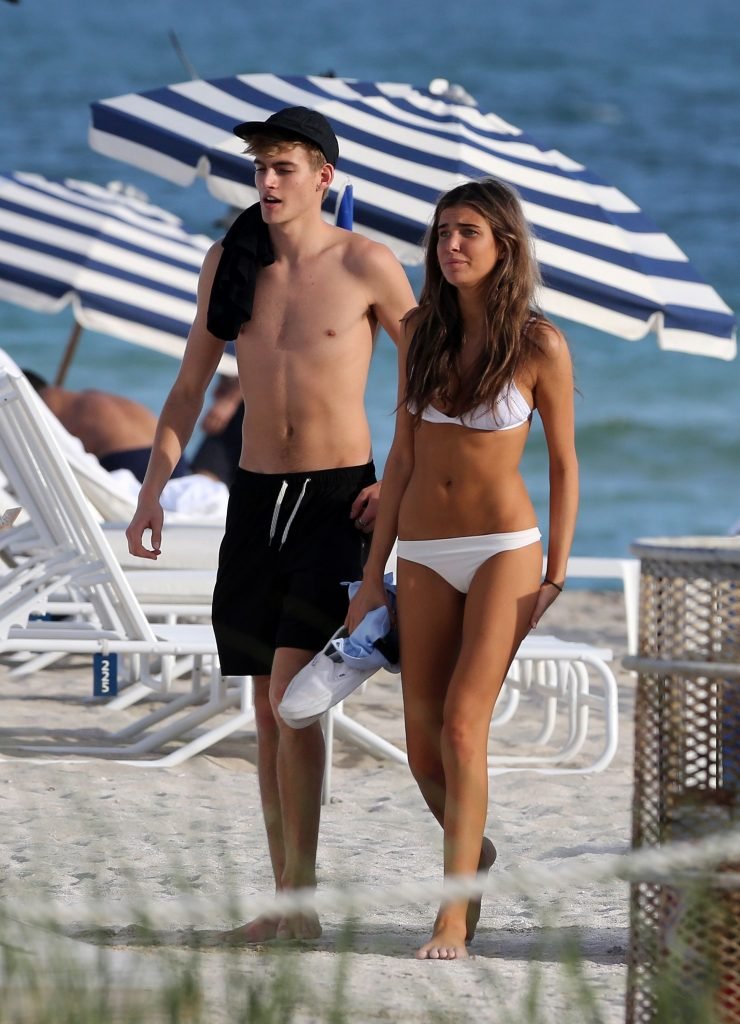 Presley Gerber отдыхает со своей девушкой Лили Молтон в бикини на пляже в Майами, 12/07/2017.