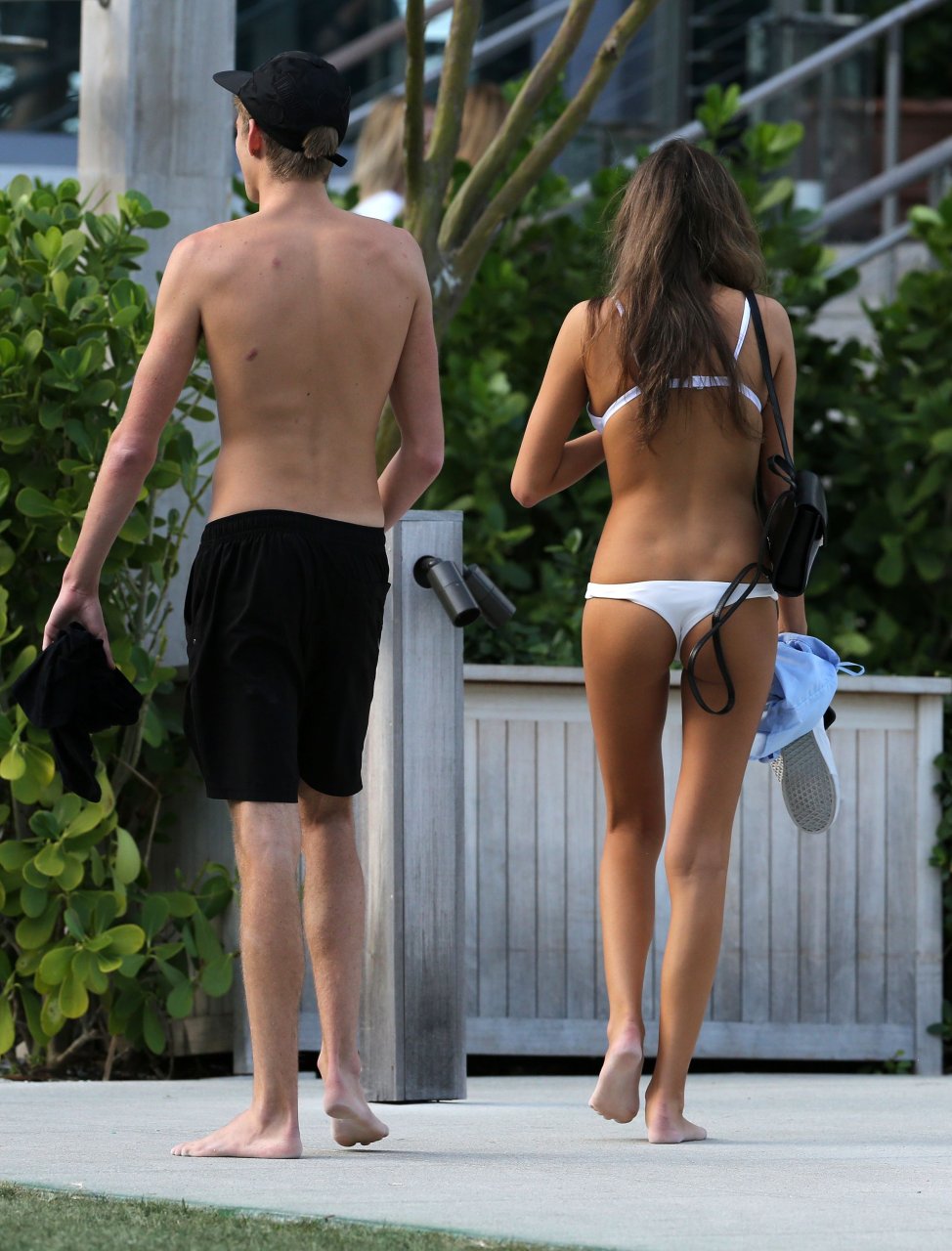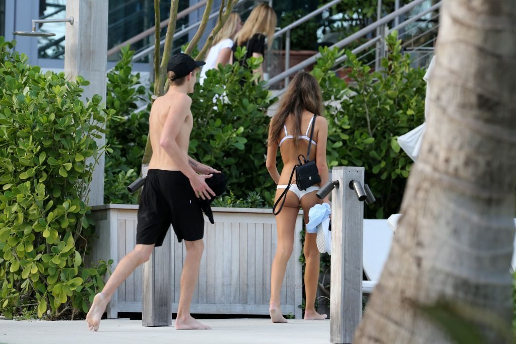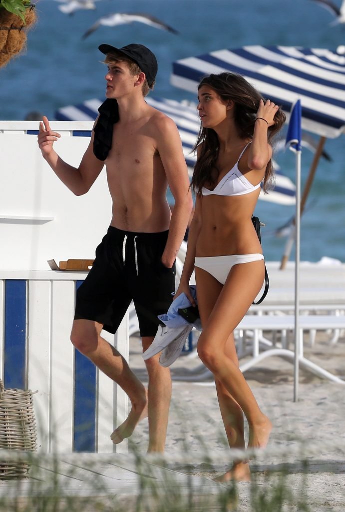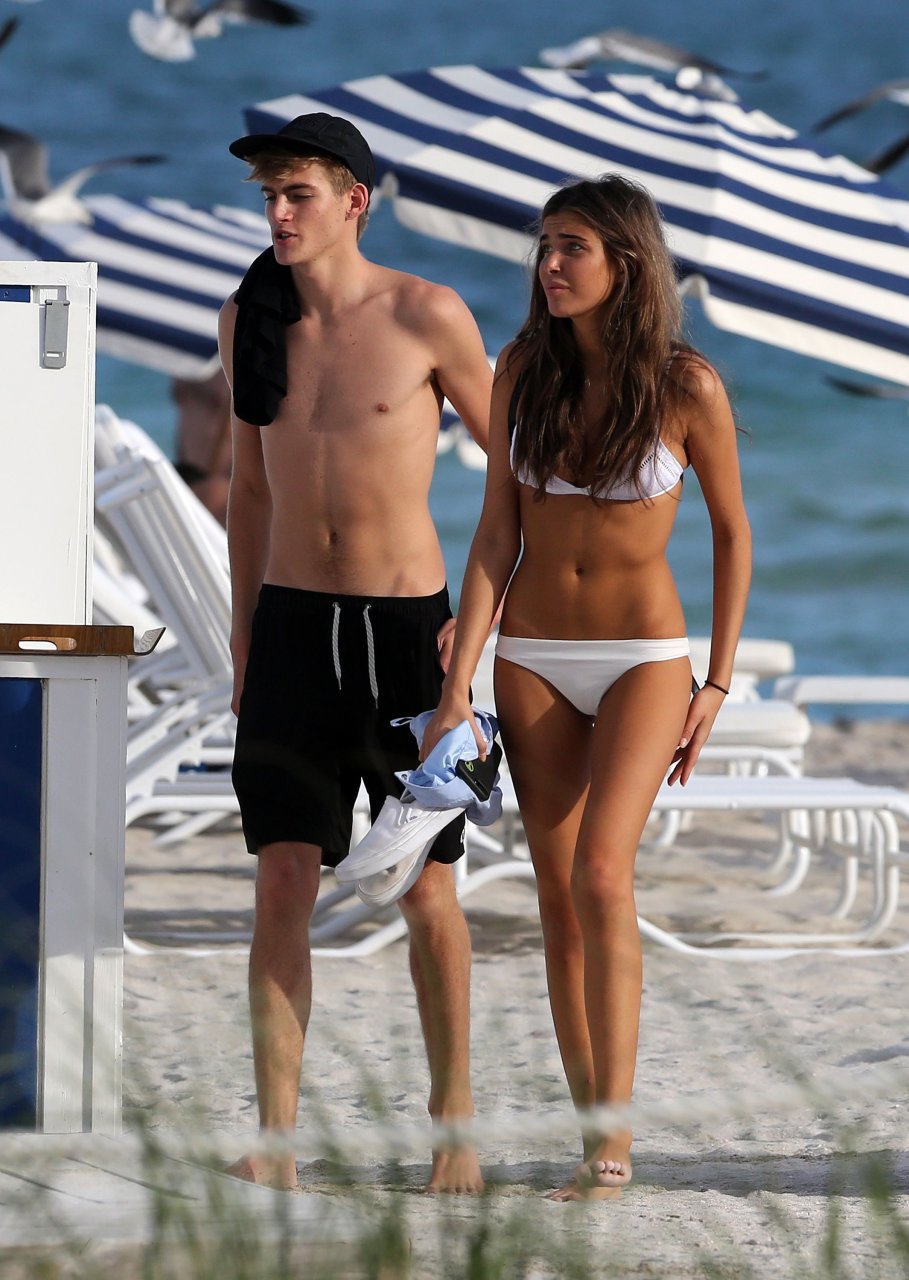 Presley Gerber отдыхает со своей девушкой Лили Молтон в бикини на пляже в Майами, 12/07/2017.