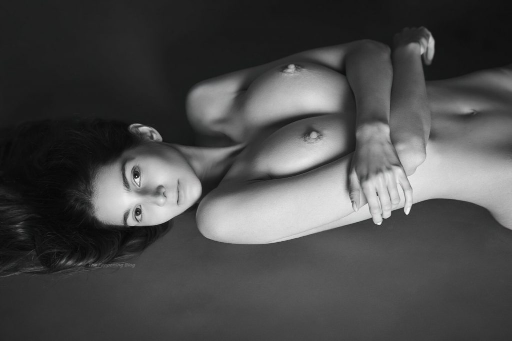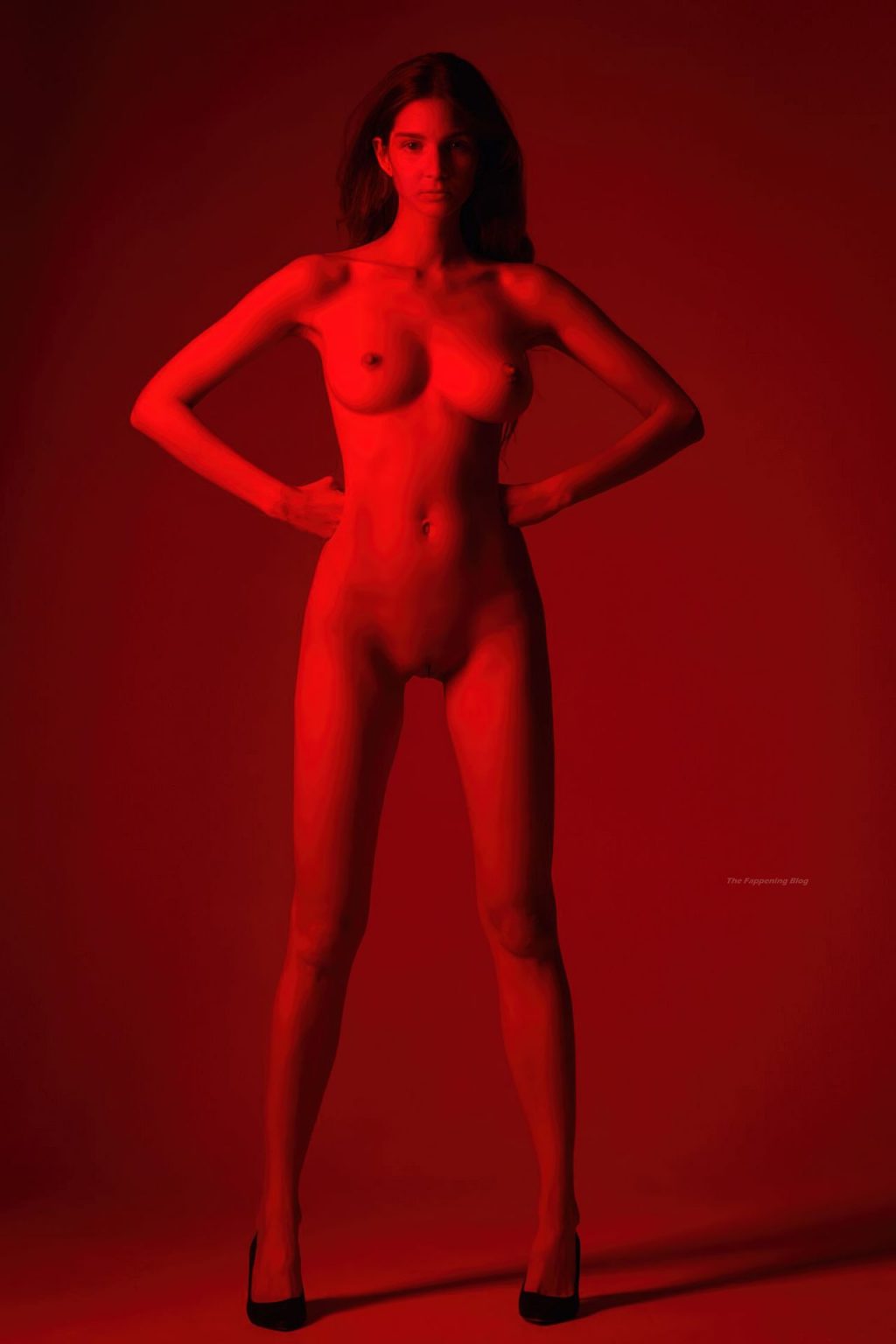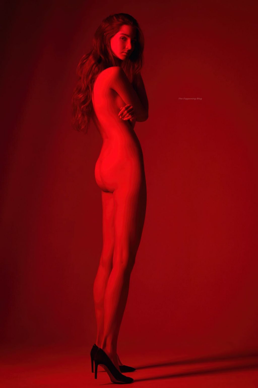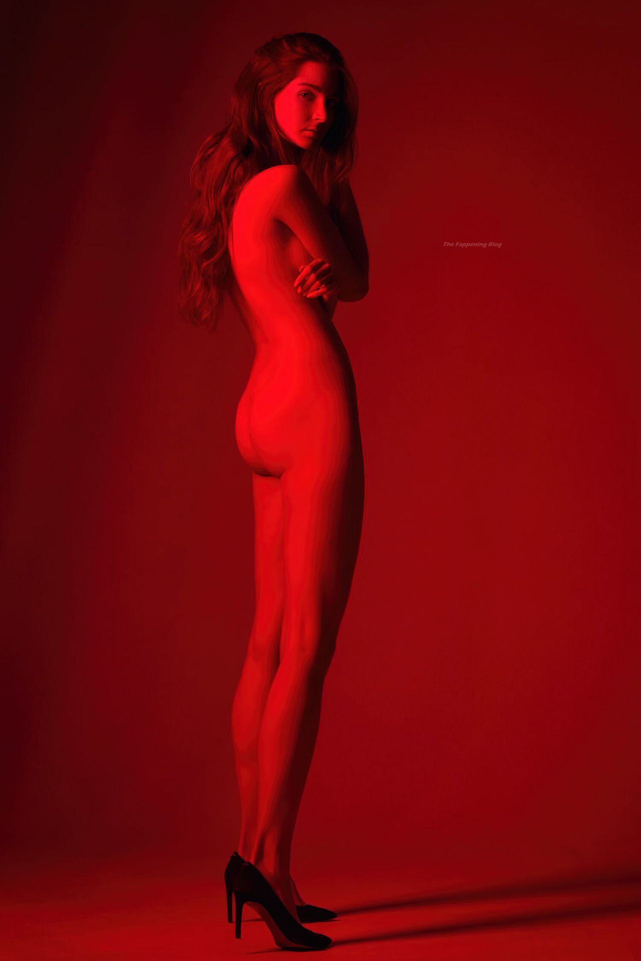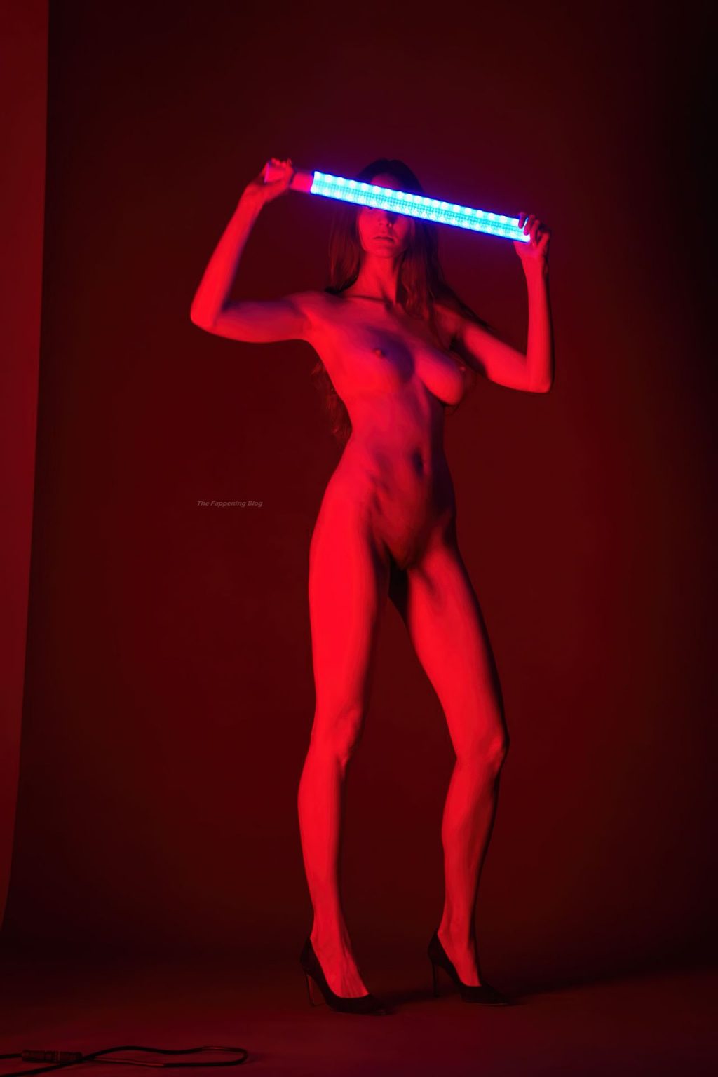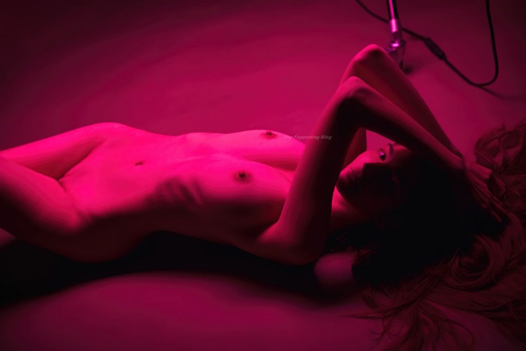 Красивая модель Lina Lorenza (Aschermann) позирует полностью обнаженной, демонстрируя свое потрясающее обнаженное тело в красных и фиолетовых тонах на фотосессии Франческо Риццато (2020).