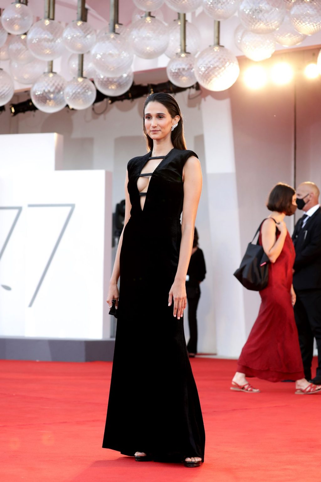 Линда Кариди прибывает на церемонию открытия и показ фильма «Lacci» в первый день 77-го Венецианского кинофестиваля, 2 сентября 2020 года в Италии.