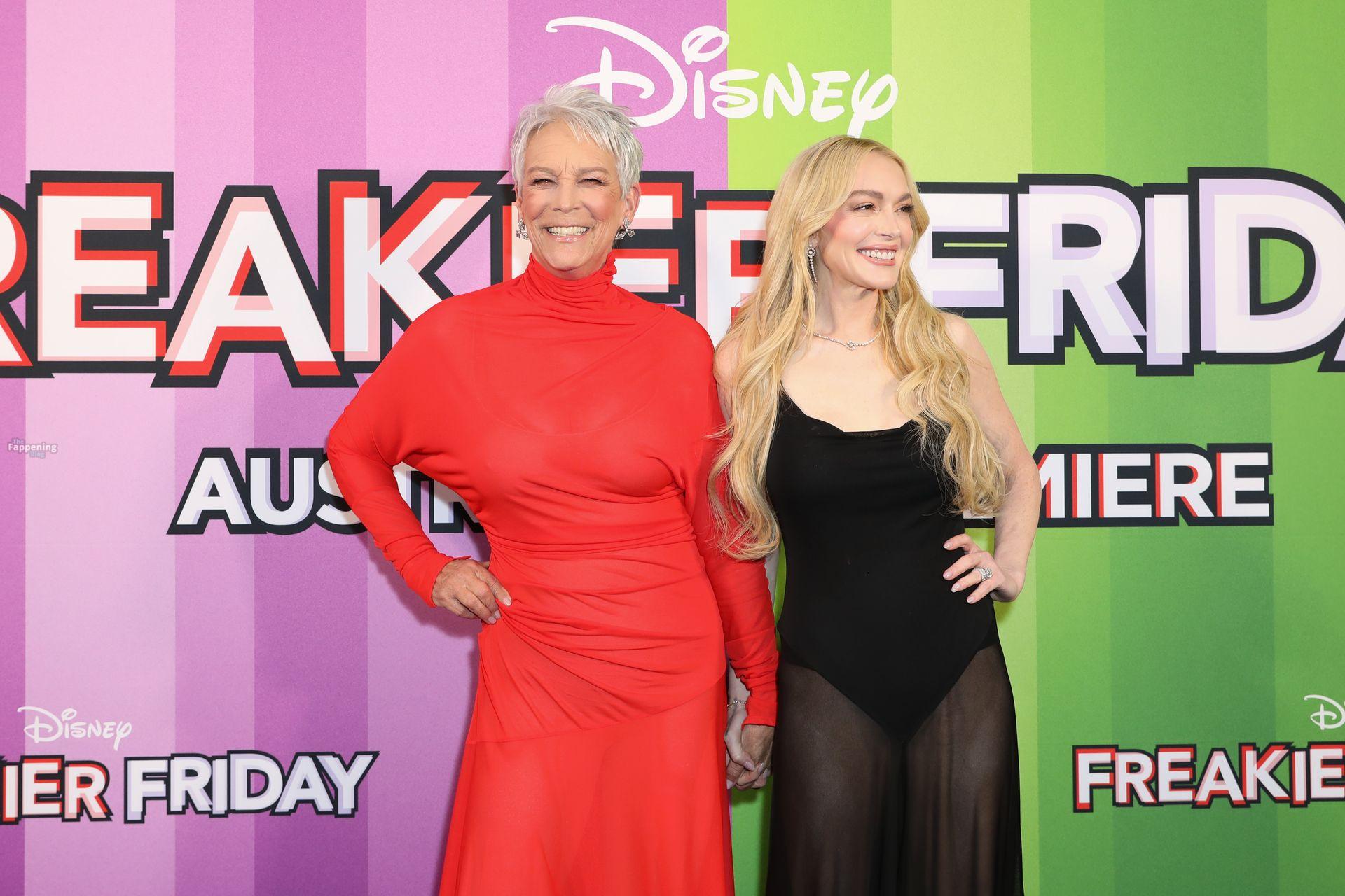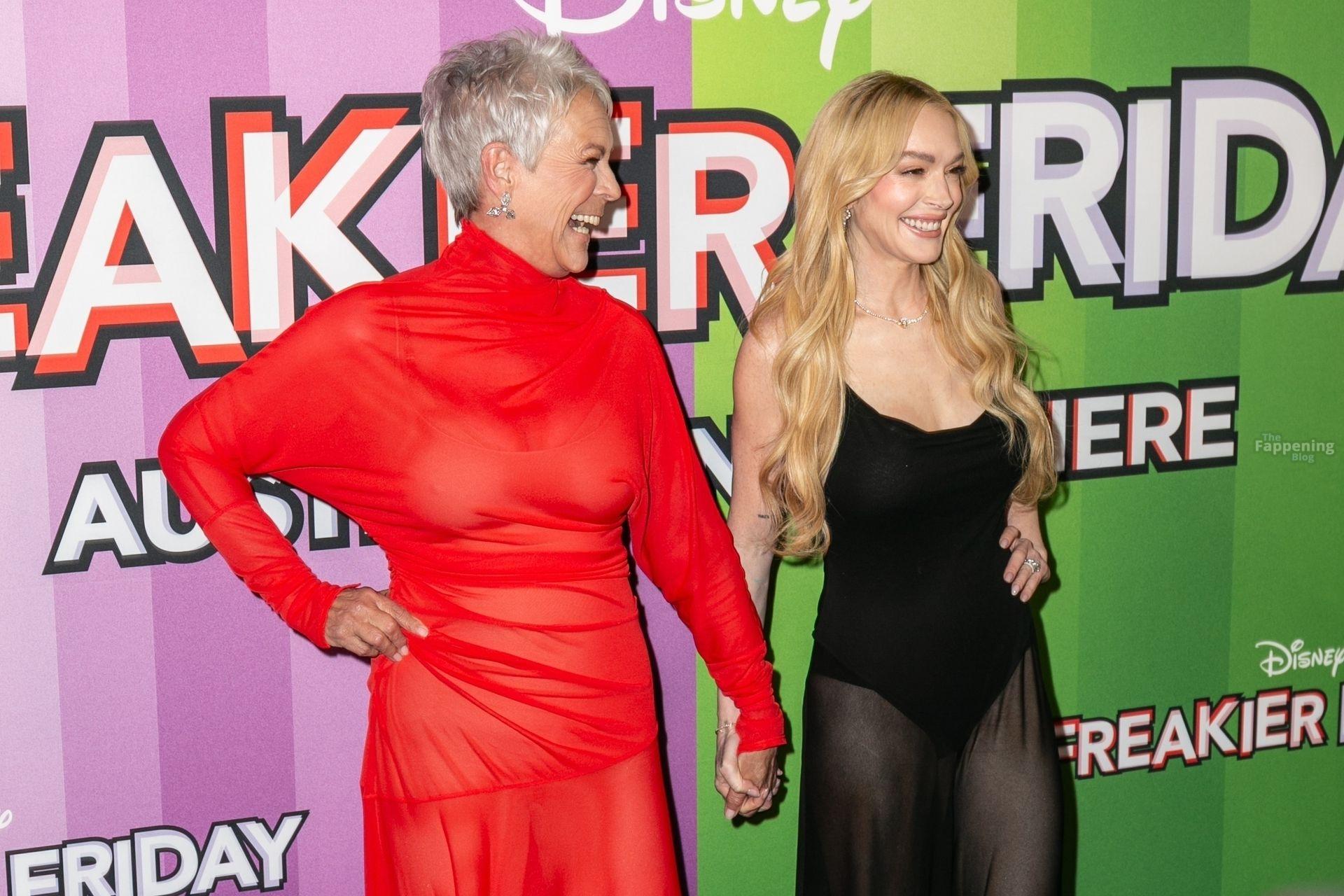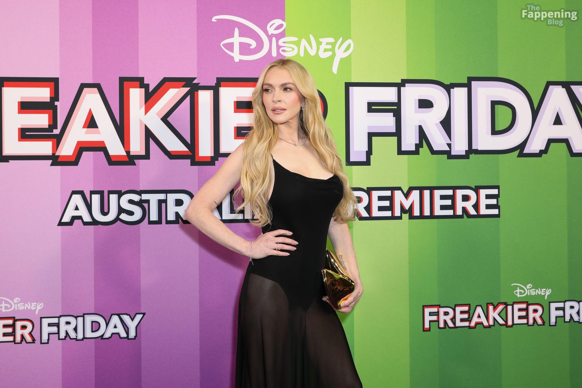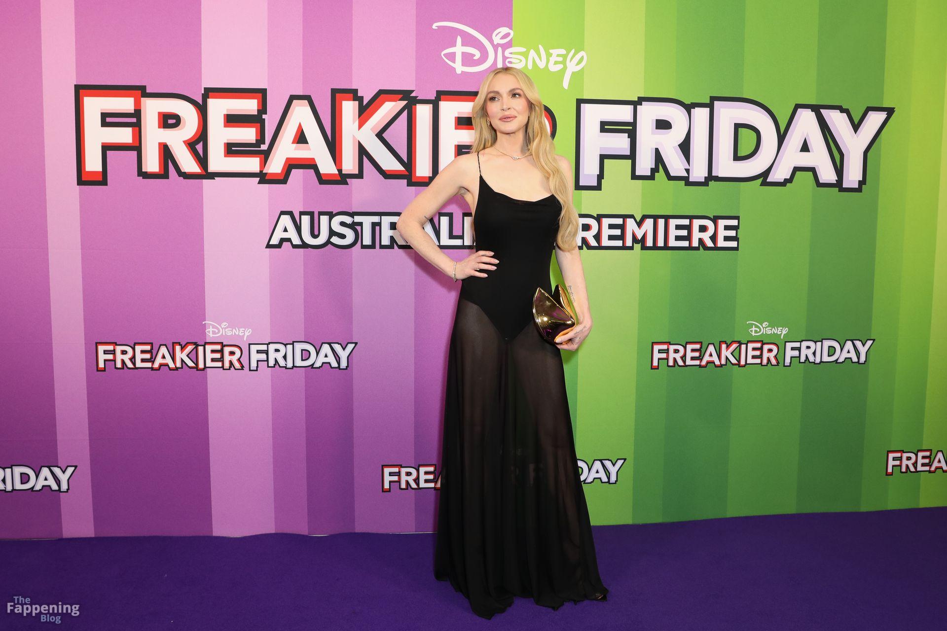 Линдси Лохан выглядит сногсшибательно в прозрачном черном платье на премьере “Freakier Friday” (149 фото)