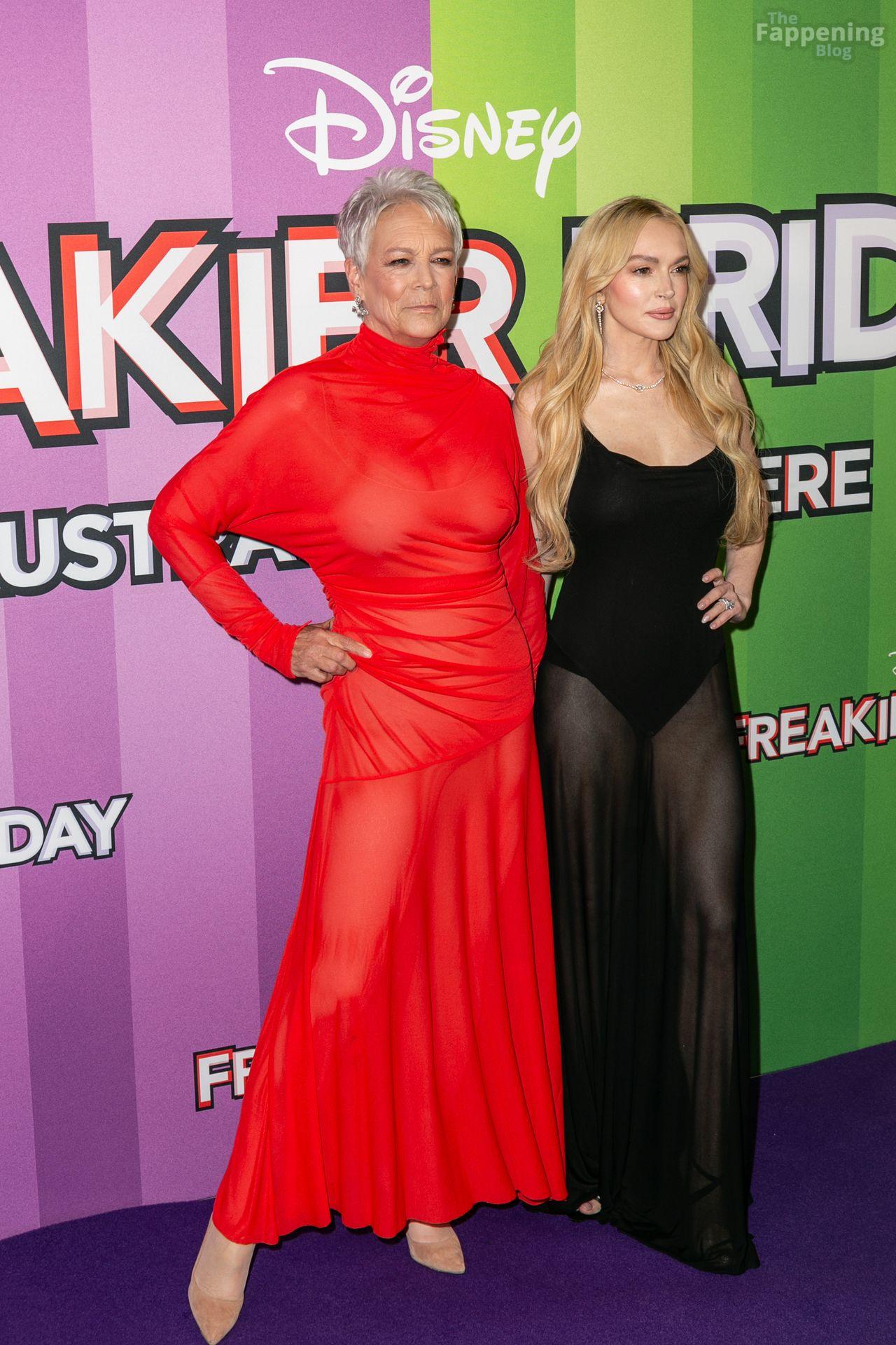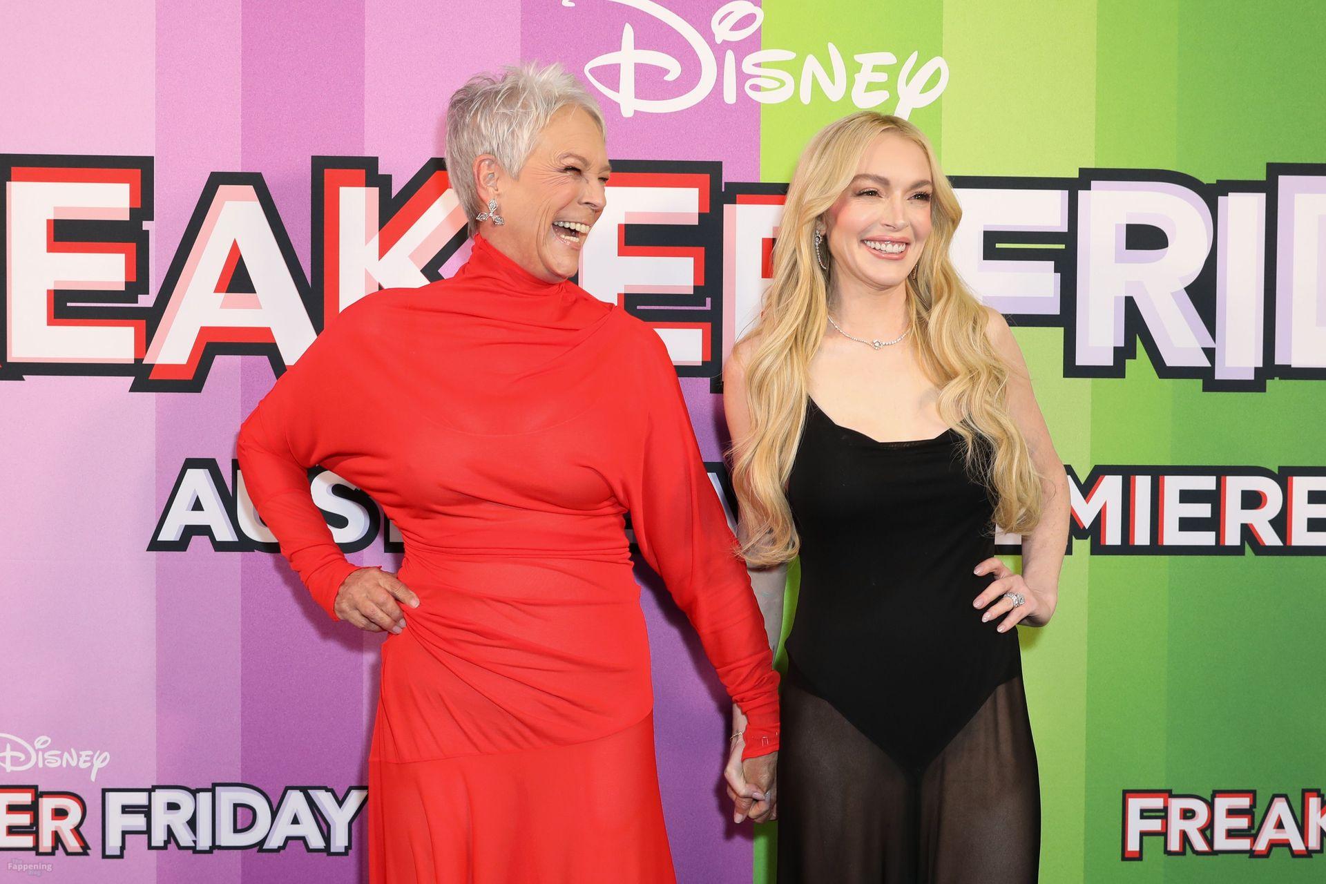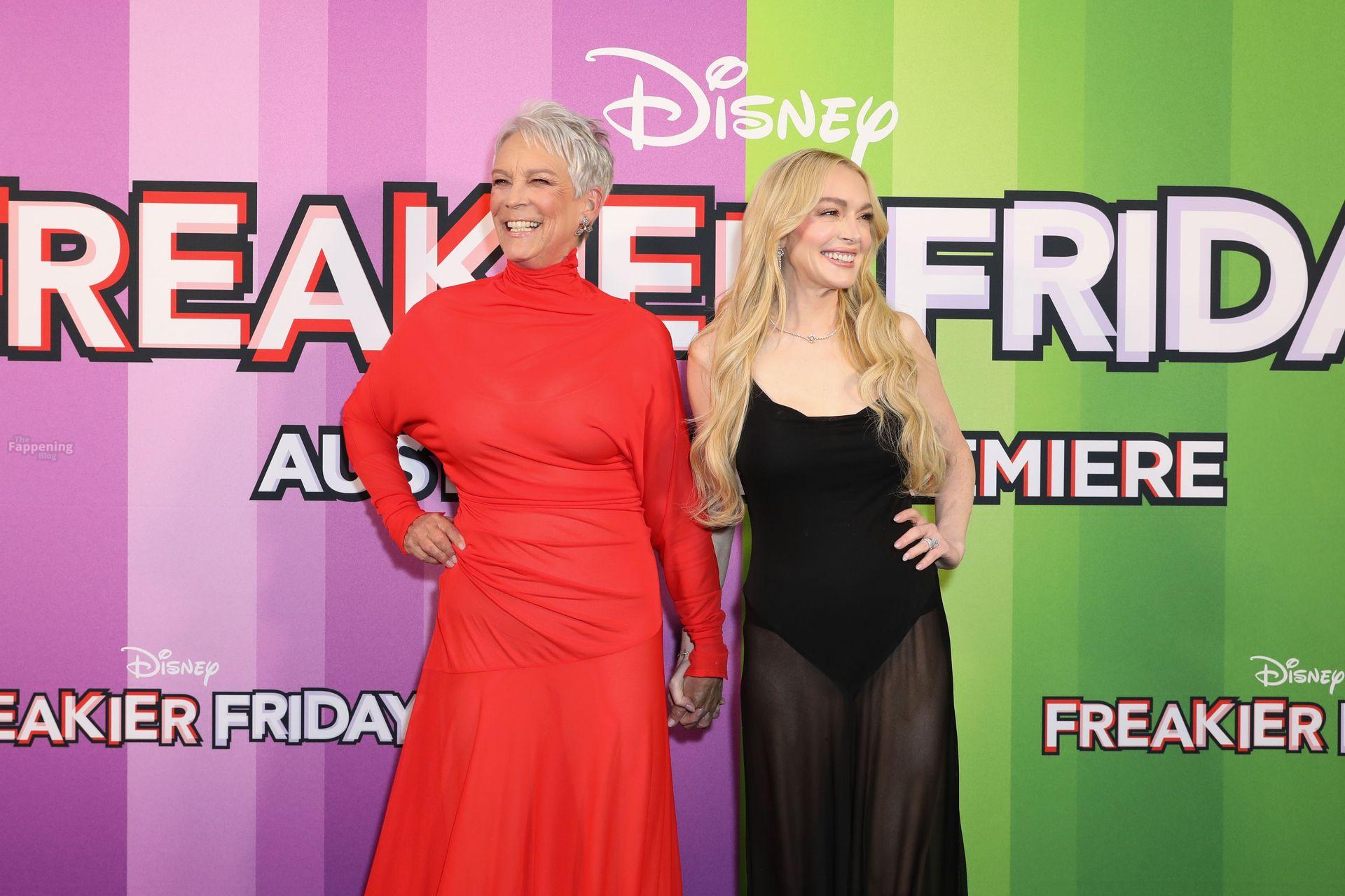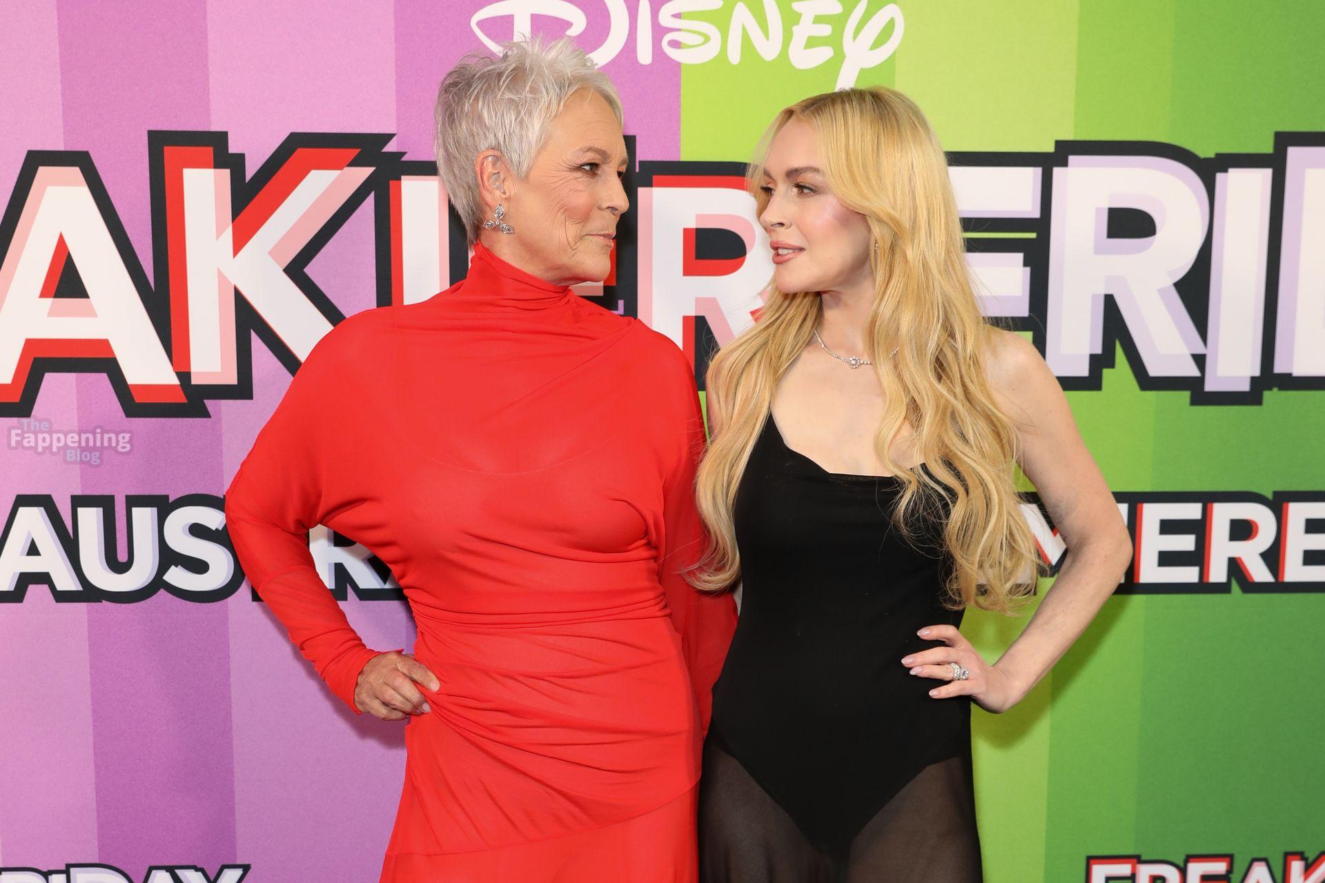 Линдси Лохан выглядит сногсшибательно в прозрачном черном платье на премьере “Freakier Friday” (149 фото)