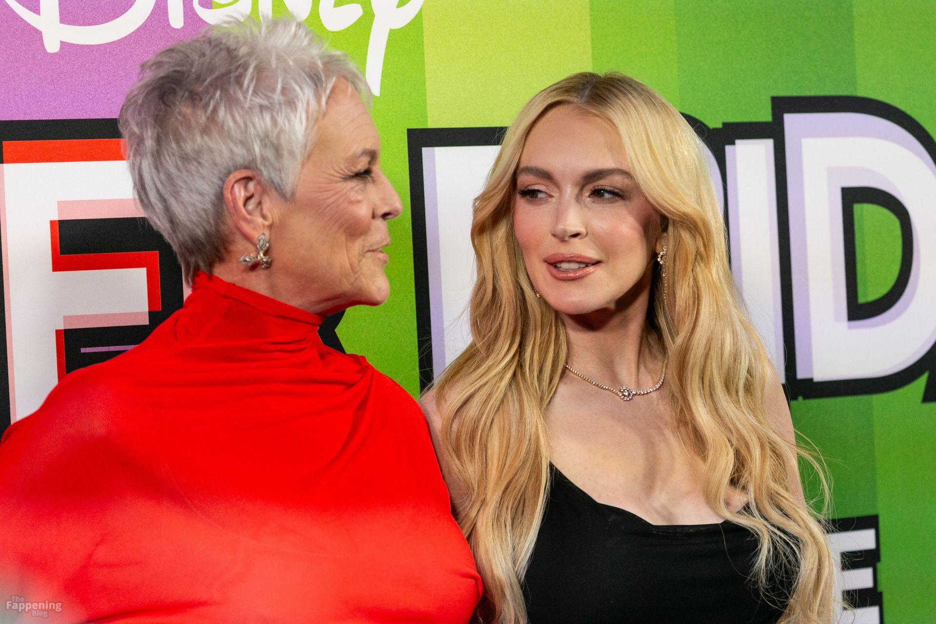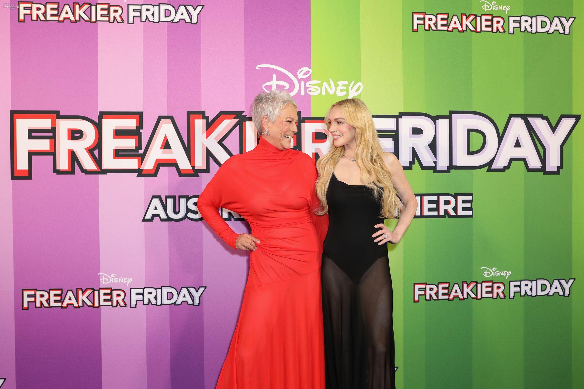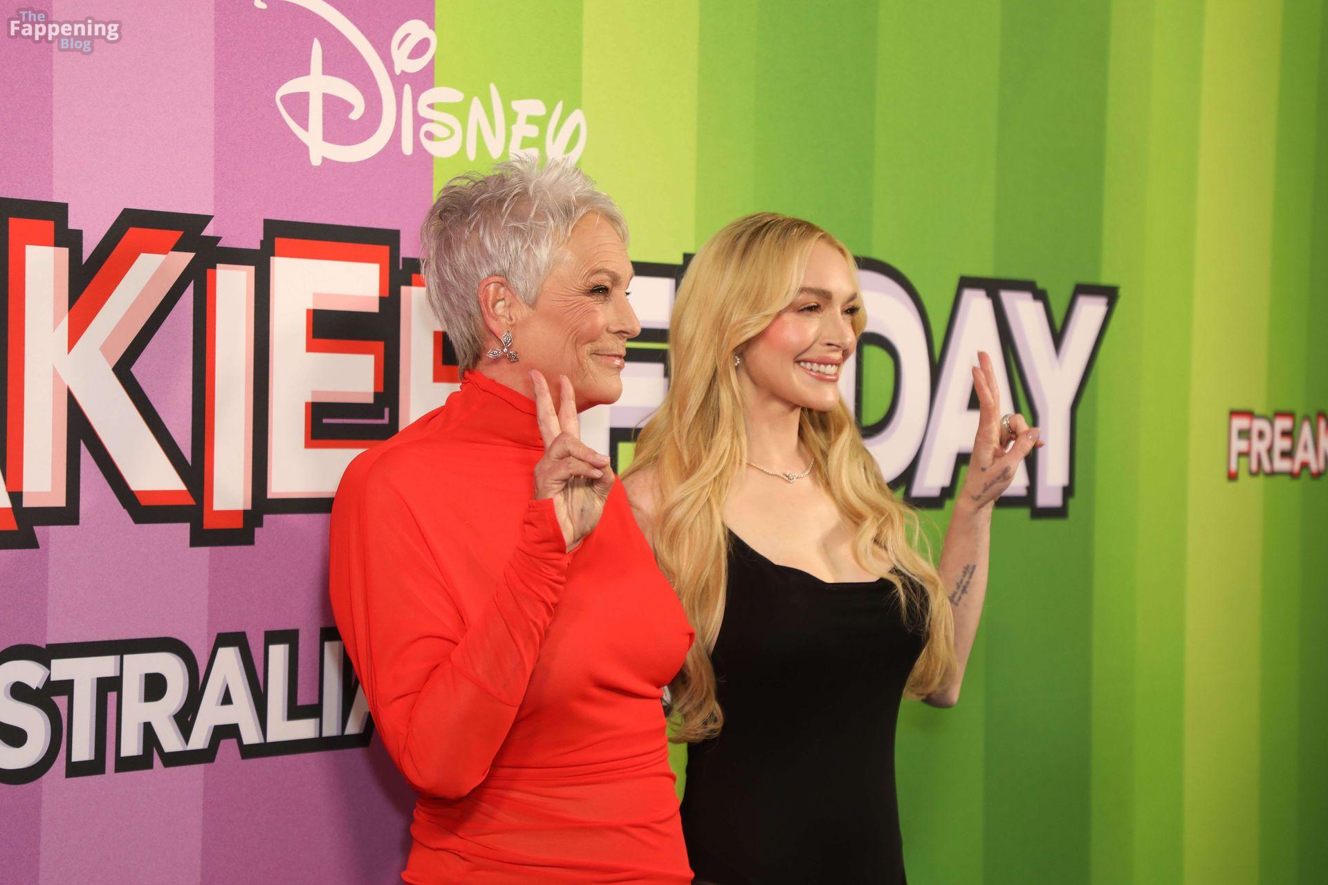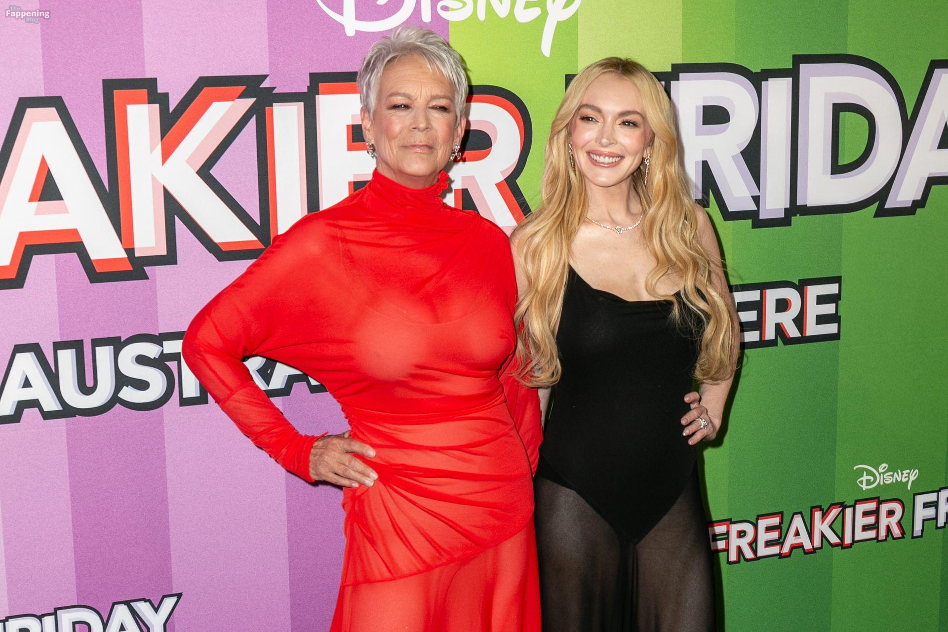 Линдси Лохан выглядит сногсшибательно в прозрачном черном платье на премьере “Freakier Friday” (149 фото)