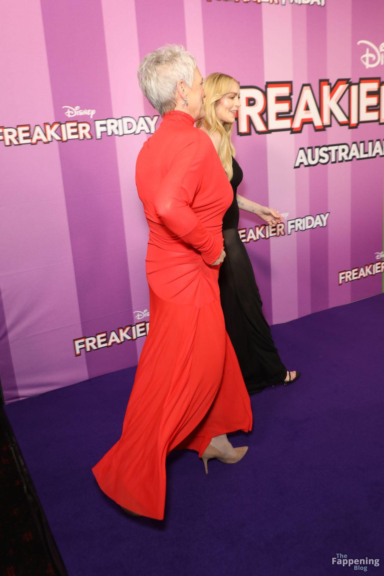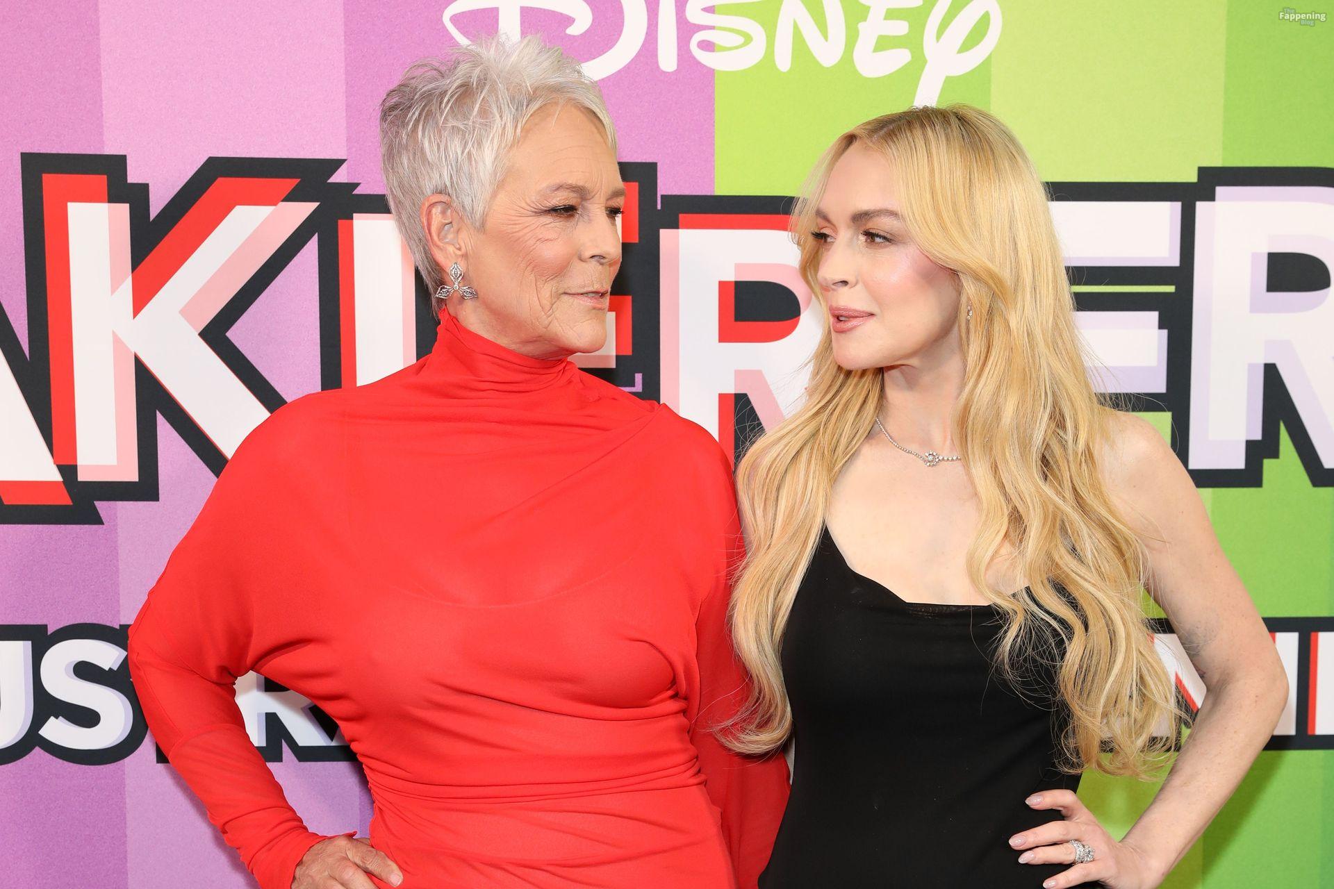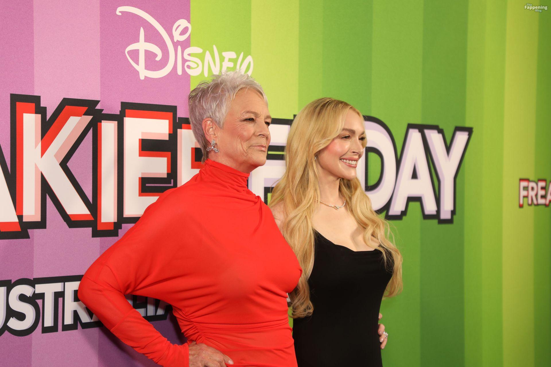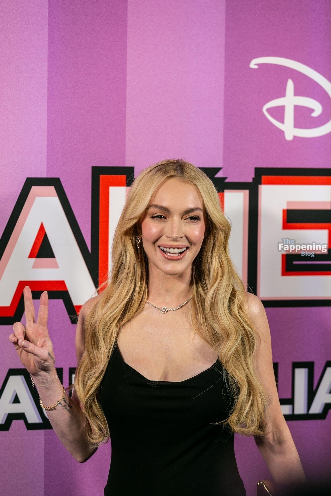Линдси Лохан выглядит сногсшибательно в прозрачном черном платье на премьере “Freakier Friday” (149 фото)