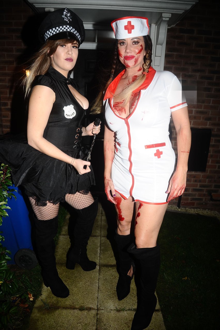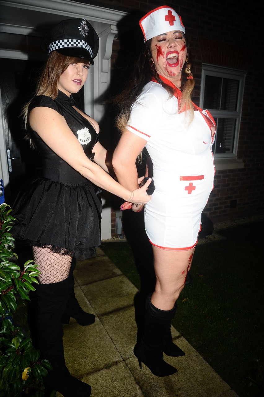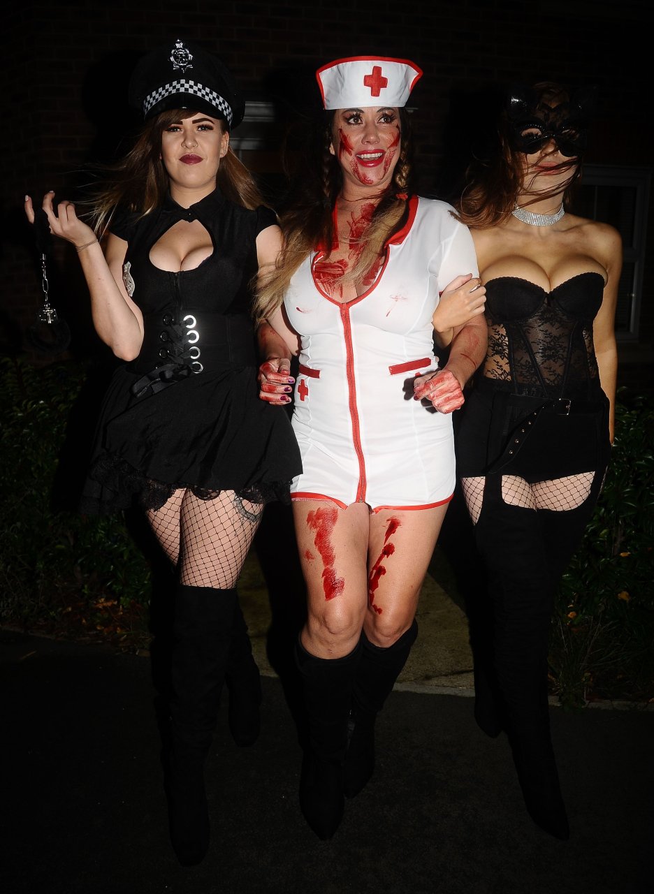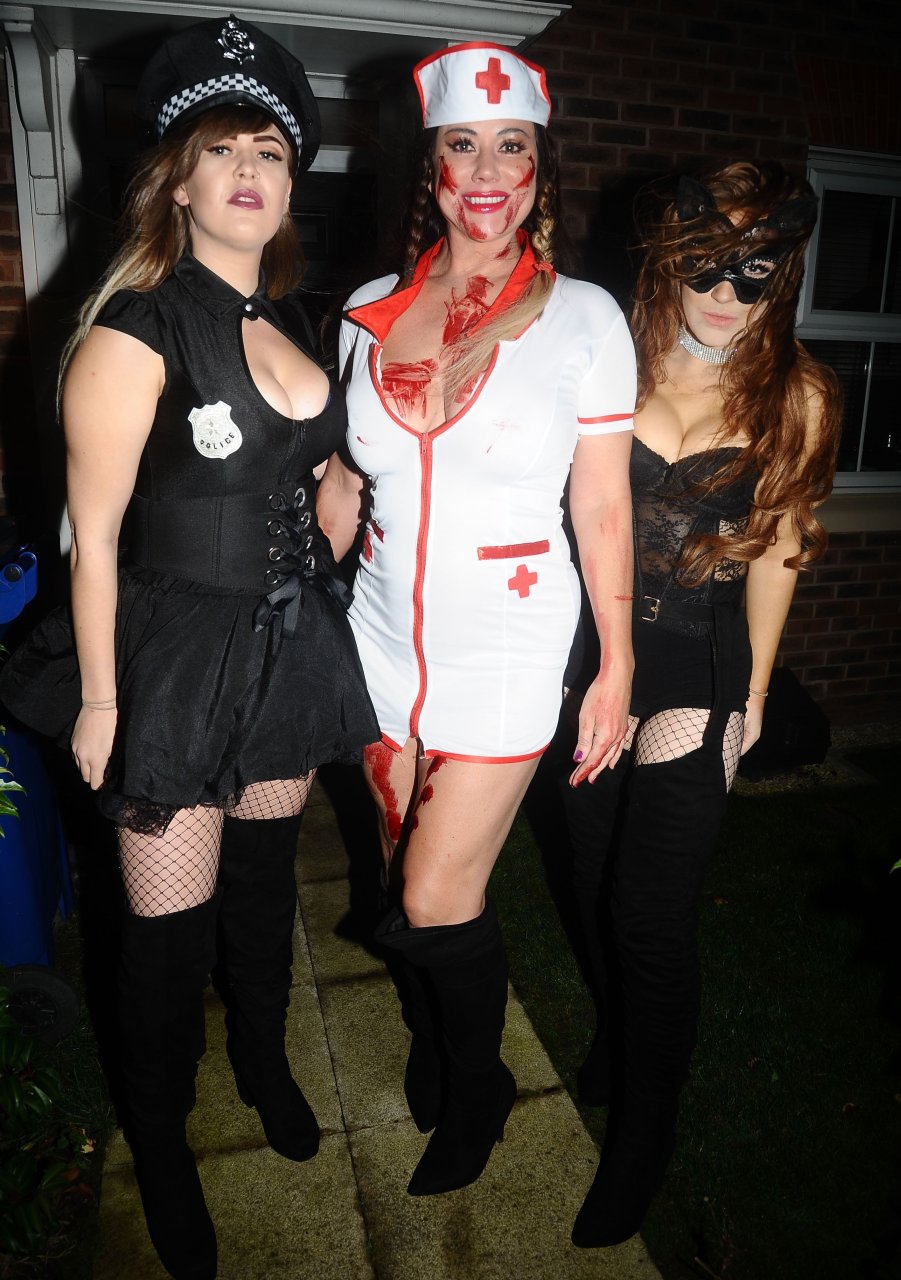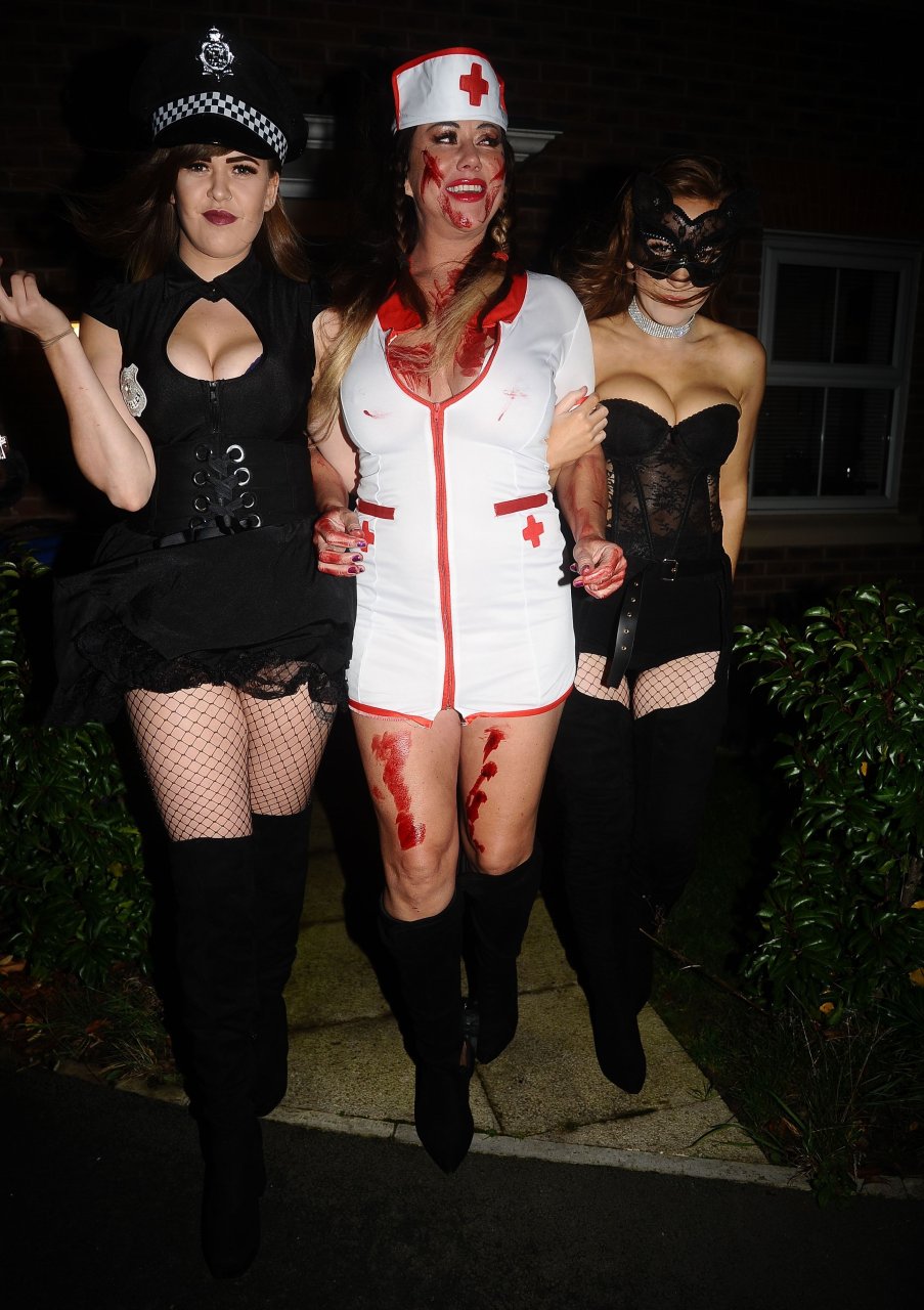Лиза Эпплтон носит костюм кровавой медсестры и демонстрирует свои большие груди, посещая Хэллоуинскую вечеринку с подругами с пышными формами в Манчестере, 28.10.2017. Лиза Эпплтон — британская звезда реалити-шоу. Возраст – 49 лет (23 мая 1968).
