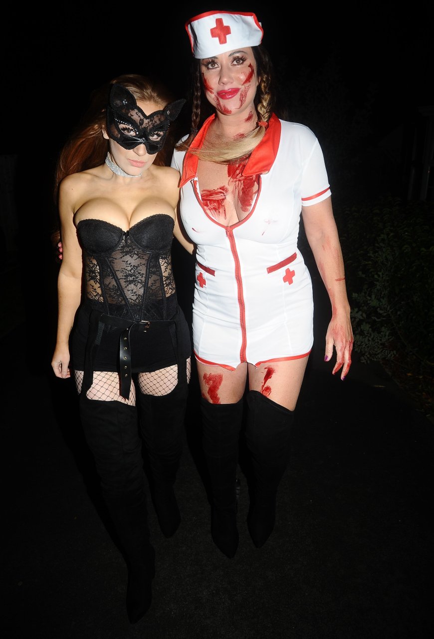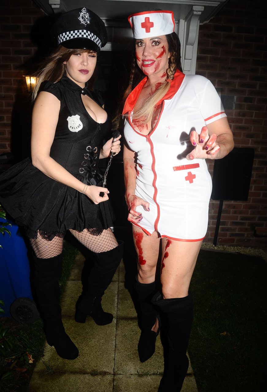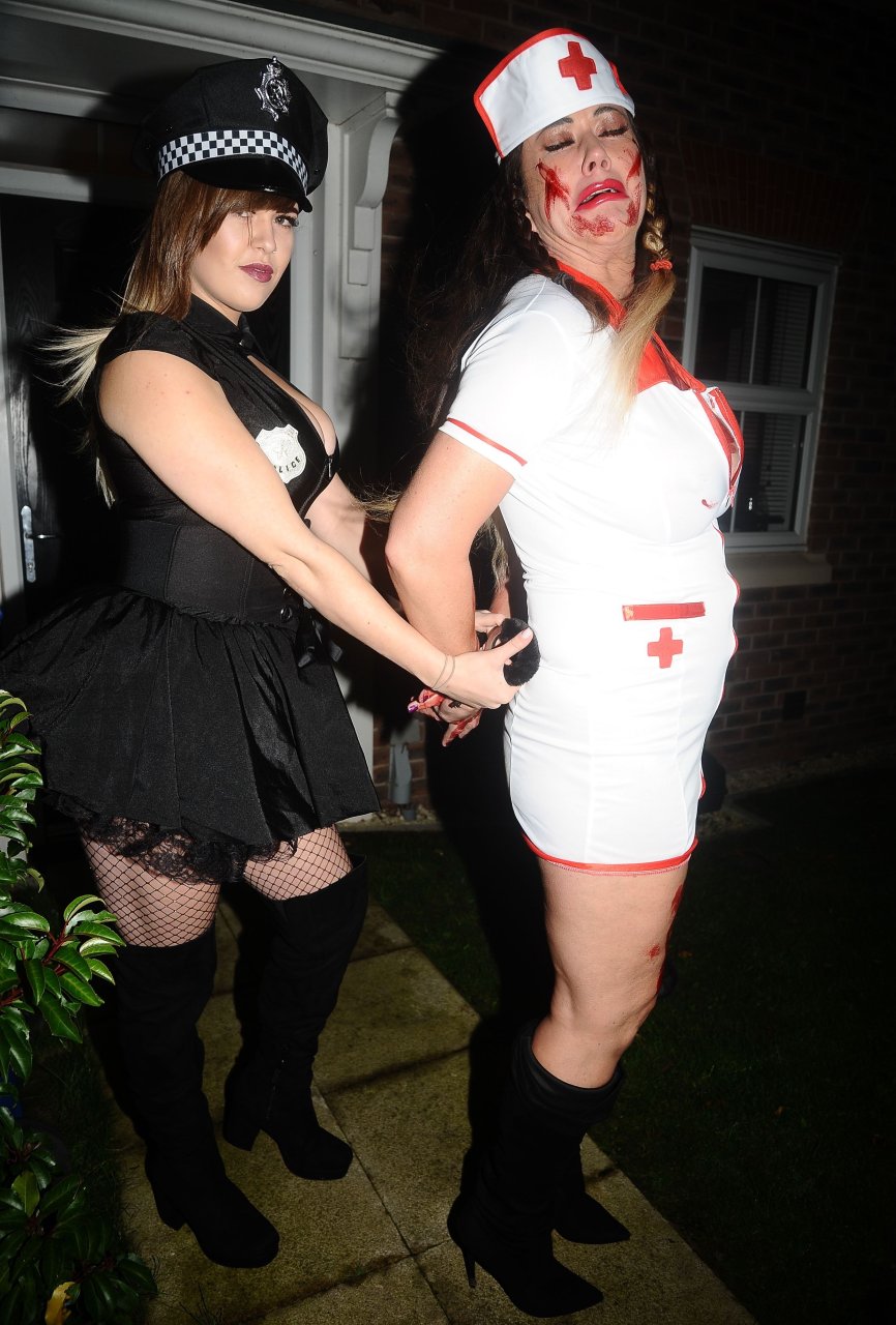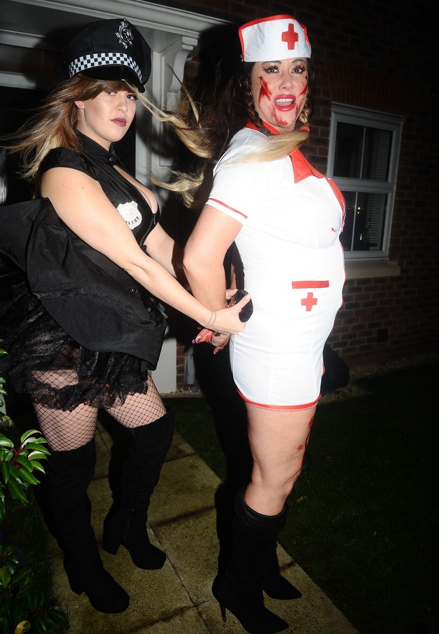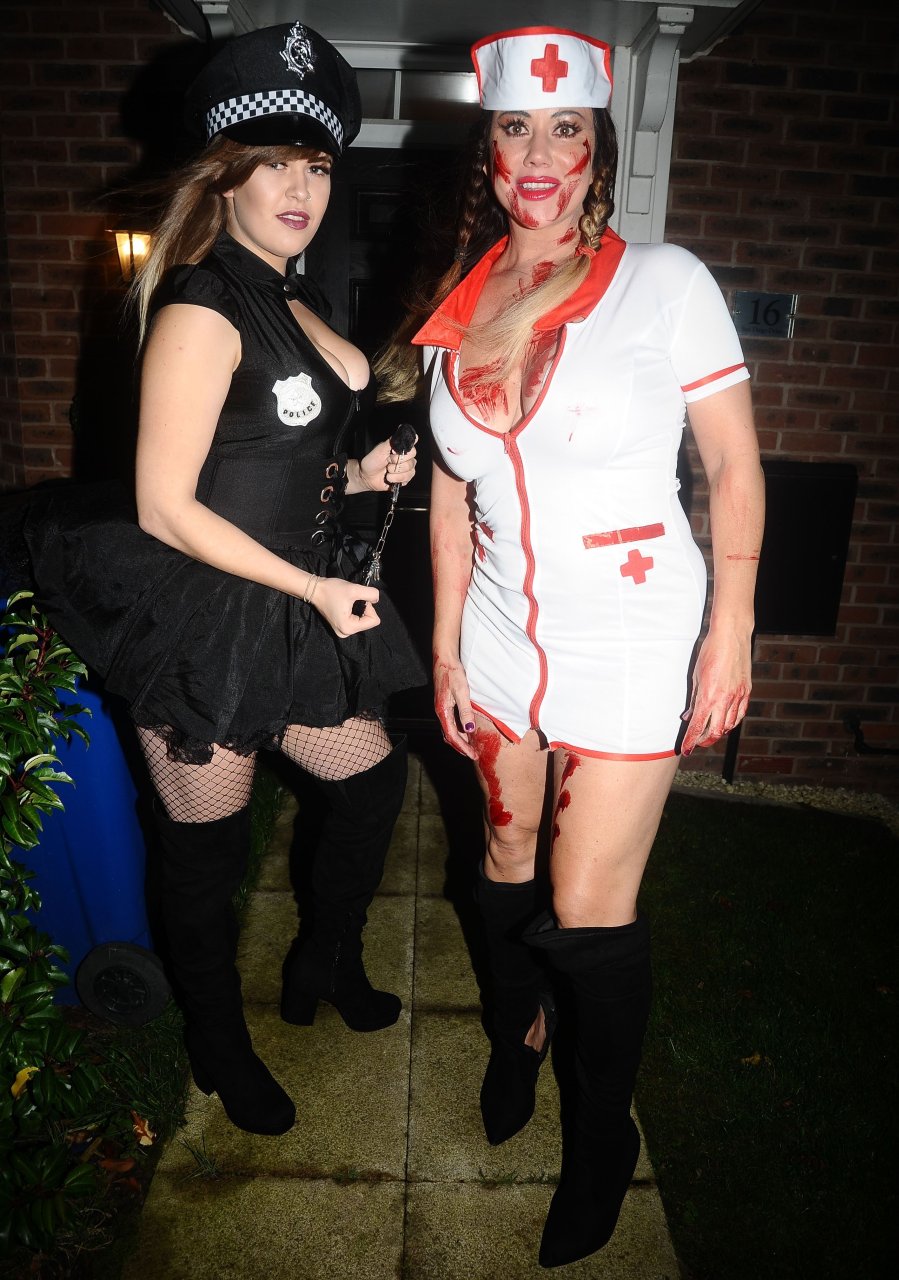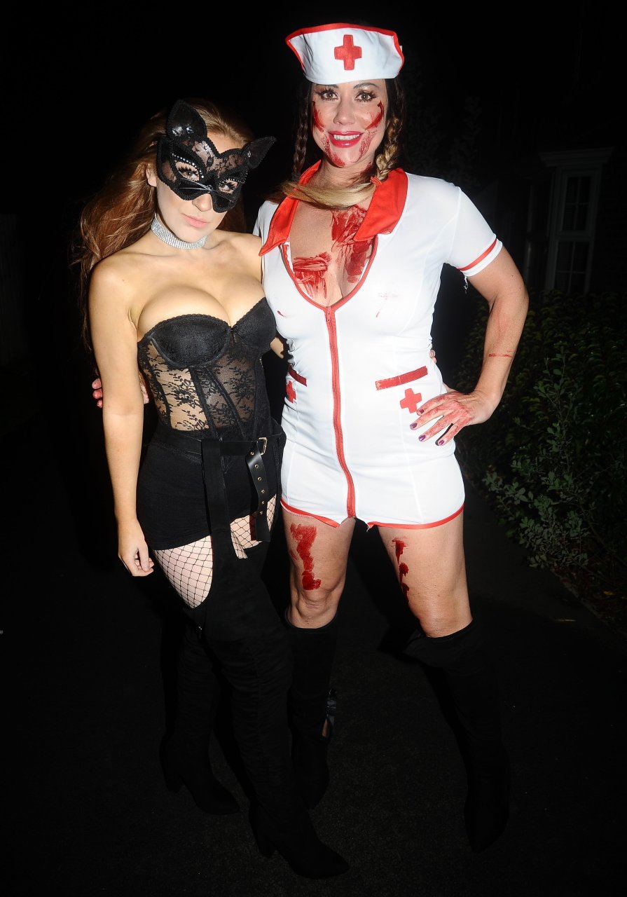 Лиза Эпплтон носит костюм кровавой медсестры и демонстрирует свои большие груди, посещая Хэллоуинскую вечеринку с подругами с пышными формами в Манчестере, 28.10.2017. Лиза Эпплтон — британская звезда реалити-шоу. Возраст – 49 лет (23 мая 1968).