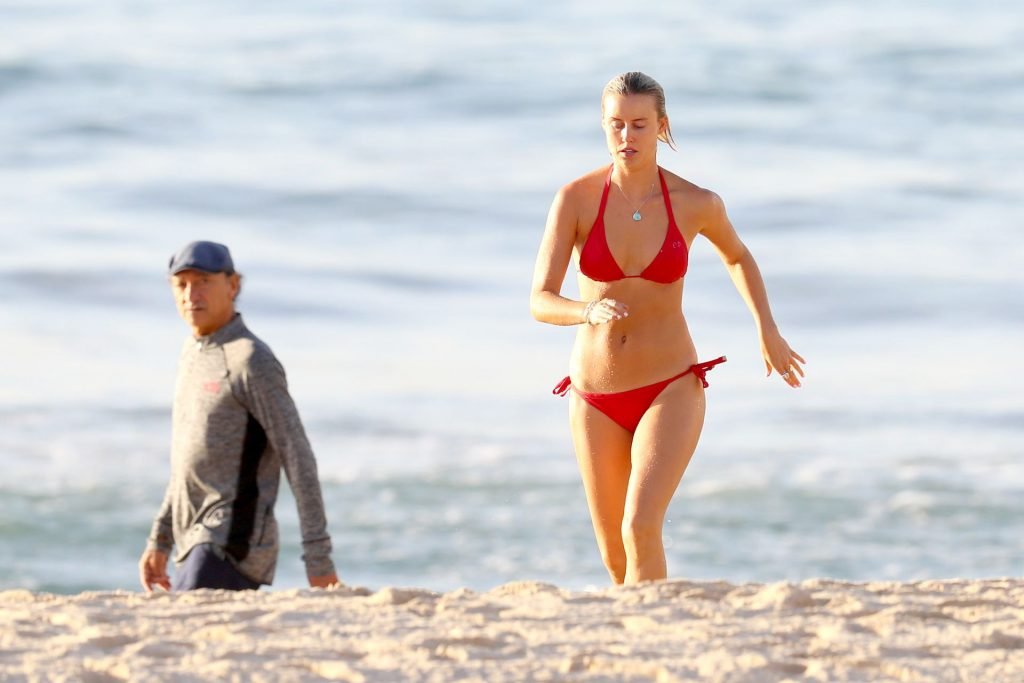 Телеведущая Оливия “Лив” Филанд окунается в воду в красном бикини на Бонди, Сидней, Австралия, 26.03.2019.