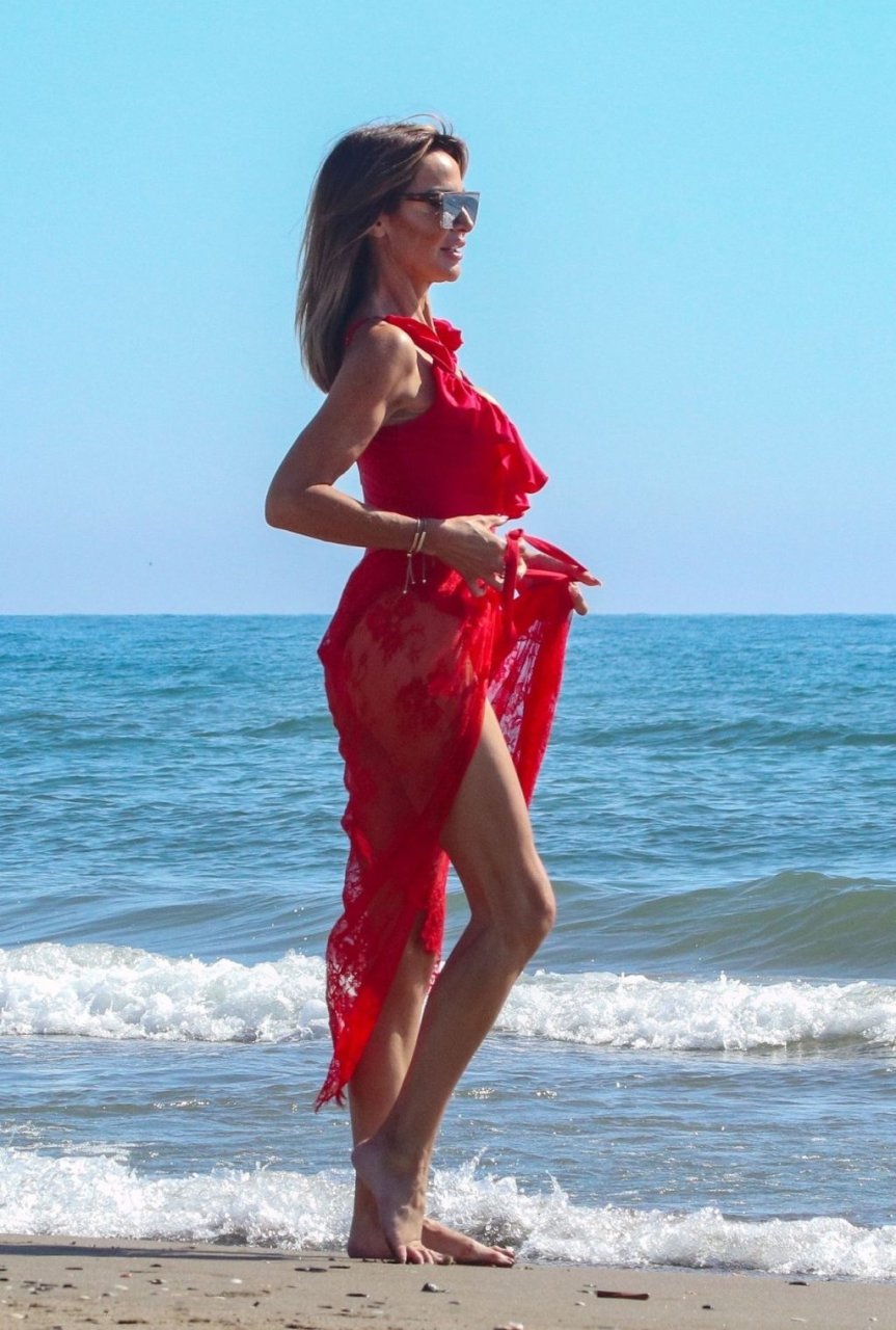 Телеведущая Лиззи Канди была сфотографирована, демонстрируя свою пляжную фигуру и весело проводя время на пляже во время солнечного отдыха в Марбелье, 10/06/2019. Бывшая WAG выглядела расслабленной, воплощая образ из “Спасателей Малибу”, отдыхая на пляже в ярко-красном купальнике.