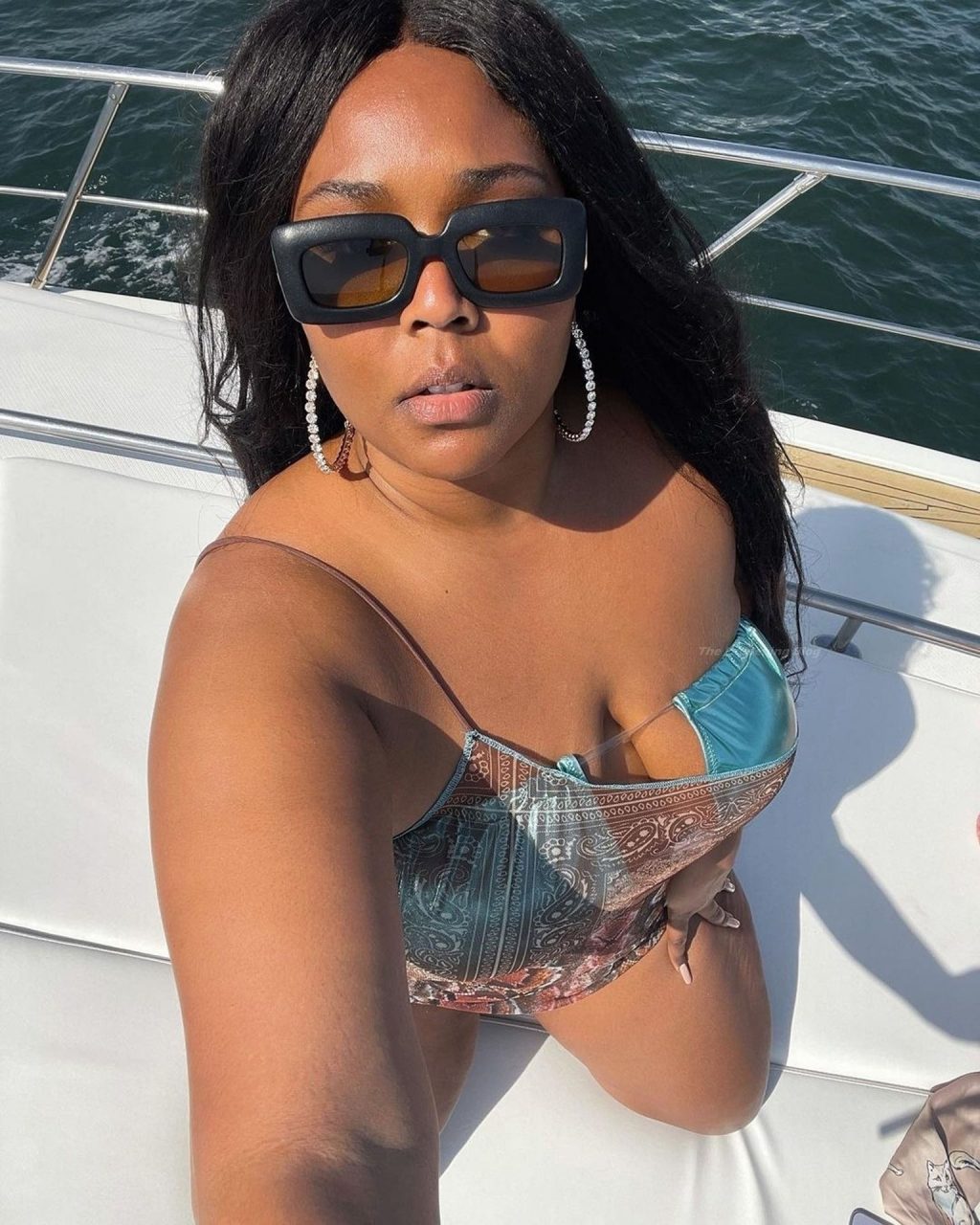 Певица plus-size Лиззо эффектно позирует на своей яхте в новой коллекции Teyana’s Taylor для PrettyLittleThing, 23.03.2021.