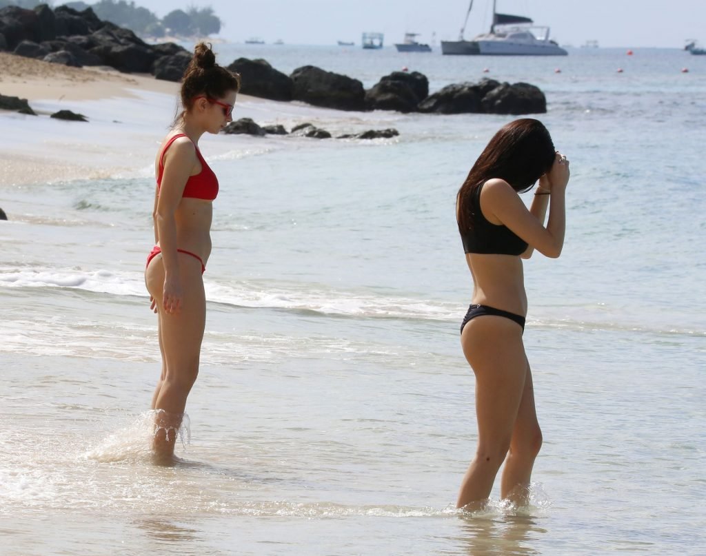 Молодые красавицы, английская модель Лотти Мосс и Эмили Блэквелл запечатлены в крошечных бикини, купающимися в океане во время отпуска на Барбадосе, 12/07/2018.