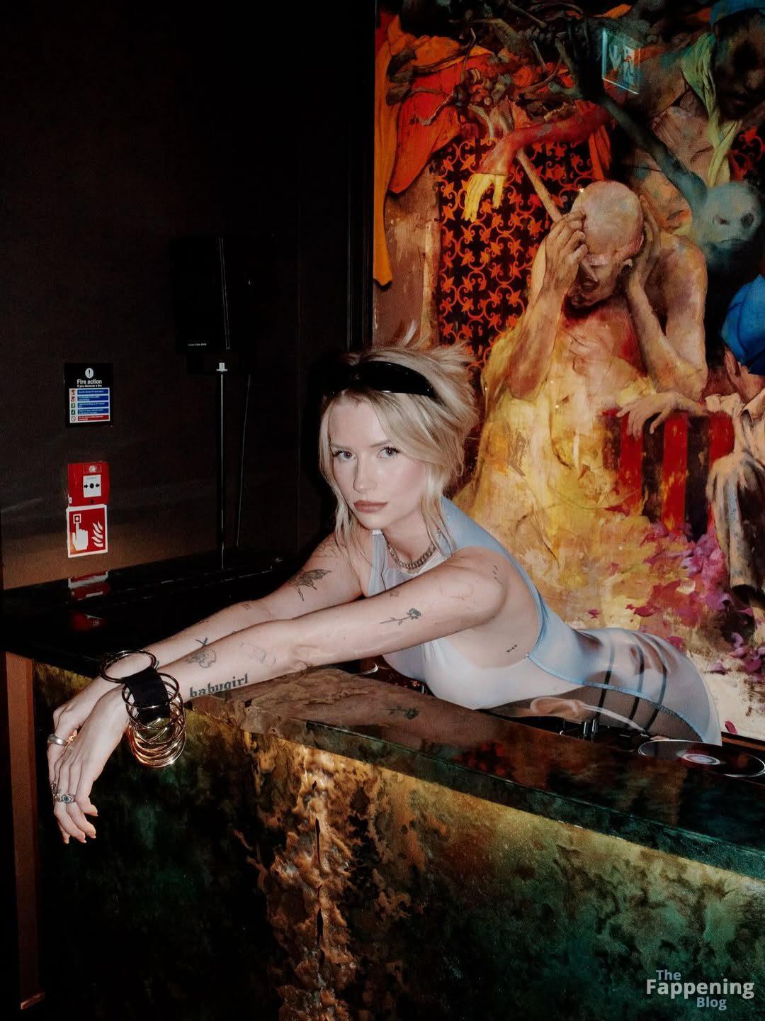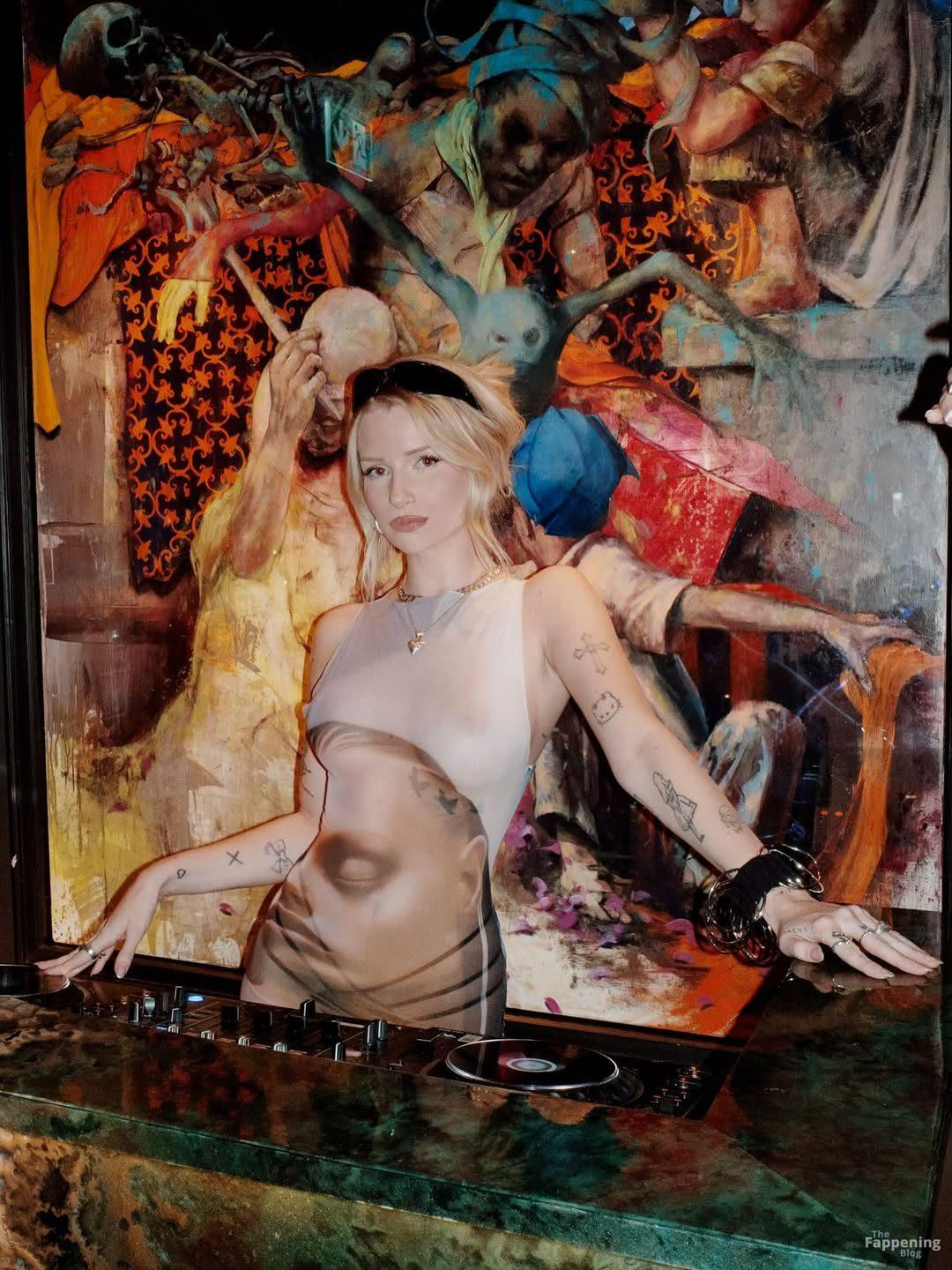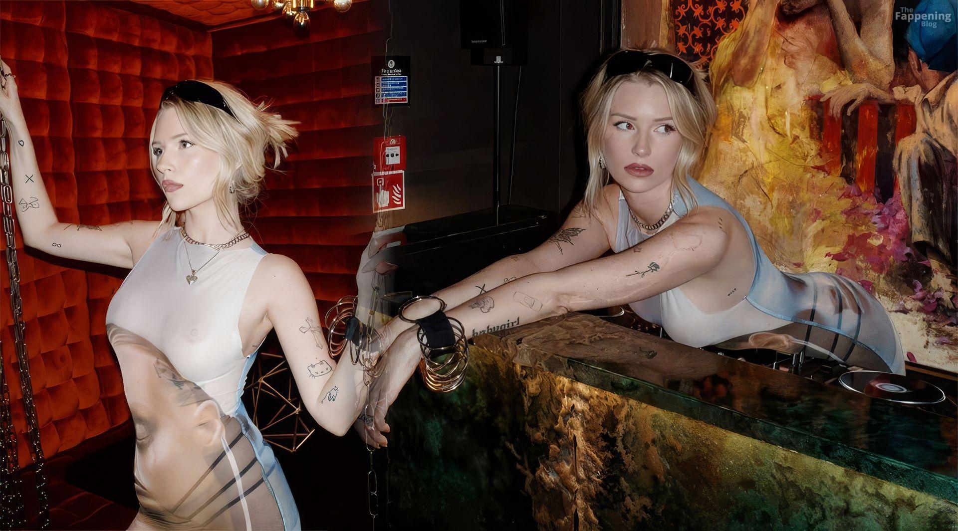 Лотти Мосс позирует в прозрачном платье, демонстрируя свои обнажённые груди. Зацени её горячий образ с её безумной диджейской ночи.