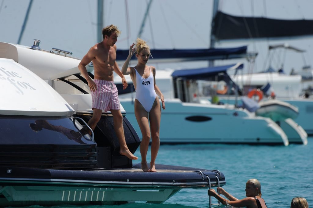 Lottie Moss, Emily Blackwell и другие девушки празднуют день рождения Frankie Gaff на яхте в Форментере, 16.06.2017. Charlotte Moss — модель и младшая сестра Kate Moss из Лондона. Возраст: 19 лет.