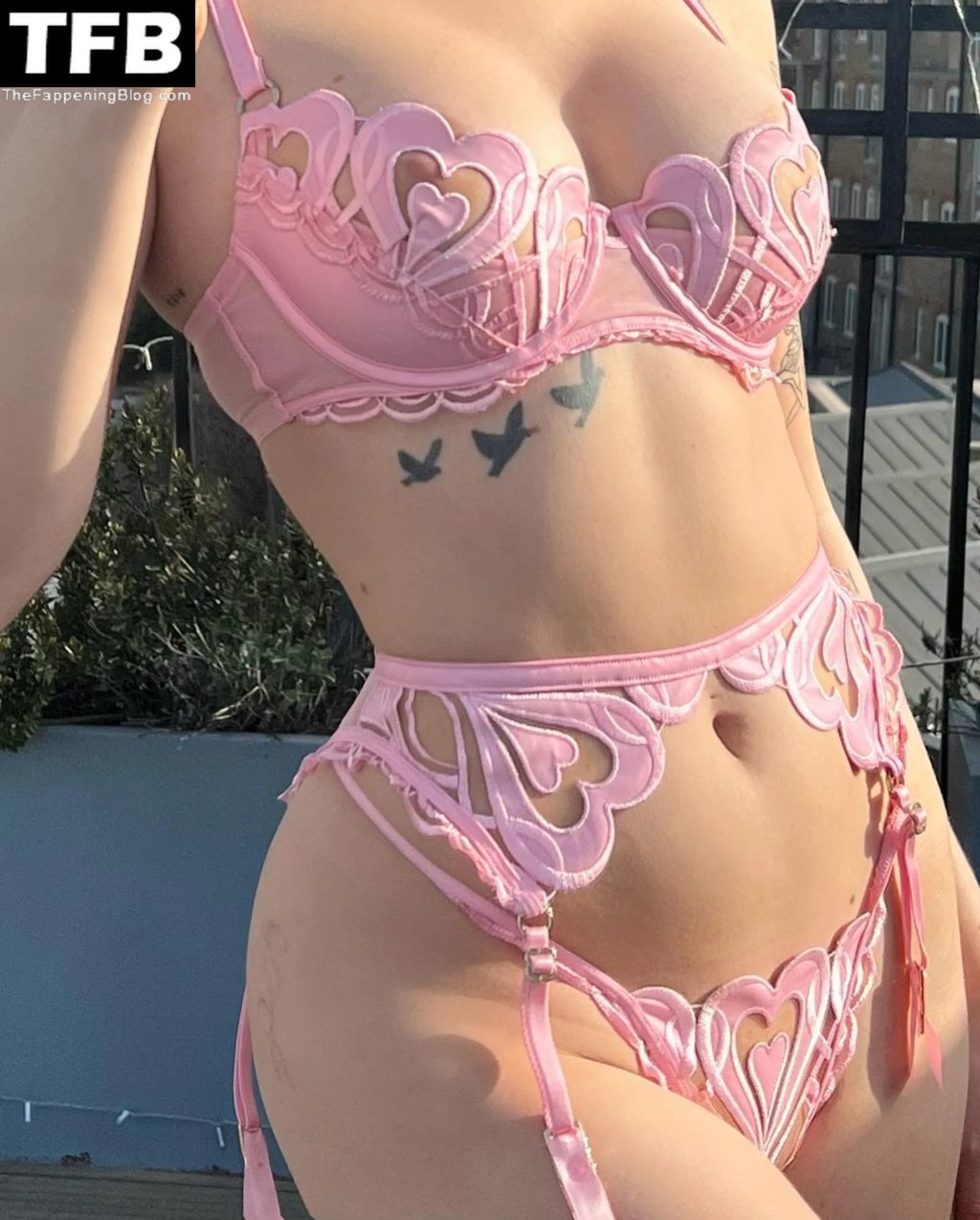 Модель и создательница контента на OF Лотти Мосс позирует в розовом нижнем белье, рекламируя новую коллекцию Honey Birdette – Instagram, 27.03.2022.