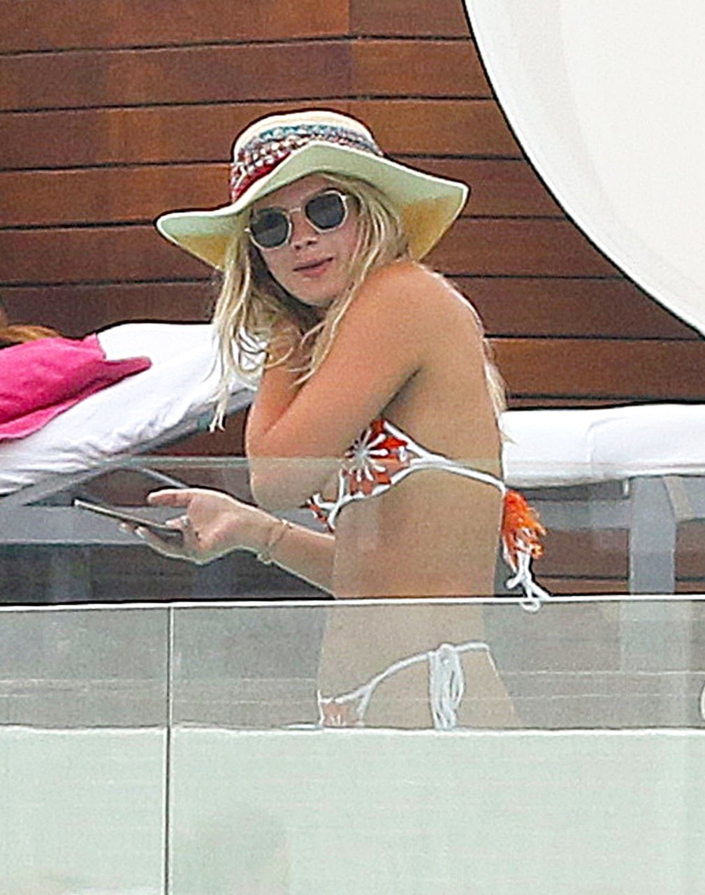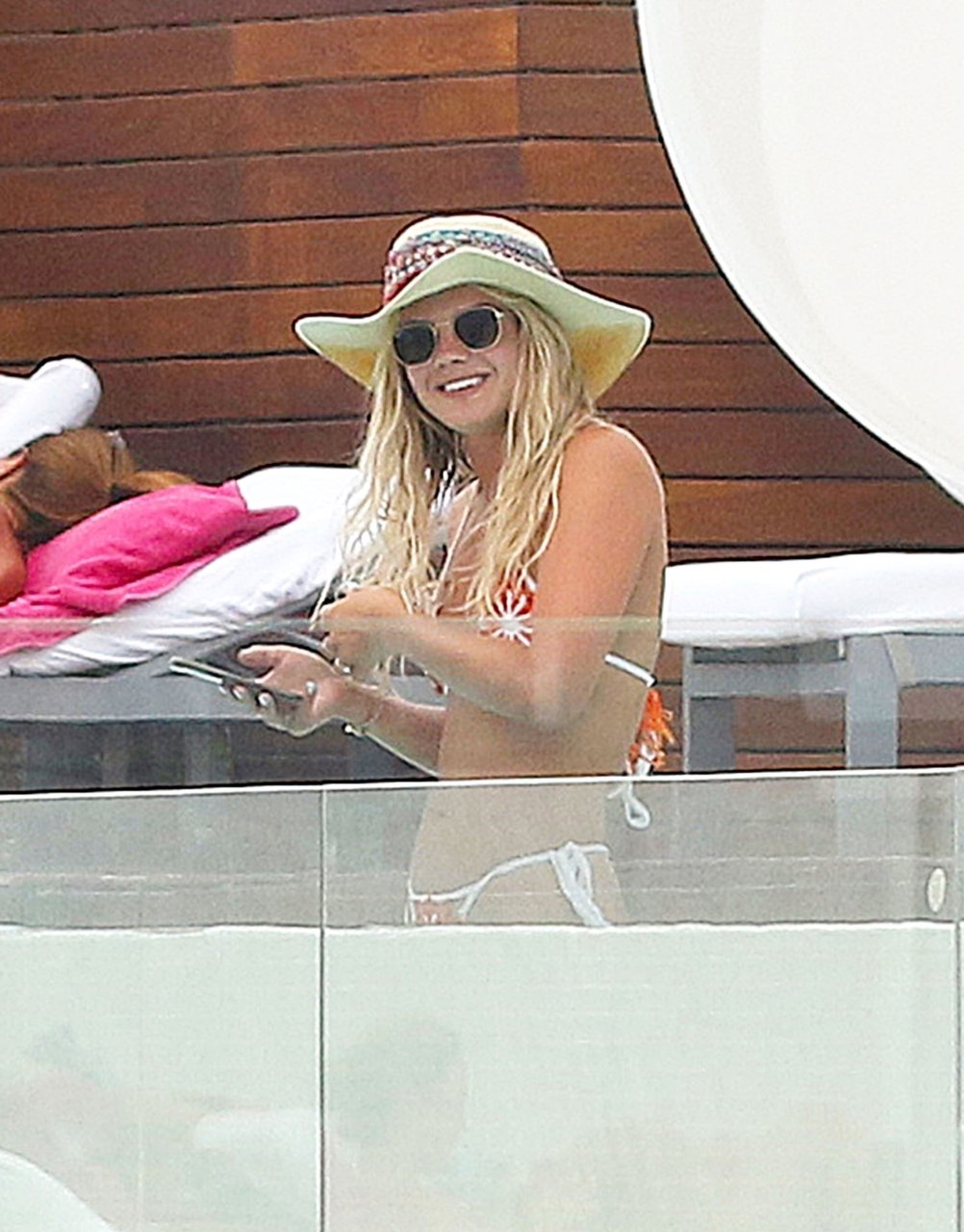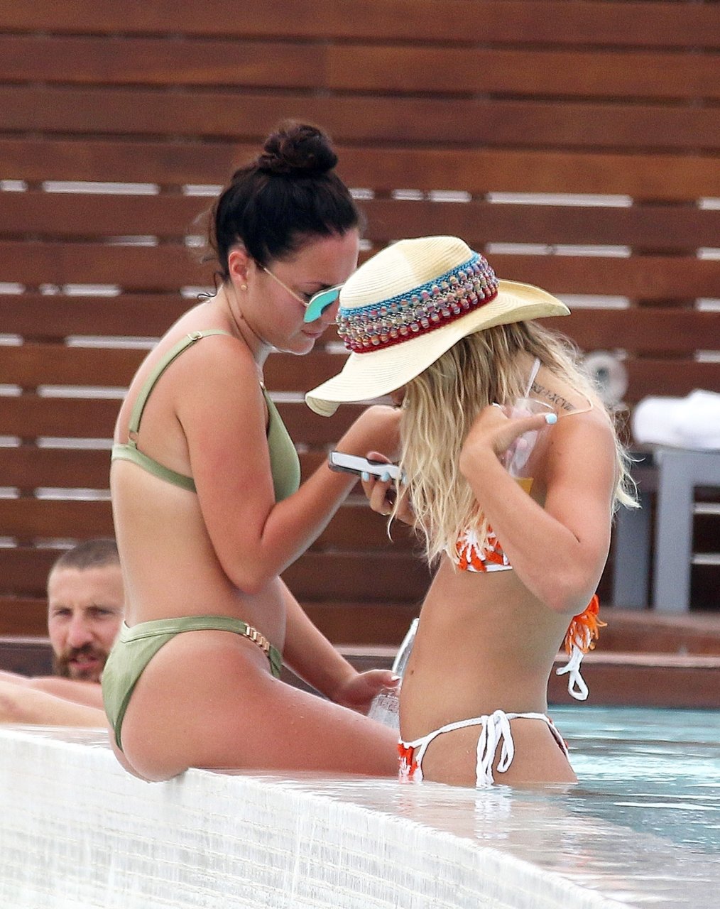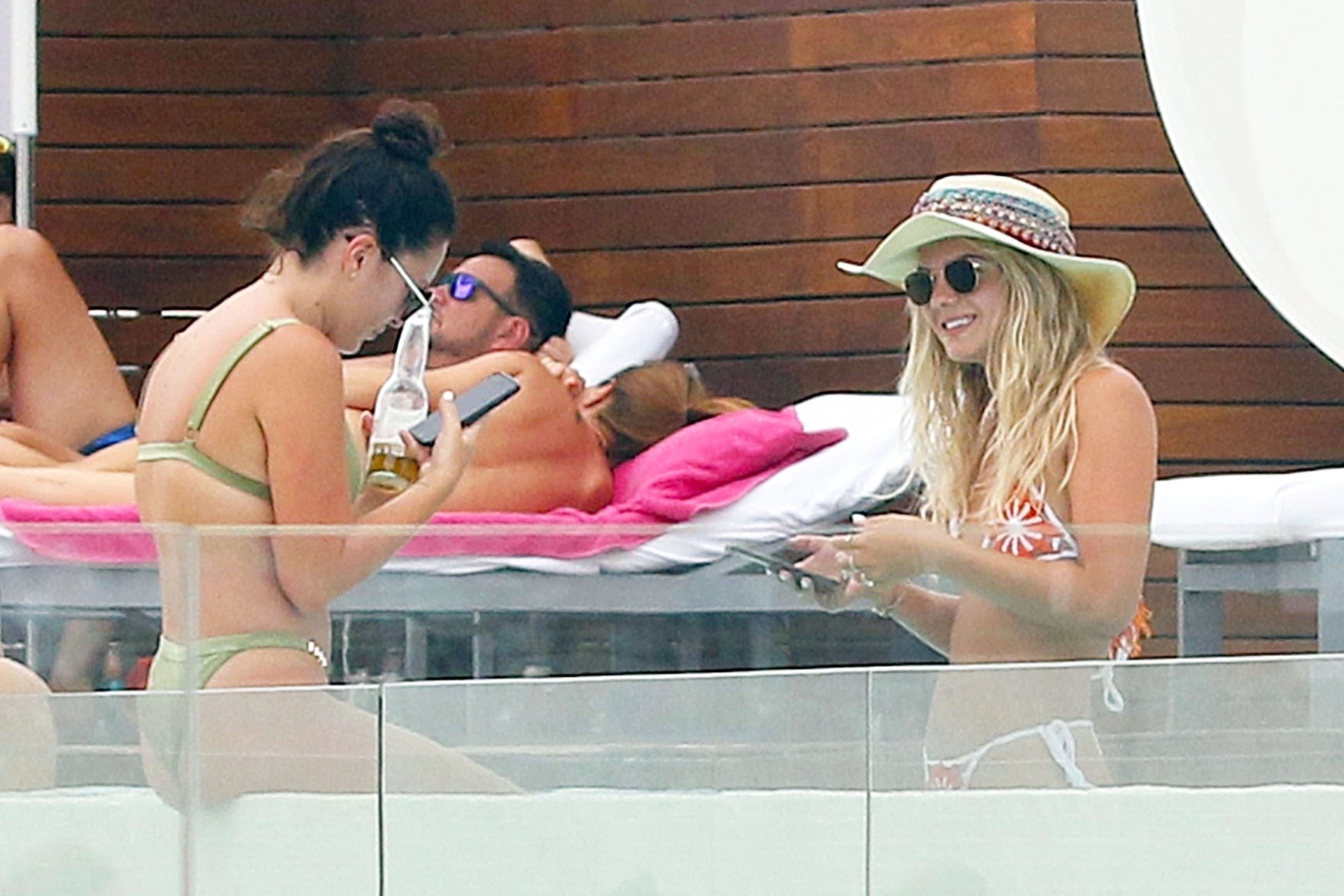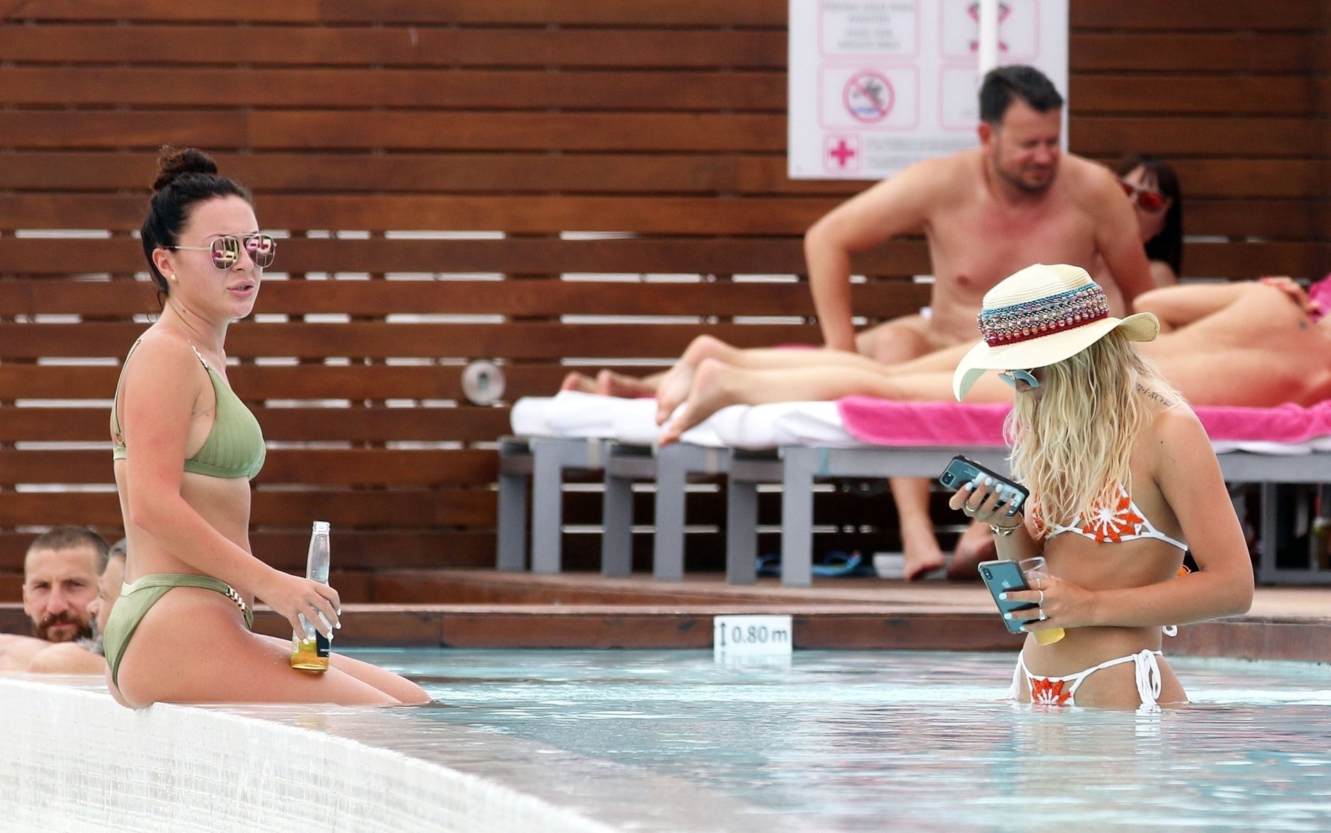 2015 победитель X Factor Луиза Джонсон (20) на фото демонстрирует упругую попку, отдыхая у бассейна с подругой на Ибице, 07/03/2018. Певица “Tear’s” выглядела расслабленной, наслаждаясь пивом и просматривая телефон перед освежающим заплывом в бассейне.