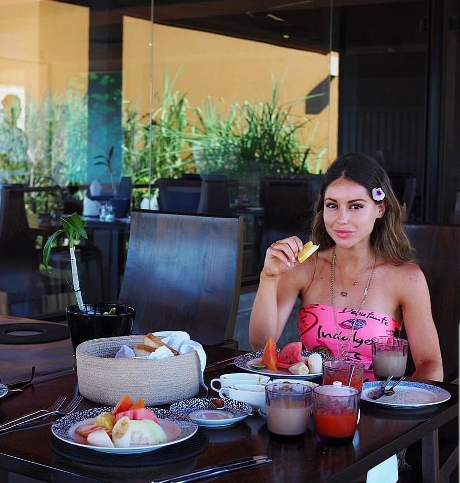 Луиза Томпсон (“Made in Chelsea”) поймана топлесс во время загара у бассейна в Instagram Story жениха Райана Либби (2018).