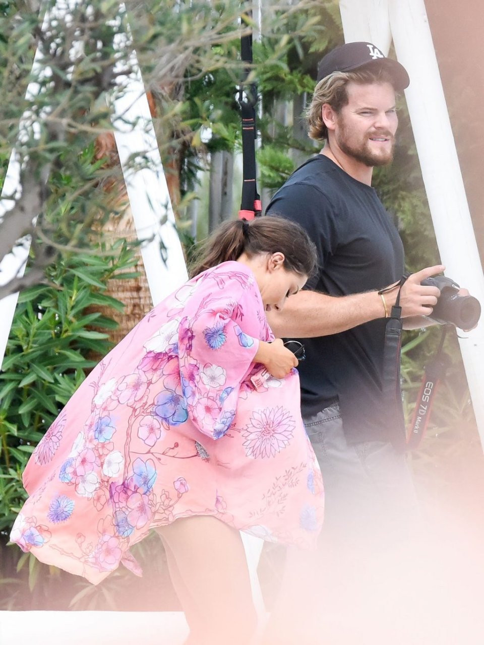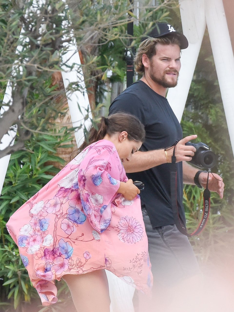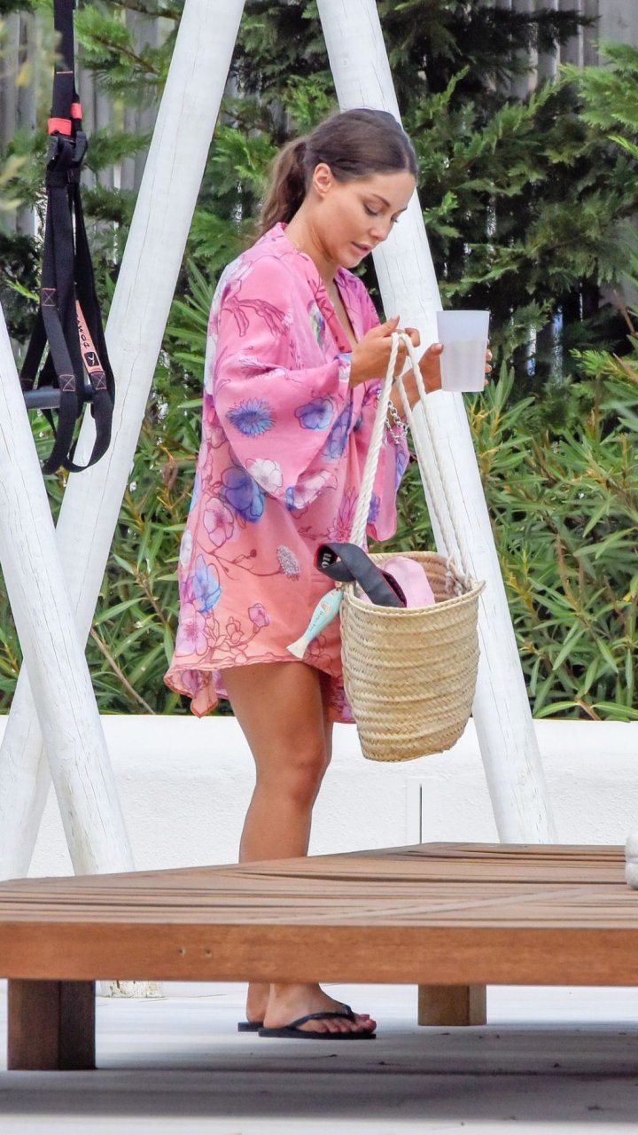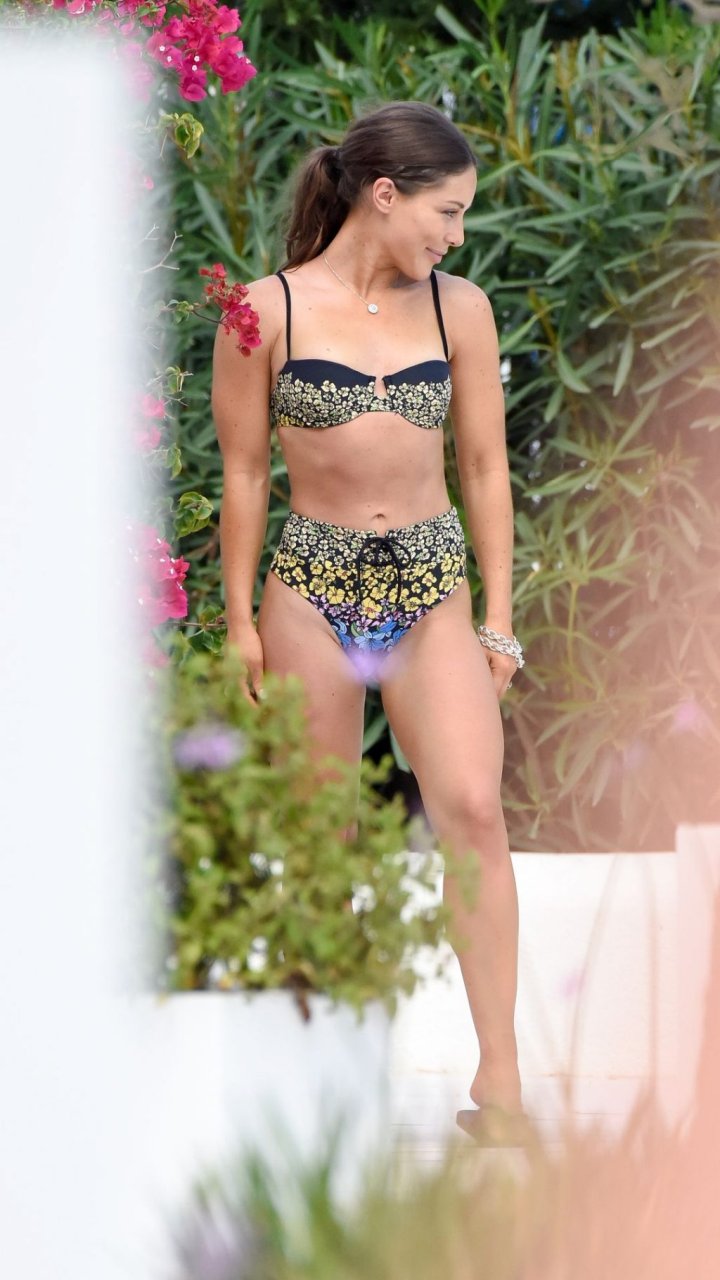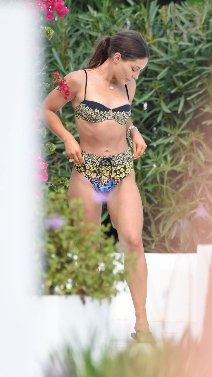 “Звезда шоу “Made in Chelsea” Луиза Томпсон выглядит сногсшибательно в бикини с цветочным принтом, позируя для камеры, пока ее парень Райан Либби делает снимки во время отпуска на Ибице, 16.09.2019.