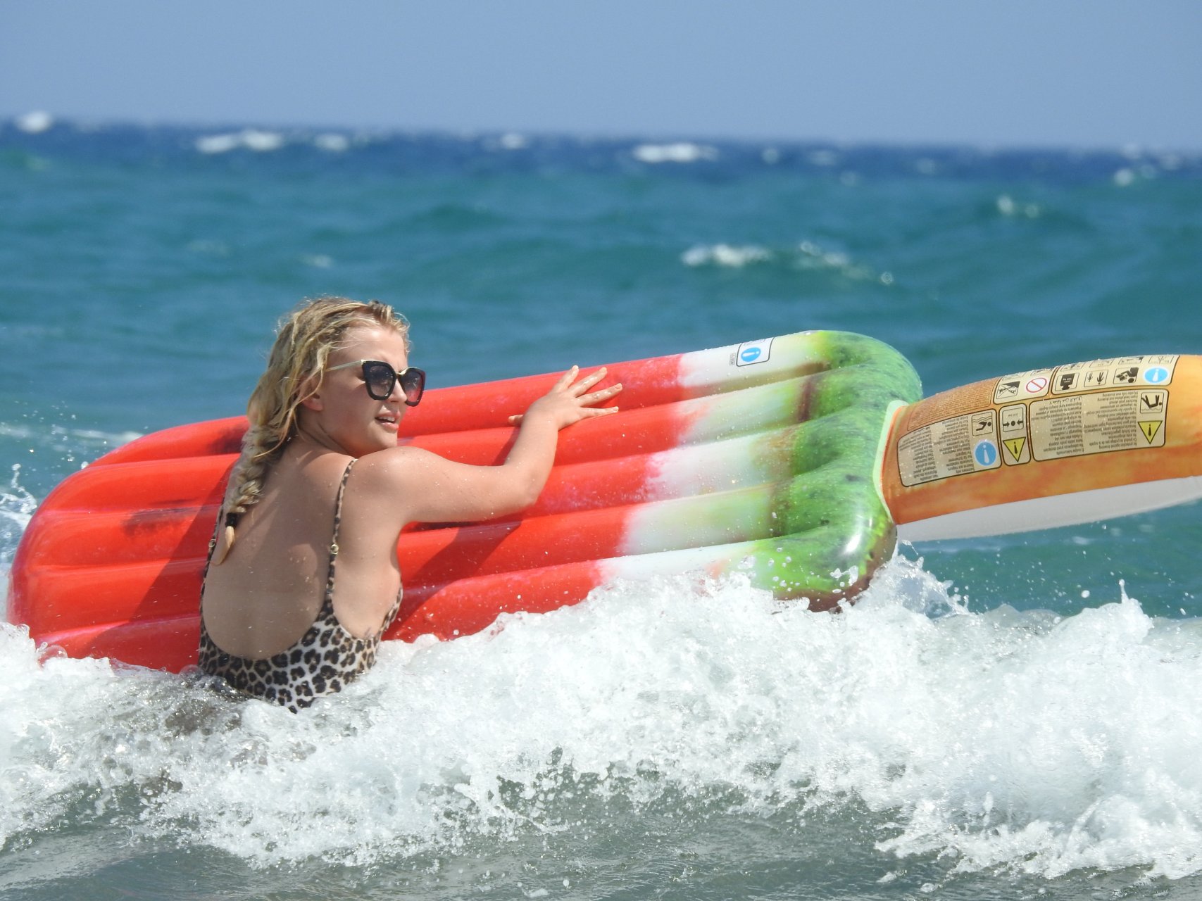 Звезда сериала «Коронация улица» Люси Фэллон резвится в прибое в купальнике с леопардовым принтом. 22-летняя актриса играла с надувными игрушками, к ней присоединился её парень Том Лич на Кипре.