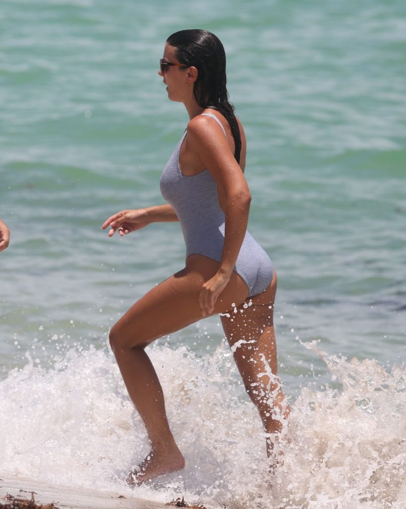 Жена Бакари Сагна Людивин Кадри выходит на пляж в Майами, 16.07.2017.