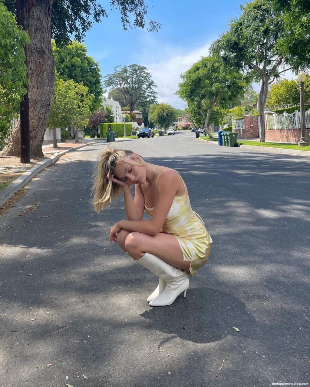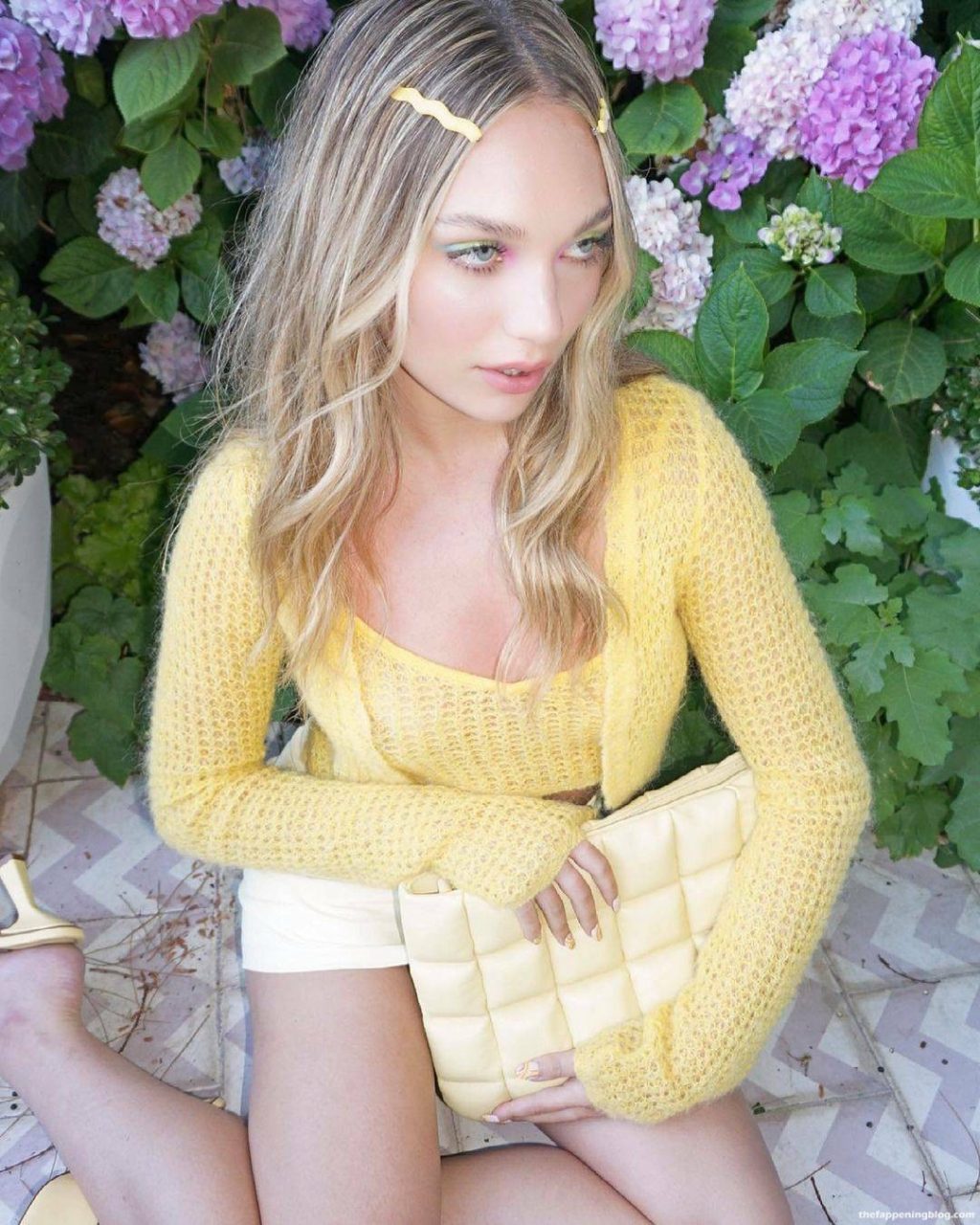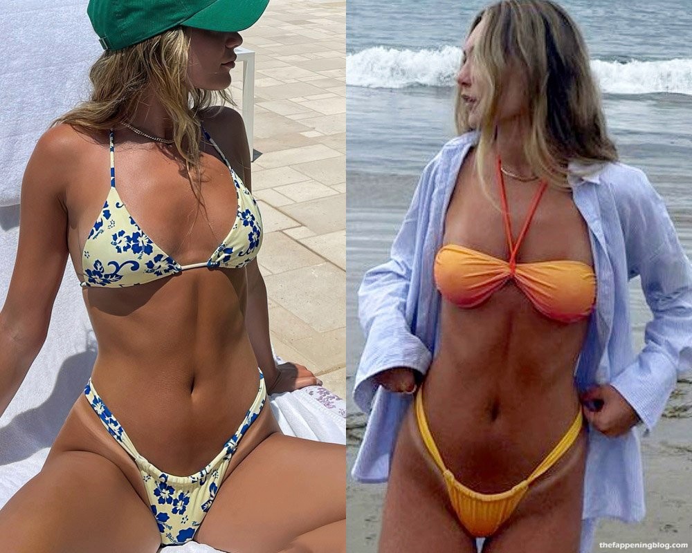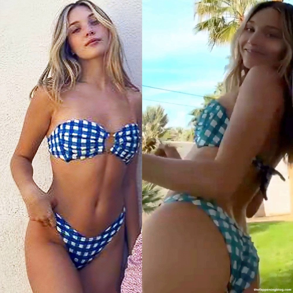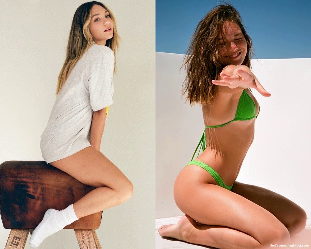 Dancer, model, and Instagram/TikTok star, Maddie Ziegler flaunts the tan lines around her perky boobs and teen thigh gap in the bikini pictures below.
