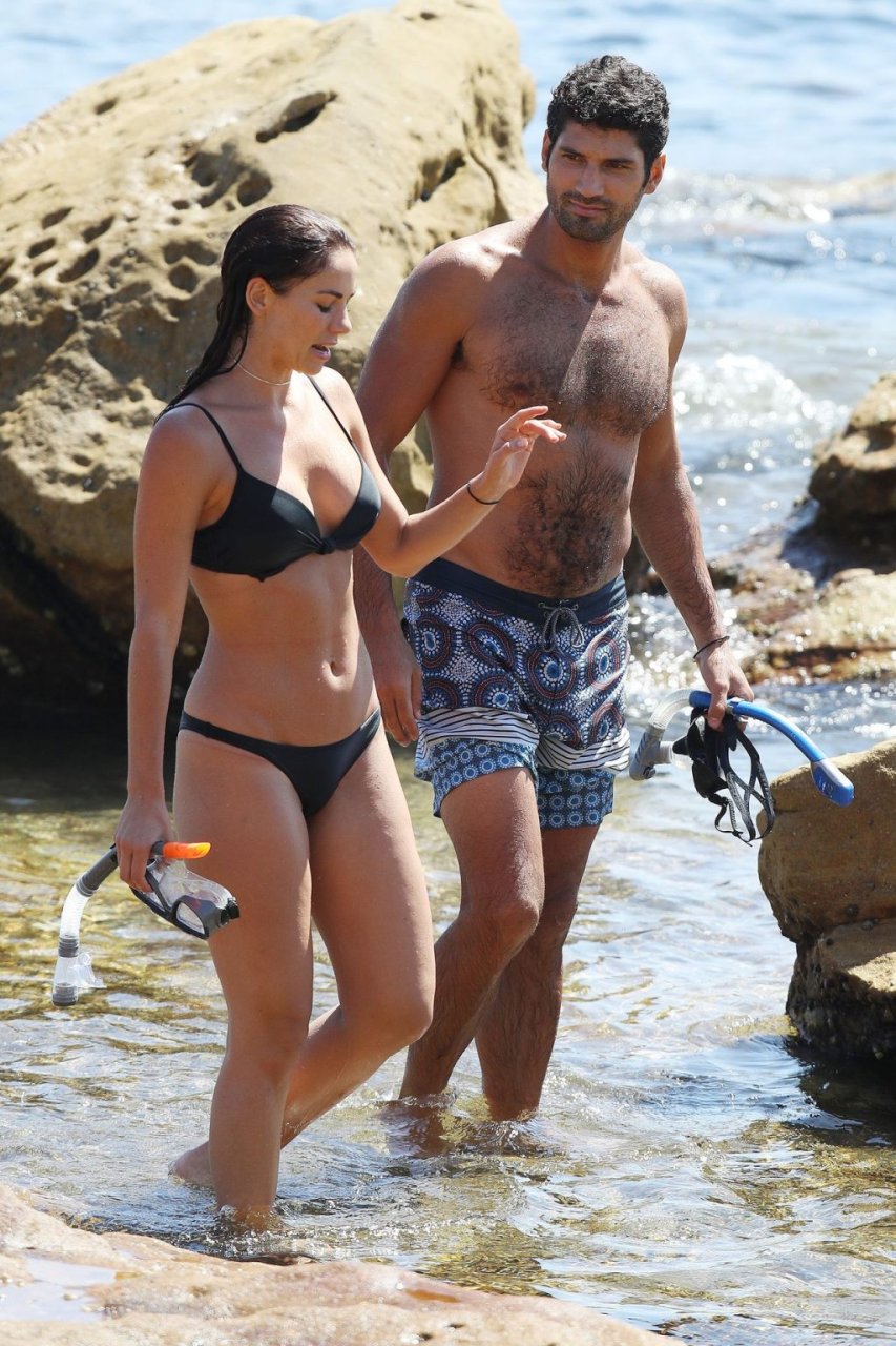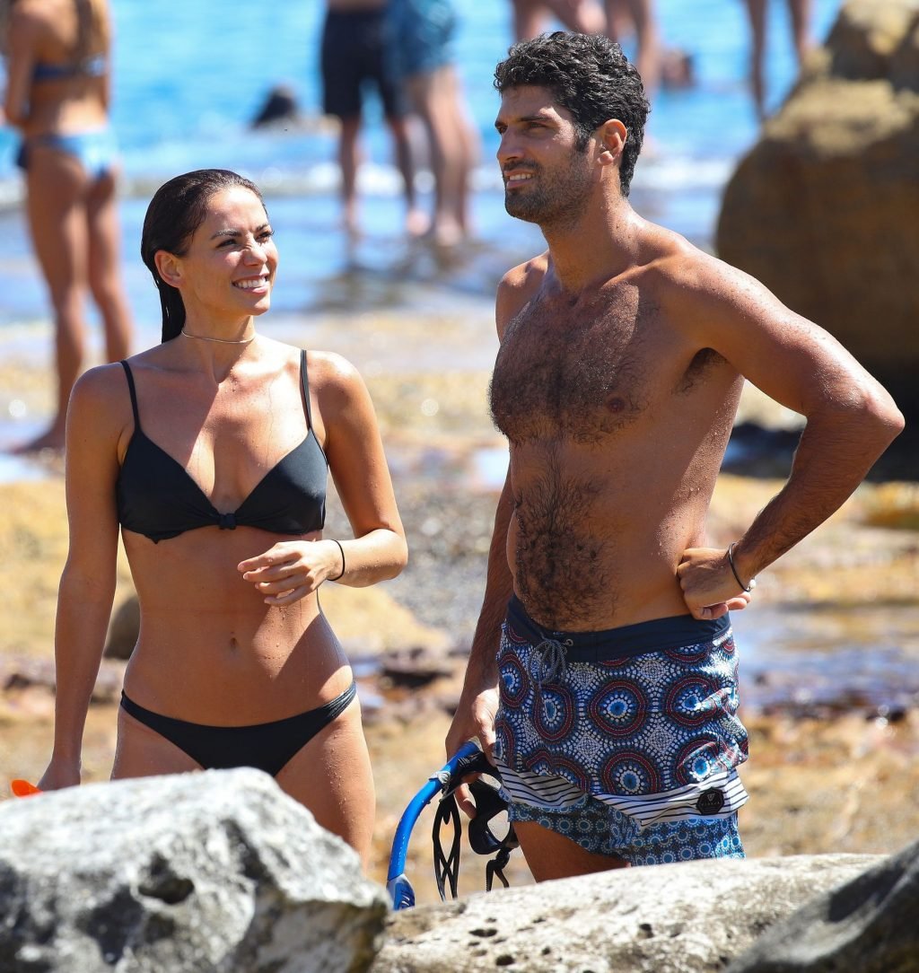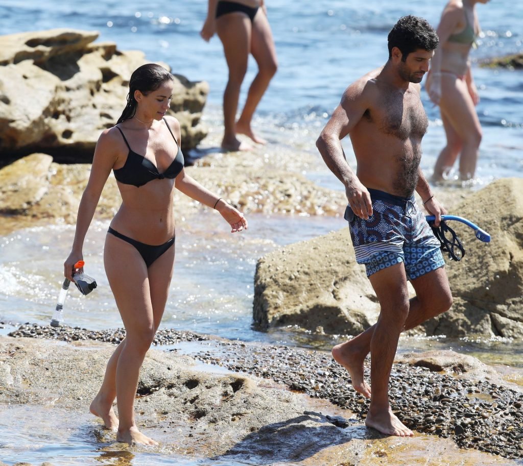 Австралийская модель Мэдди Кинг (30) была замечена со своим новым партнером, наслаждаясь свиданием на пляже в Бонди, Сидней, 01/12/2019. Потрясающая брюнетка демонстрирует свое сексуальное тело в черном бикини.