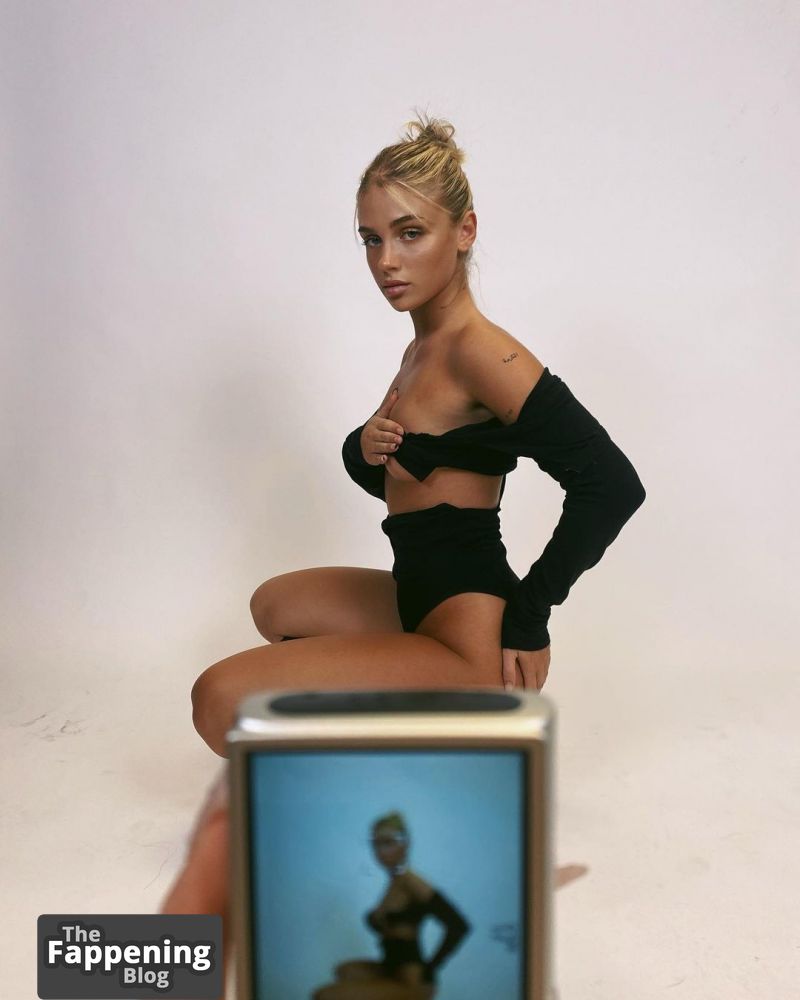 Коллекция фотографий Маделин Франческа отличается смелым и откровенным подходом, с топлес-снимками, демонстрирующими её завораживающую грудь и декольте без бюстгальтера, подчёркивающее её щедрое бюстье.