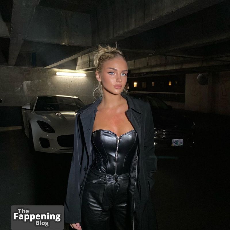 Кроме того, в её коллекции представлены соблазнительные изображения её привлекательной попы, длинных ног и идеально вылепленной модели фигуры в откровенных стрингах.