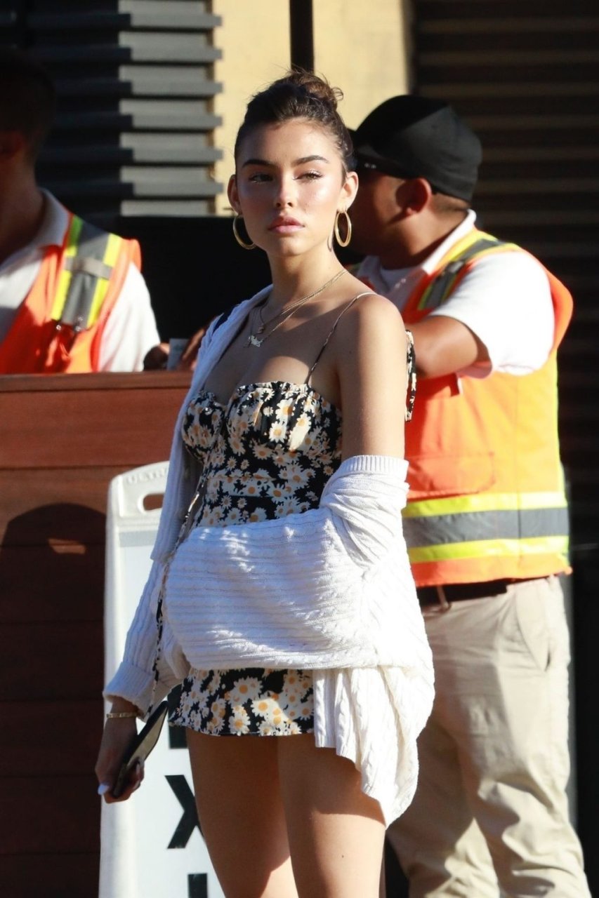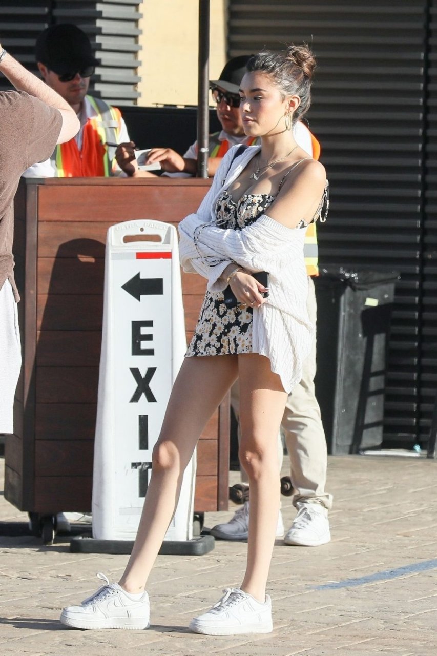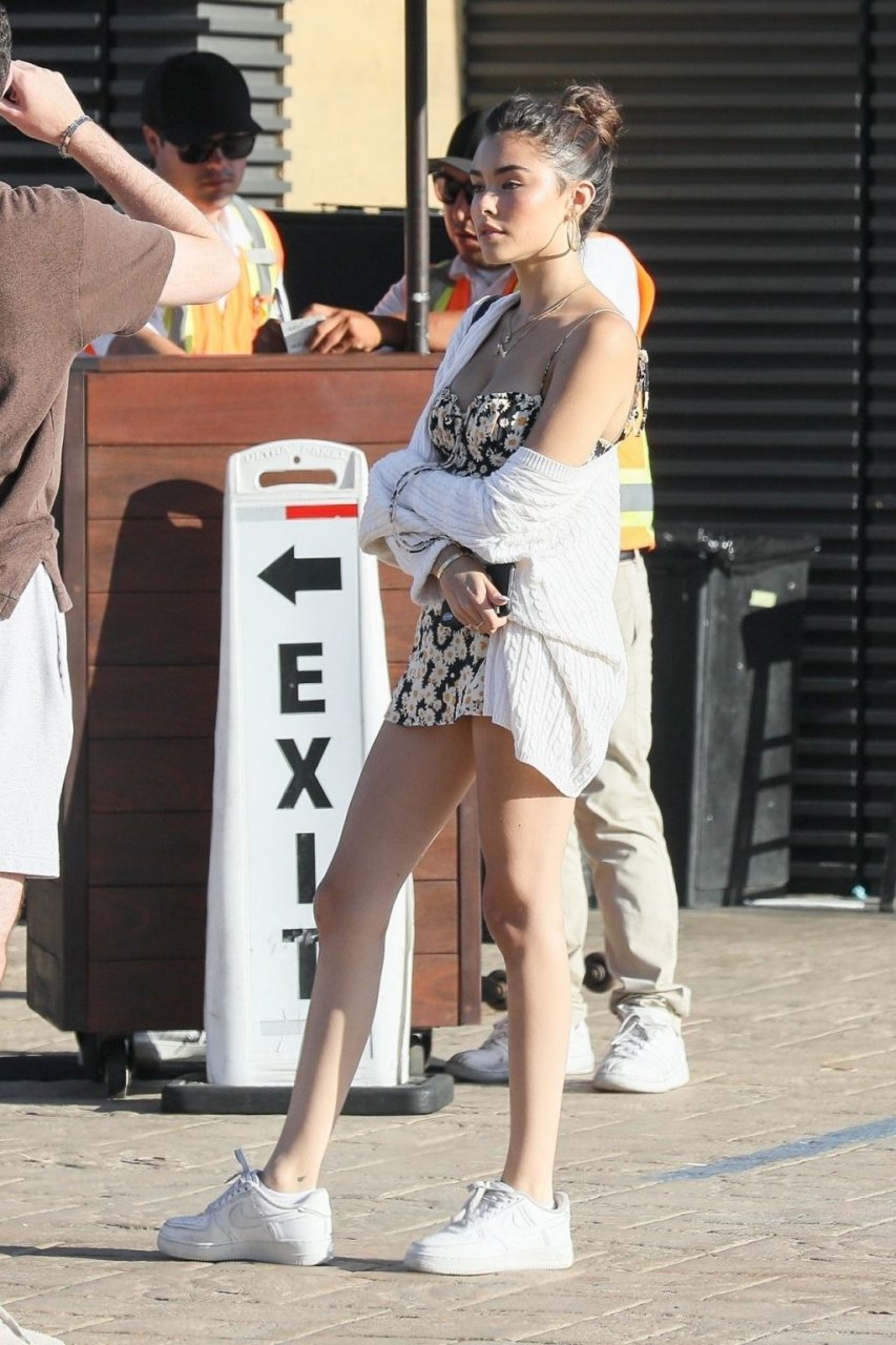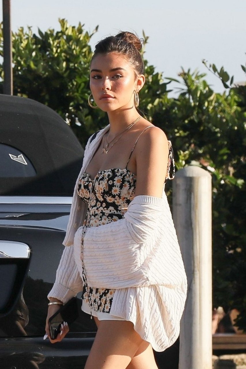 Длинноногая Мэдисон Бир была замечена, покидая Nobu после обеда с друзьями, 25.08.2019. Певица выбрала цветочное мини-платье в сочетании с кроссовками для своей прогулки.