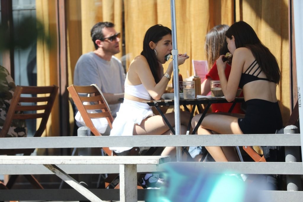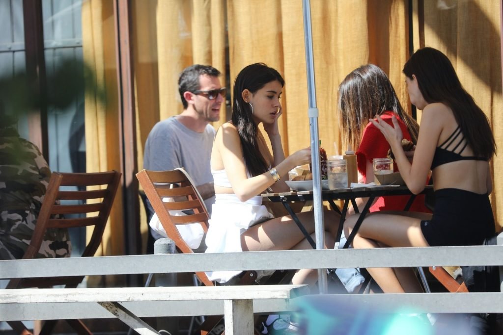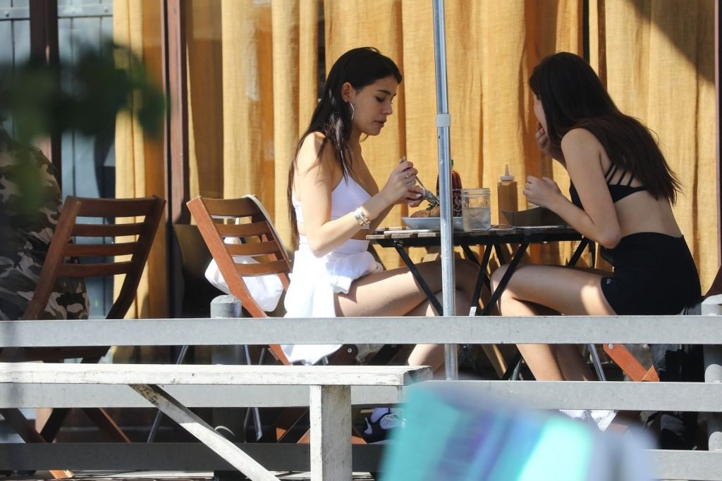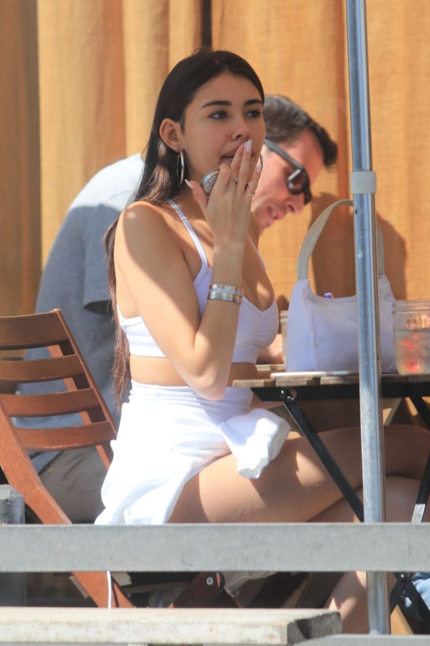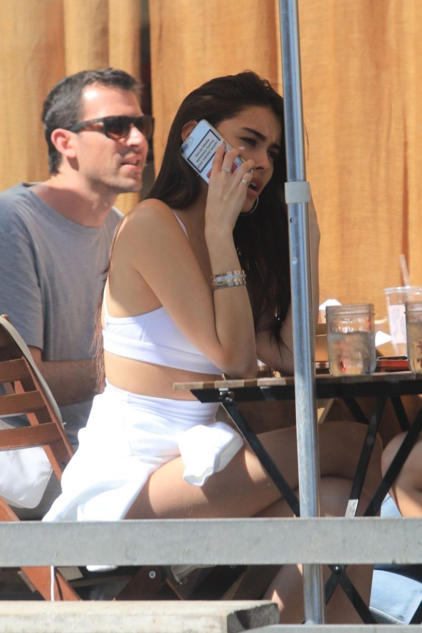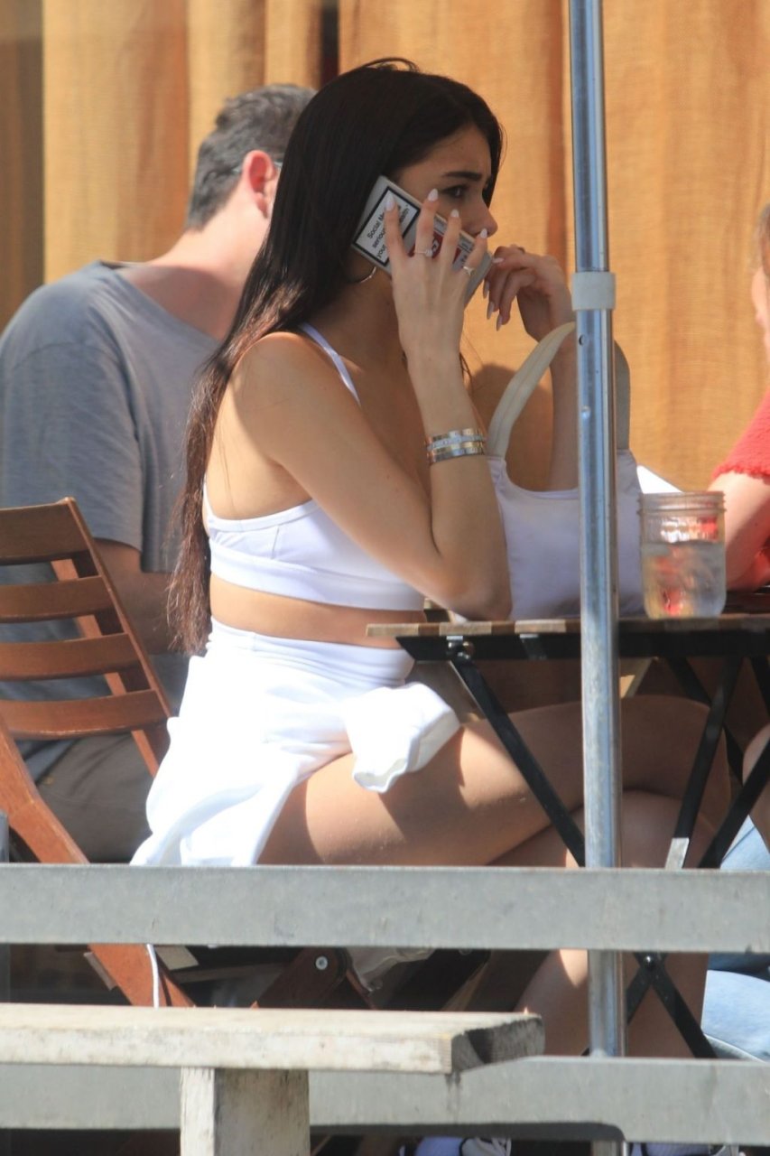 Мэдисон Бир демонстрирует свою стройную фигуру в белых коротких шортах и подходящем кроп-топе, пока она и подруга выбирают джинсы после обеда на свежем воздухе вместе в Уэст-Голливуде, 18.03.2019.
