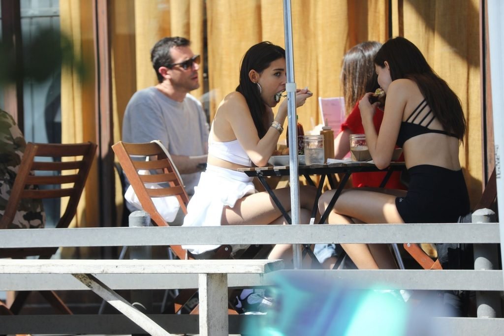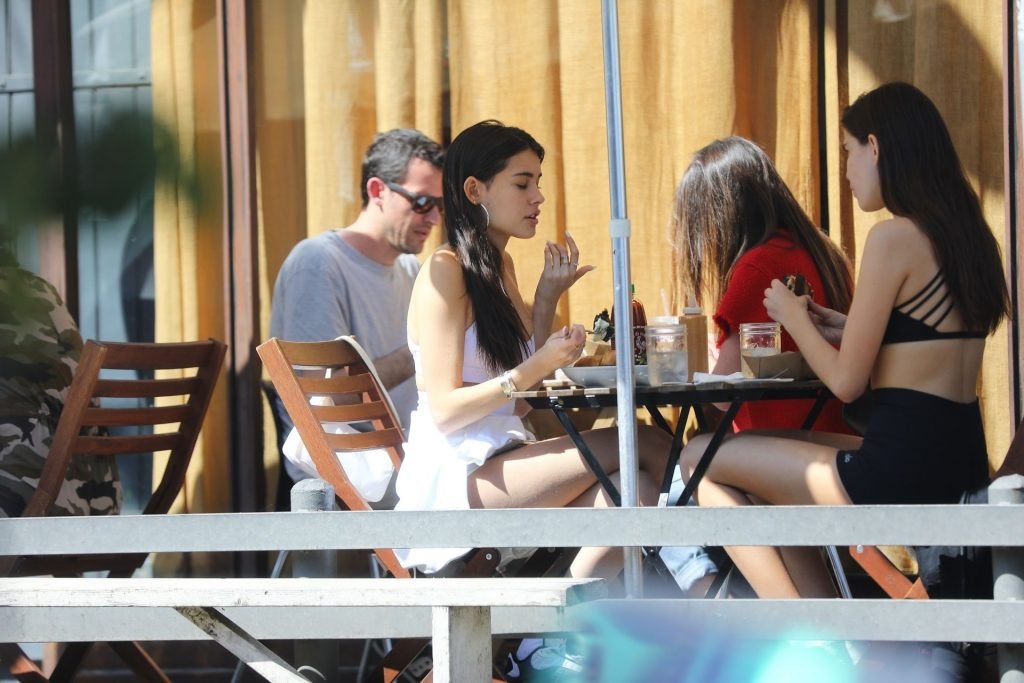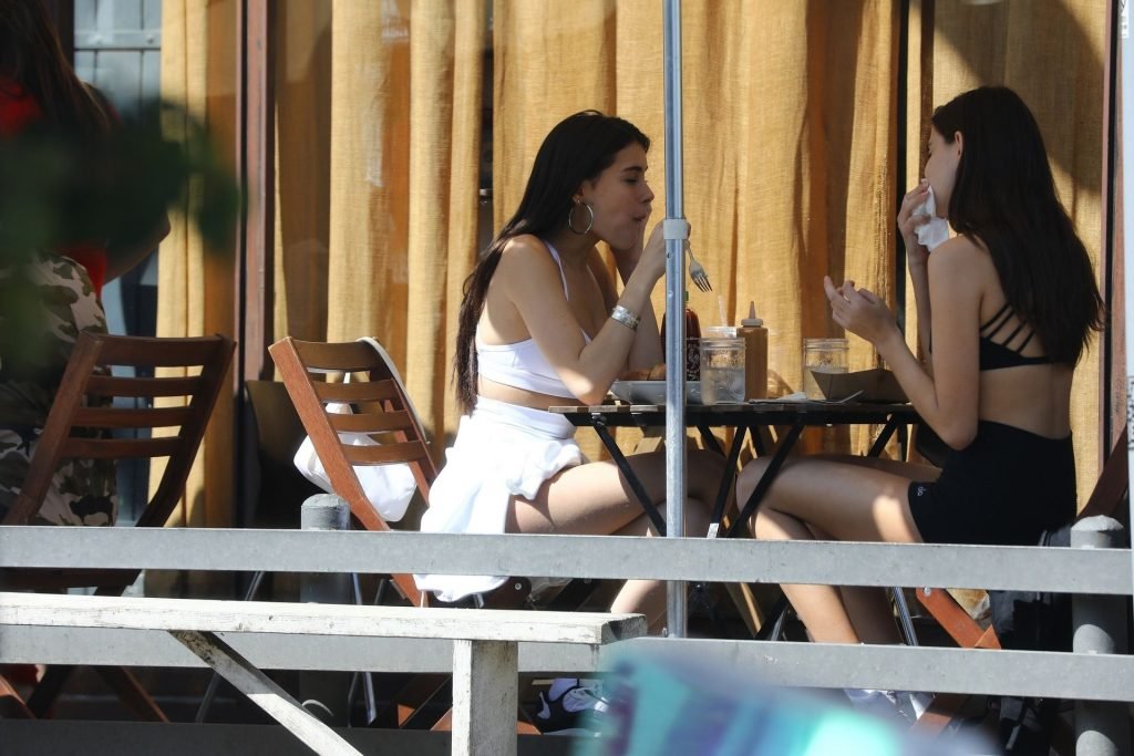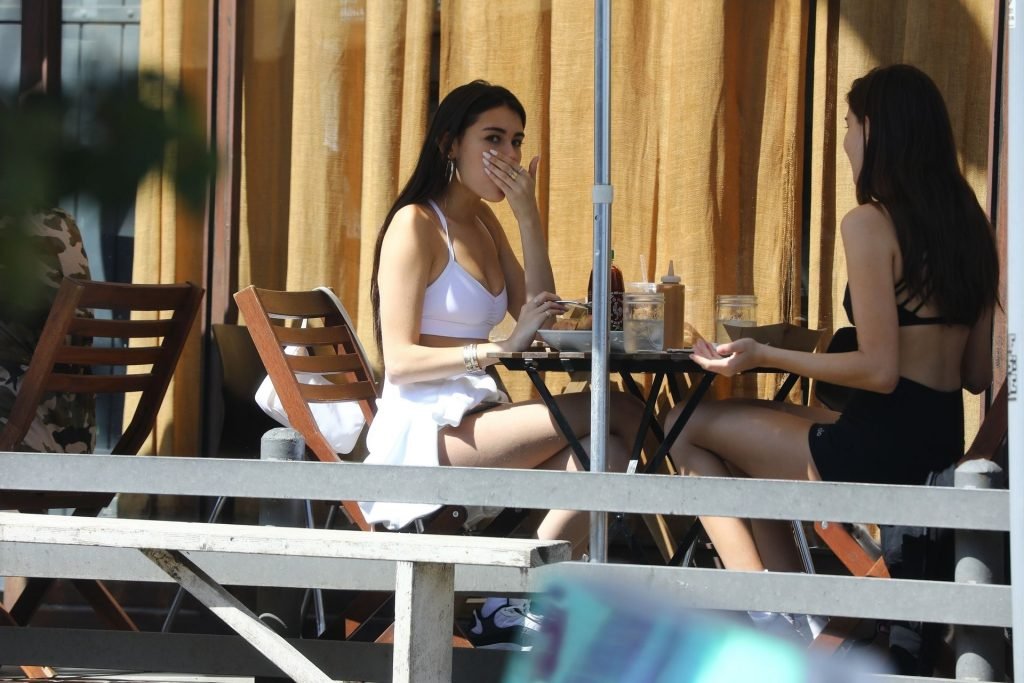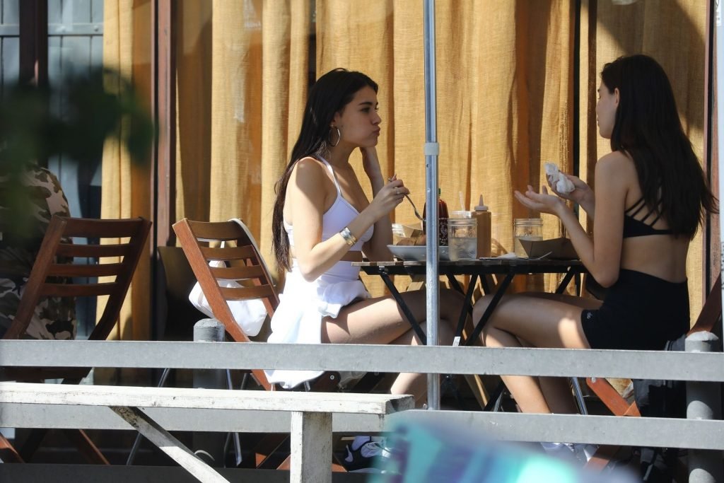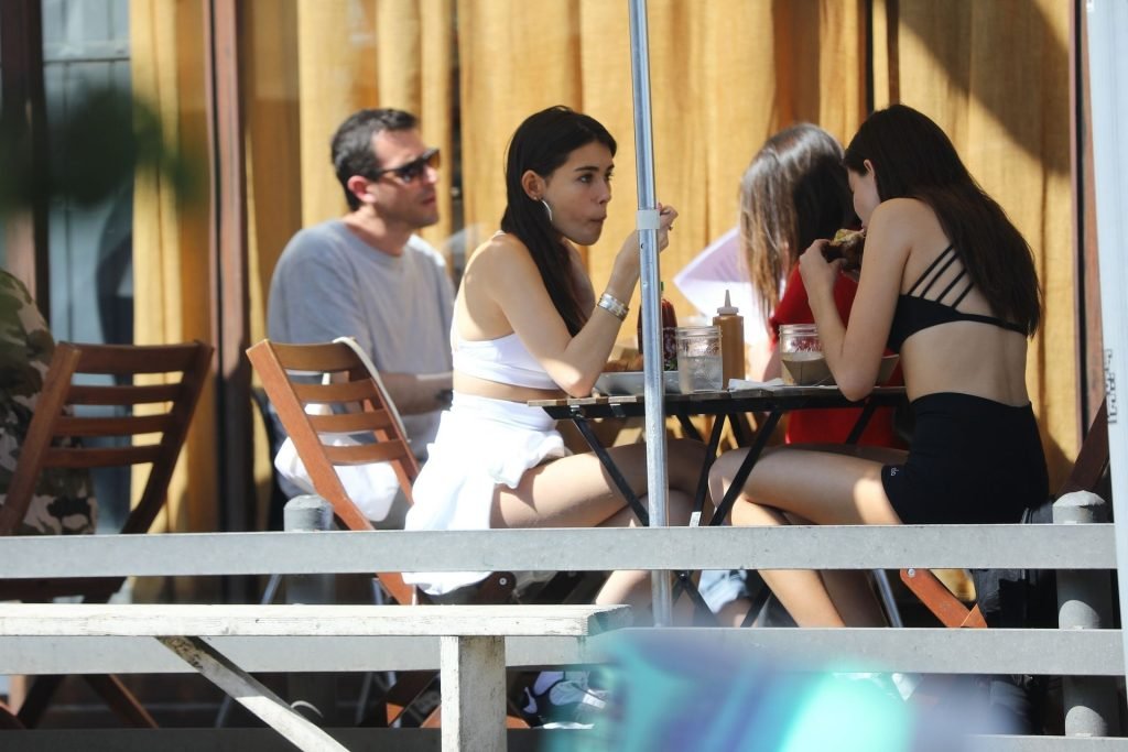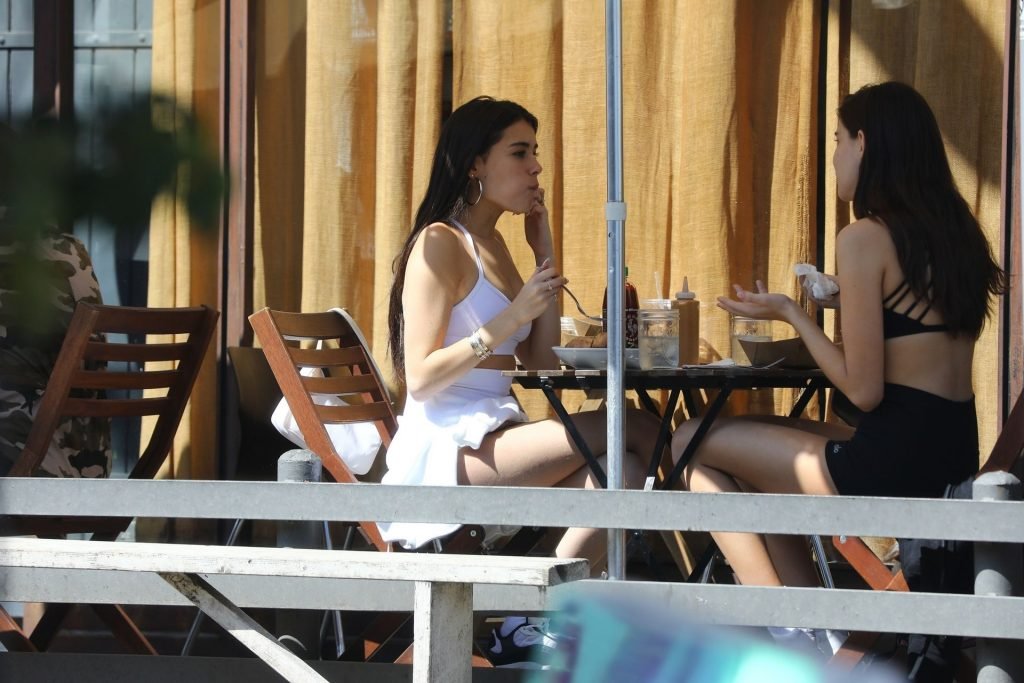 Мэдисон Бир демонстрирует свою стройную фигуру в белых коротких шортах и подходящем кроп-топе, пока она и подруга выбирают джинсы после обеда на свежем воздухе вместе в Уэст-Голливуде, 18.03.2019.