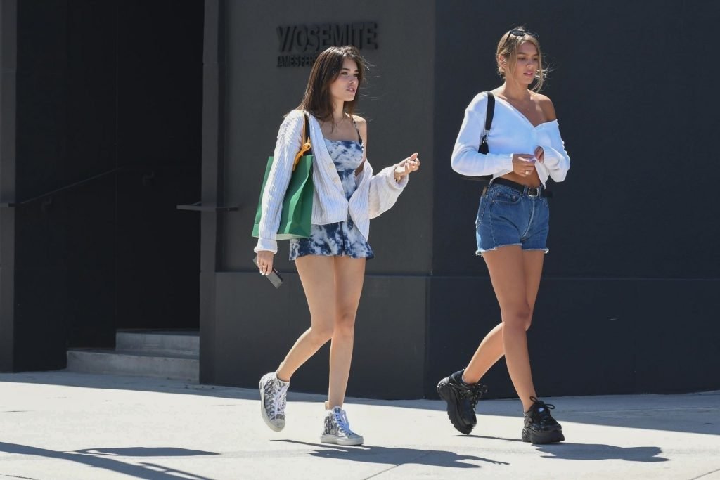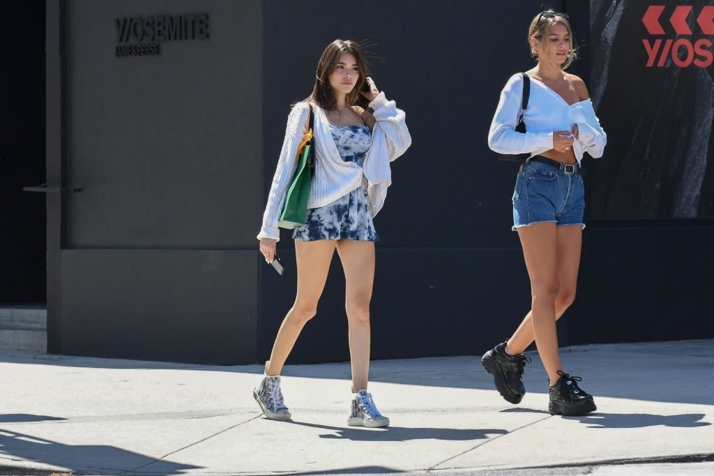 Длинноногая певица/модель Мэдисон Бир возвращается к парковщику после обеда с бабушкой в Il Pastaio в Беверли-Хиллз, 20.08.2019. Ее сфотографировали в слишком коротком платье, обнажающем нижнее белье.