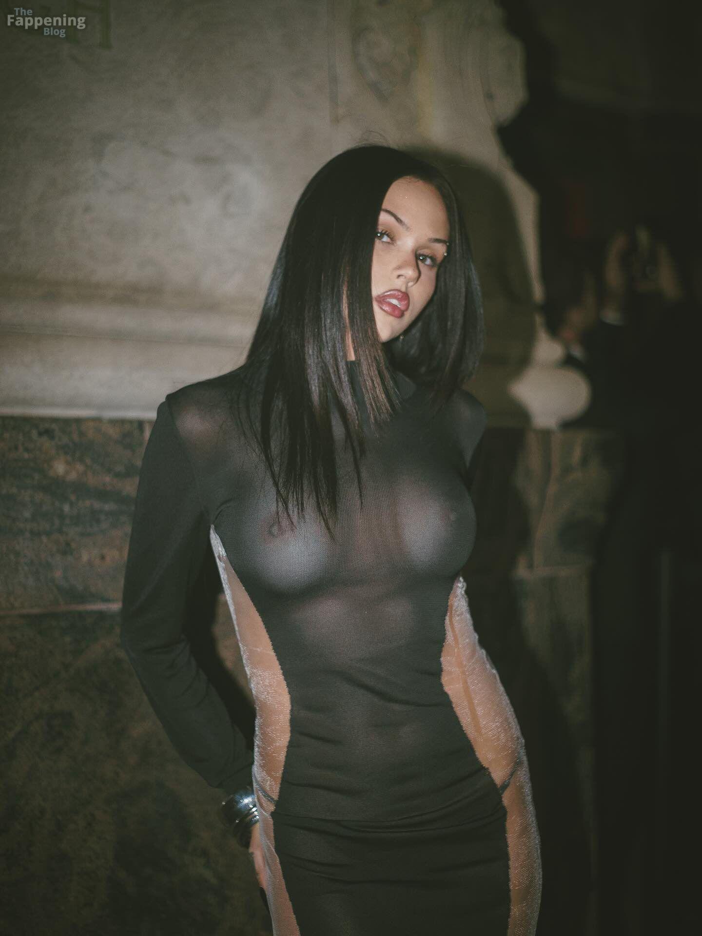 Maggie Lindemann показывает свои обнажённые груди и ягодицы в прозрачном платье Grace Ling на NYFW.