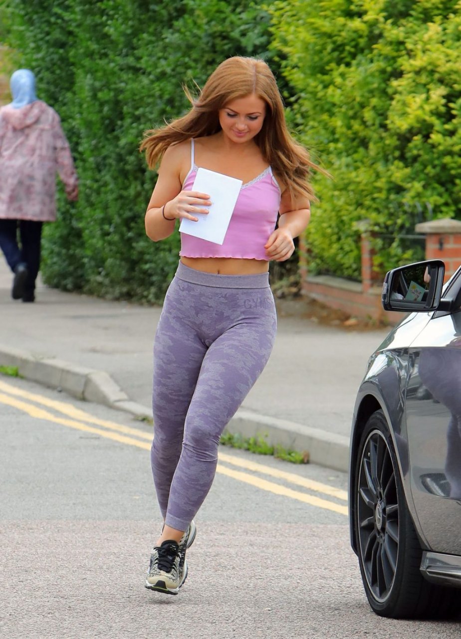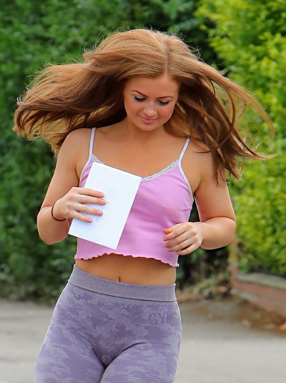 Мэйзи вышла из машины, чтобы поблагодарить их, а затем села обратно в машину. Очевидно, что она была без бюстгальтера, так как пирсинг на ее сосках был виден сквозь топ.