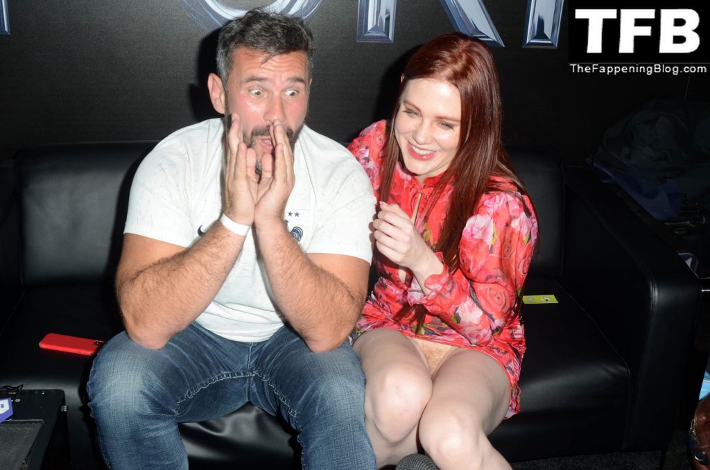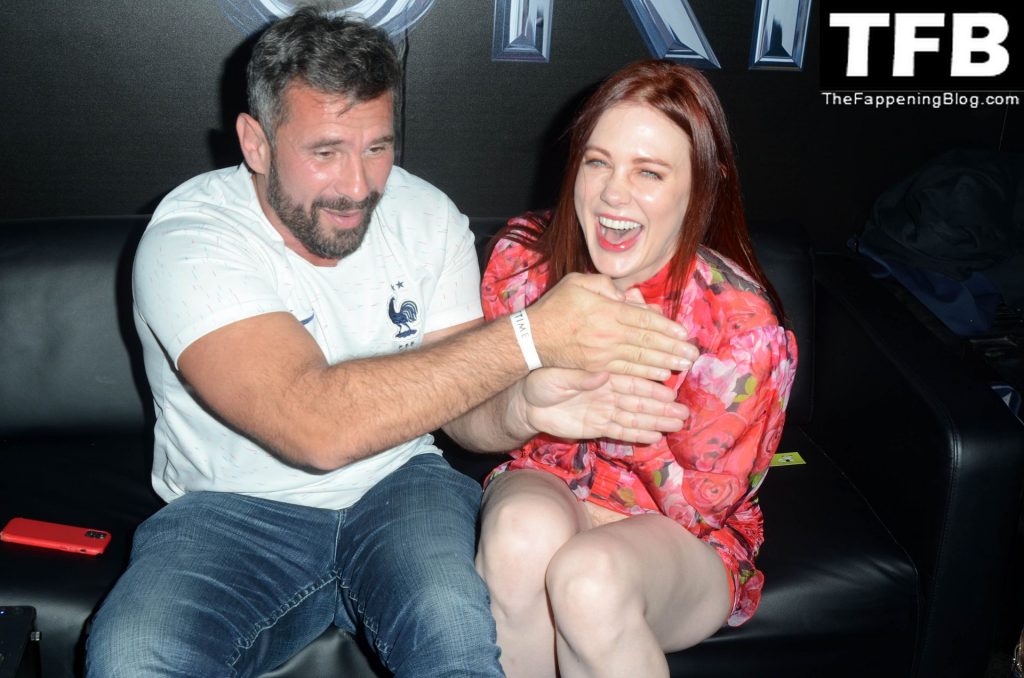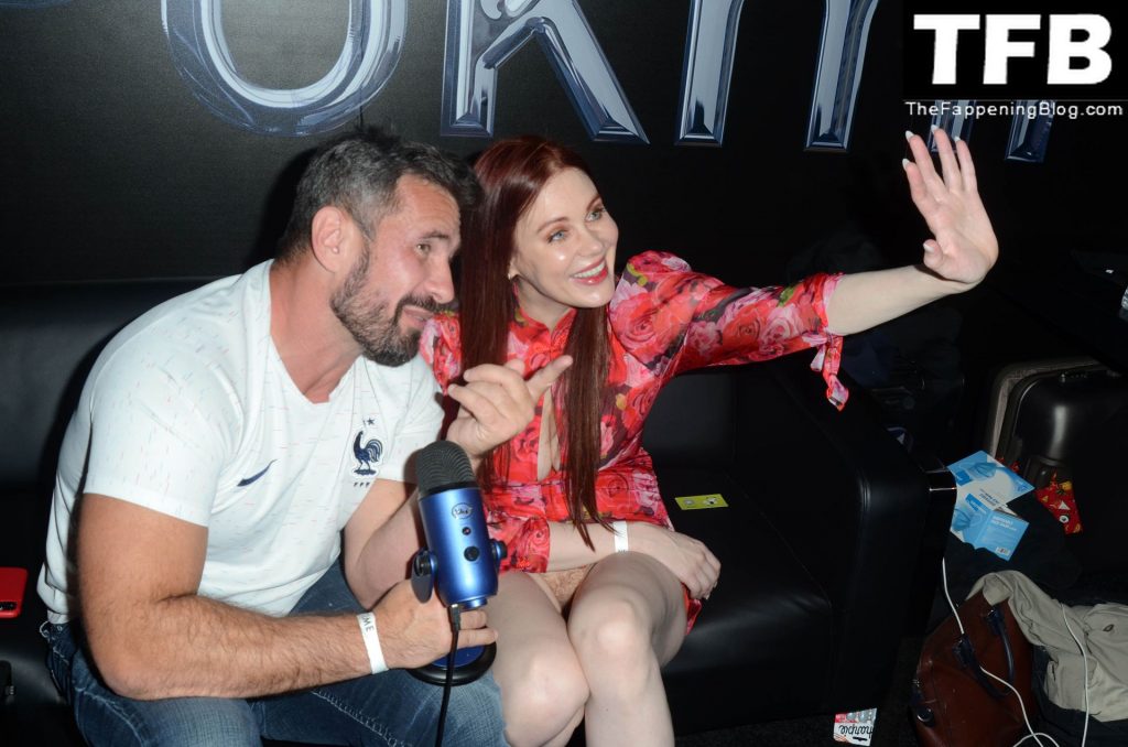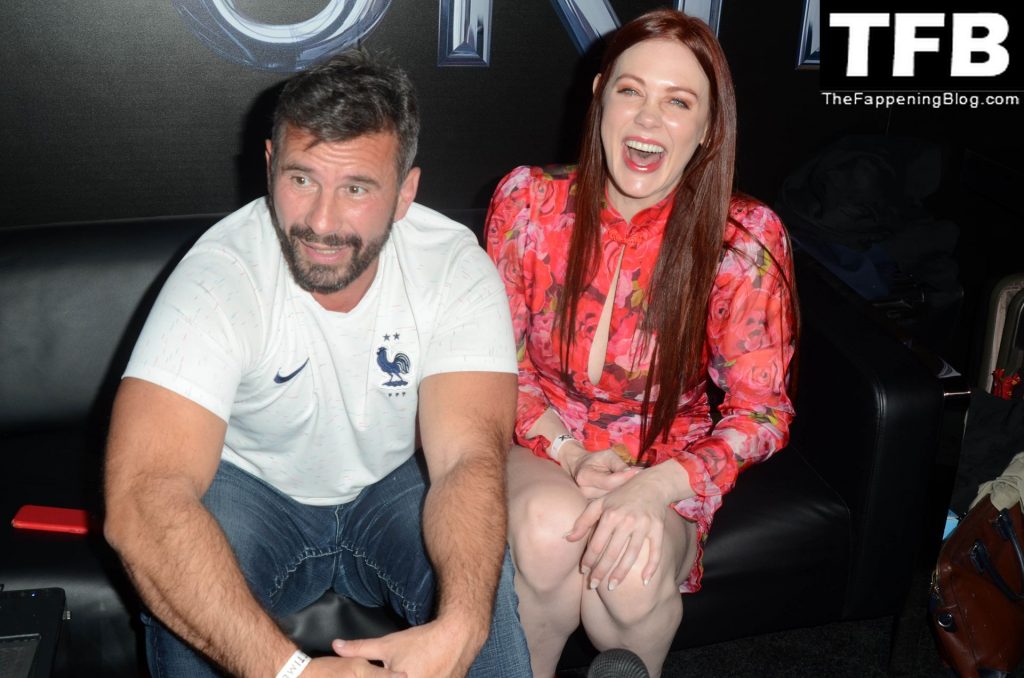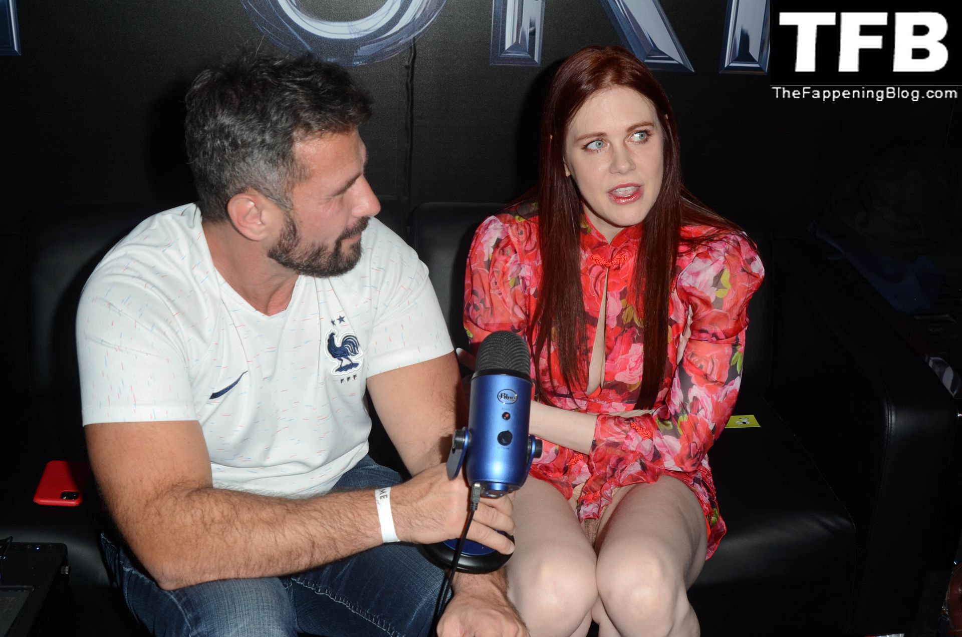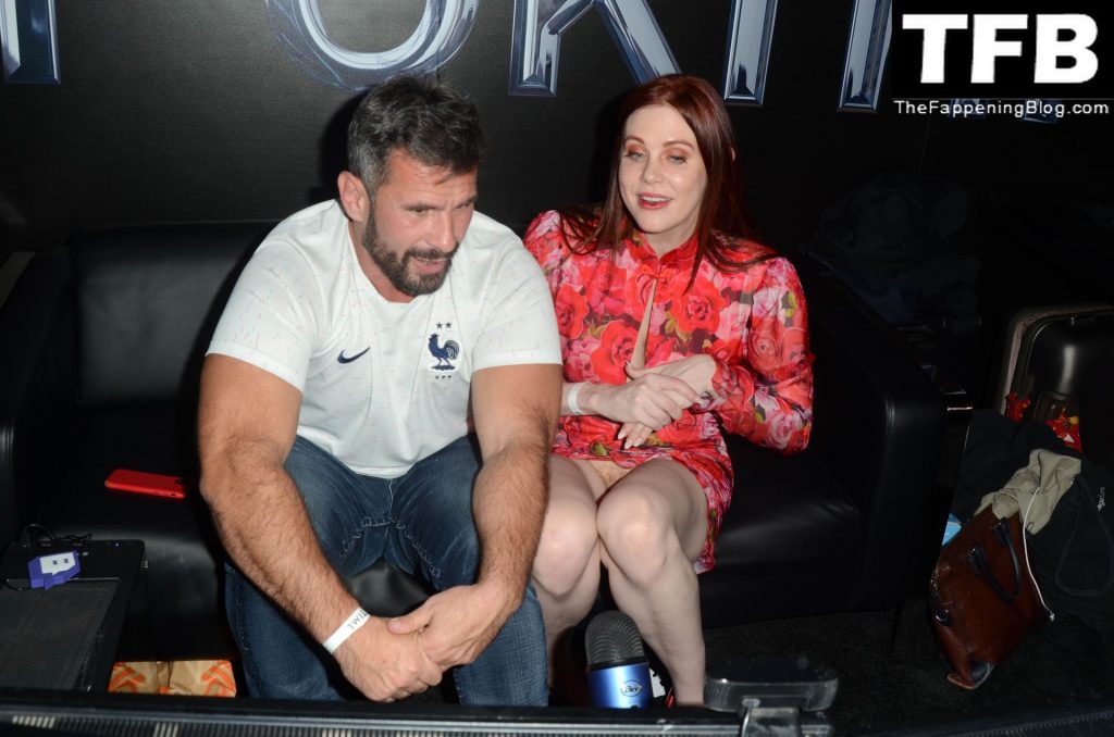 Мейтланд Уорд столкнулась с серьезной проблемой с одеждой во время интервью с ее взрослым коллегой Мануэлем Феррарой на конвенции X3 в Hollywood Palladium, 01/07/2022.