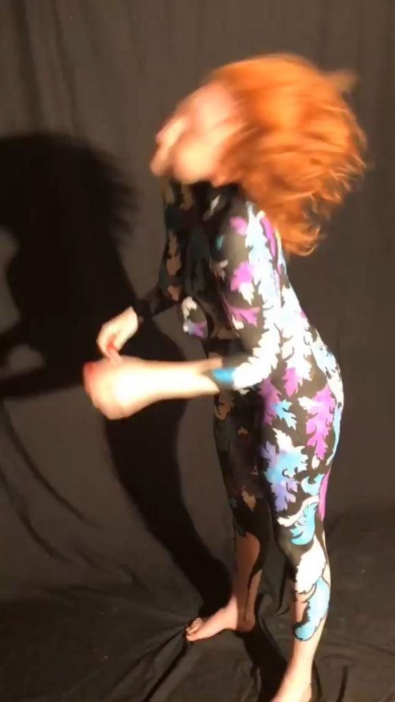 Ладно, кому теперь нужно открывать окно и смотреть на небо, когда перед тобой это видение красоты, дефилирующей в своих телесных красках? Меня бесит, что эти яркие логотипы прячут её киску (как будто мы её раньше не видели?), но раз она решила быть такой экспериментальной, я прощу ей то, что осталось от её мимолётной скромности. И мне нравятся светофоры...