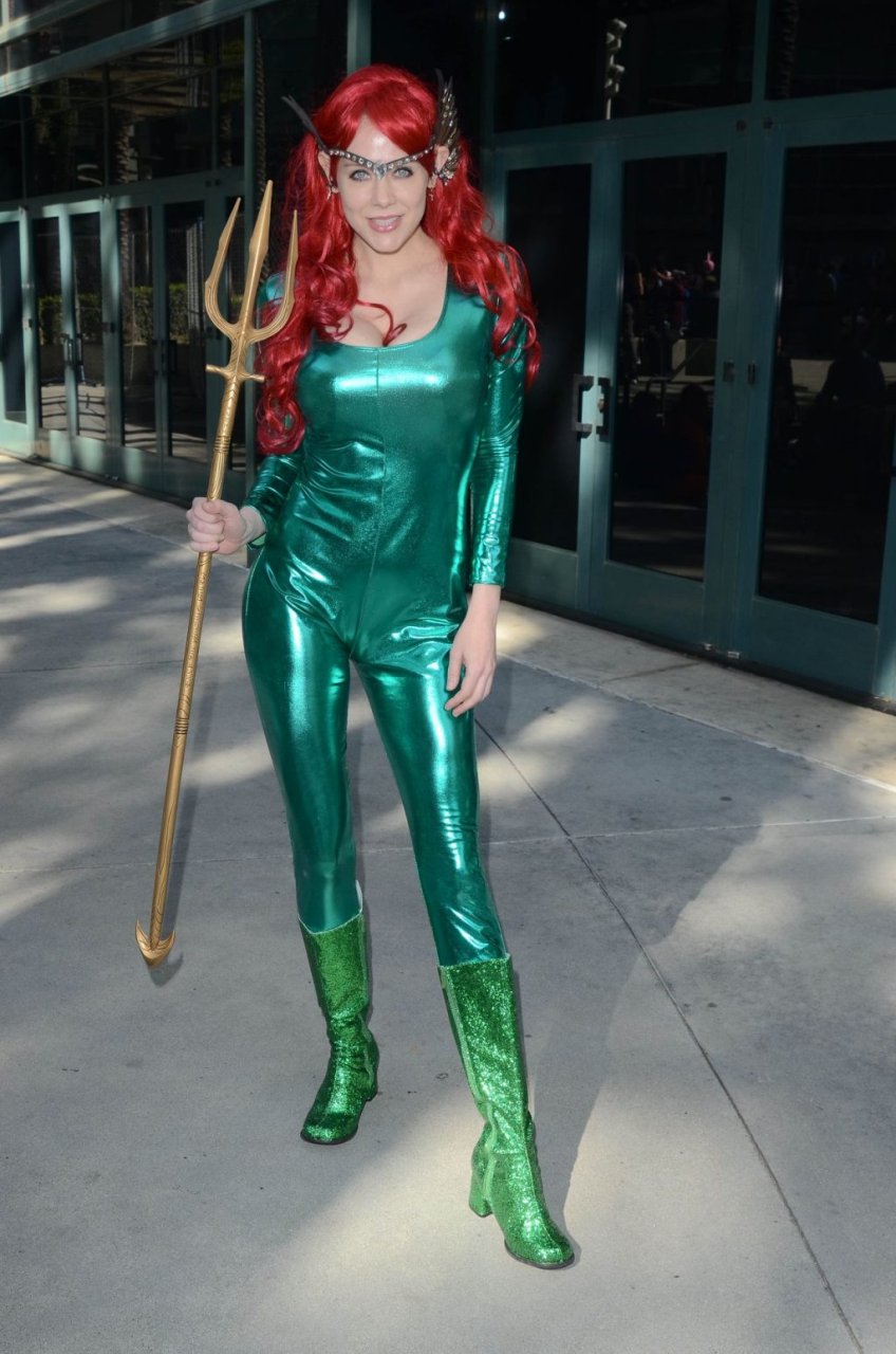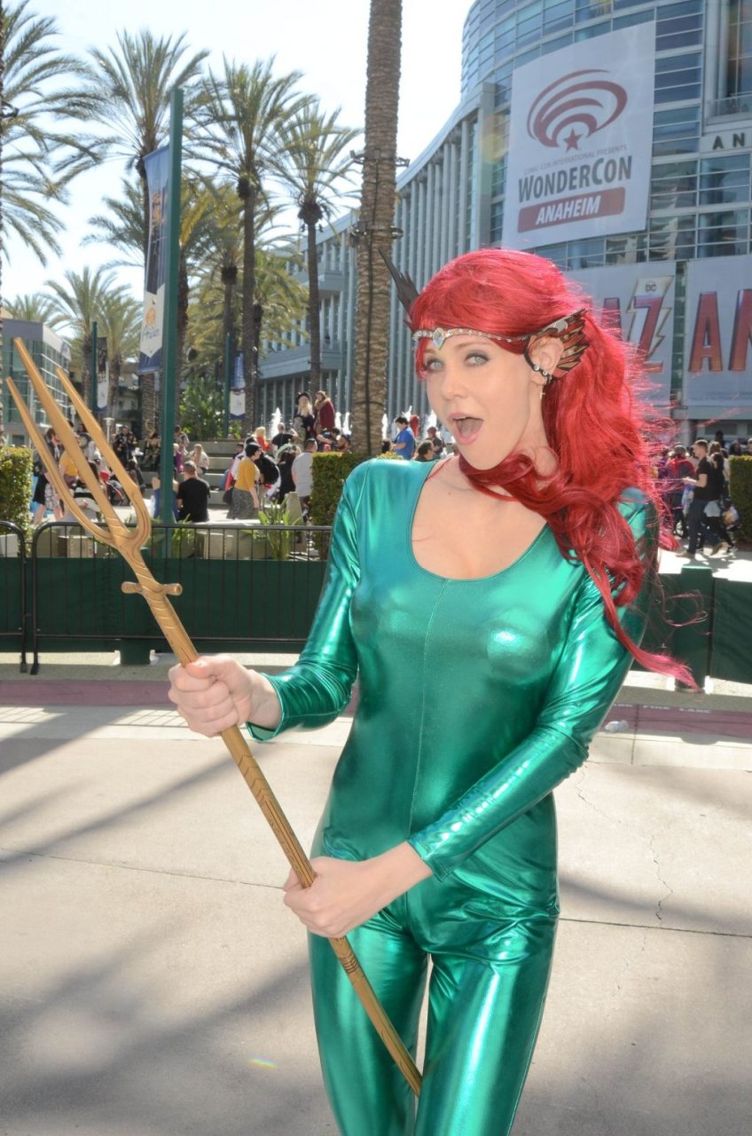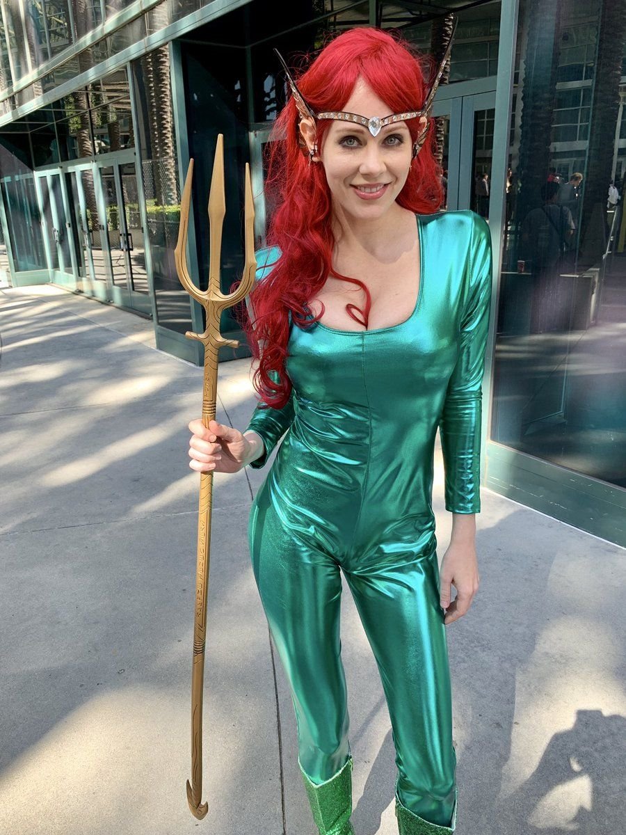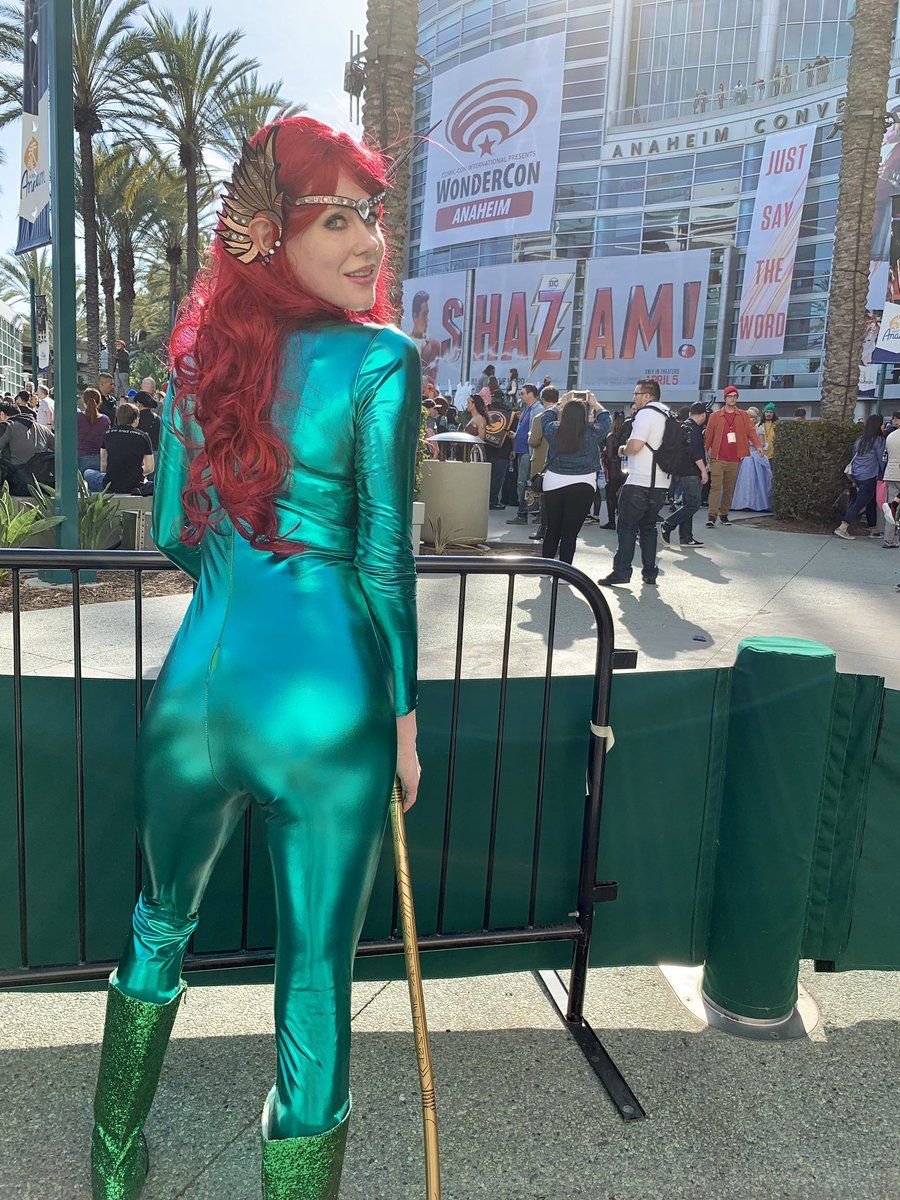 “Звезда сериала «Мальчик встречает мир» Мейтланд Уорд косплеит Меру из “Аквамена” на WonderCon и переодевается после в своем гостиничном номере, 30.03.2019.