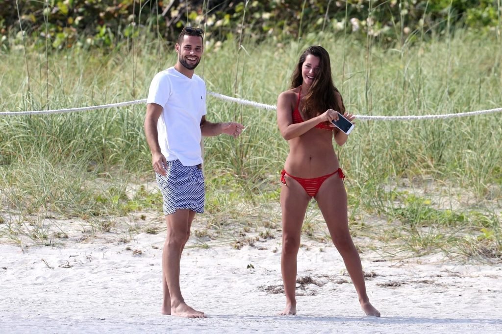 Испанский футболист Марио Суарес и его девушка Малена Коста (28) наслаждаются отпуском на пляже в Майами, 21.12.2017.