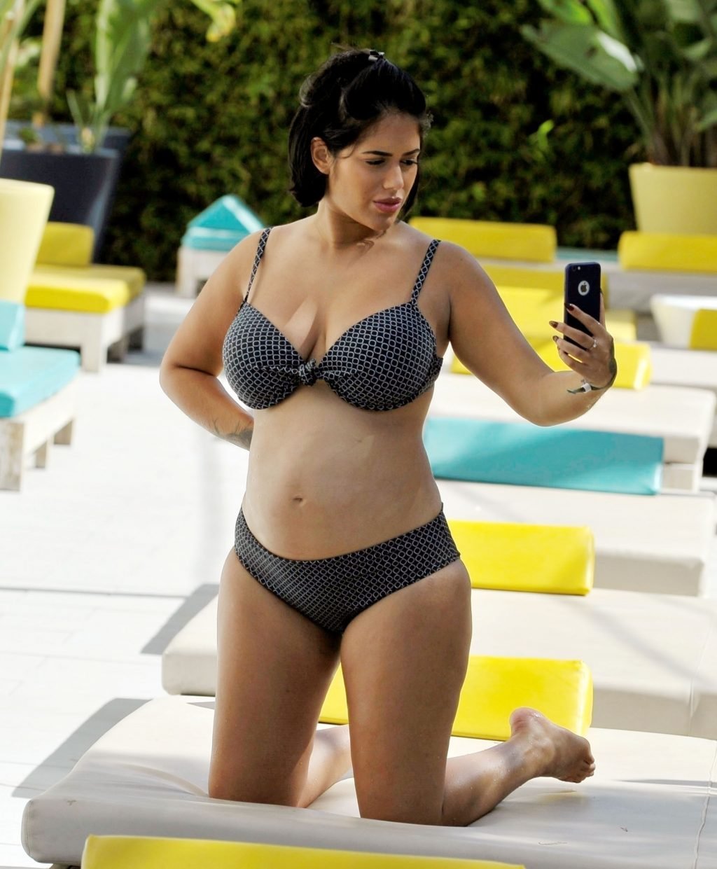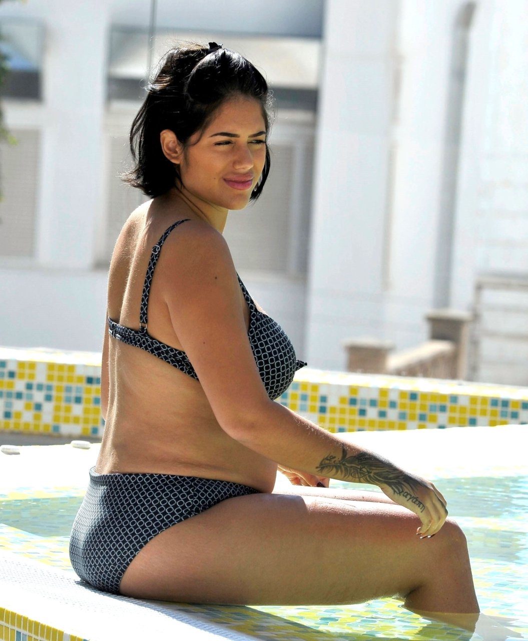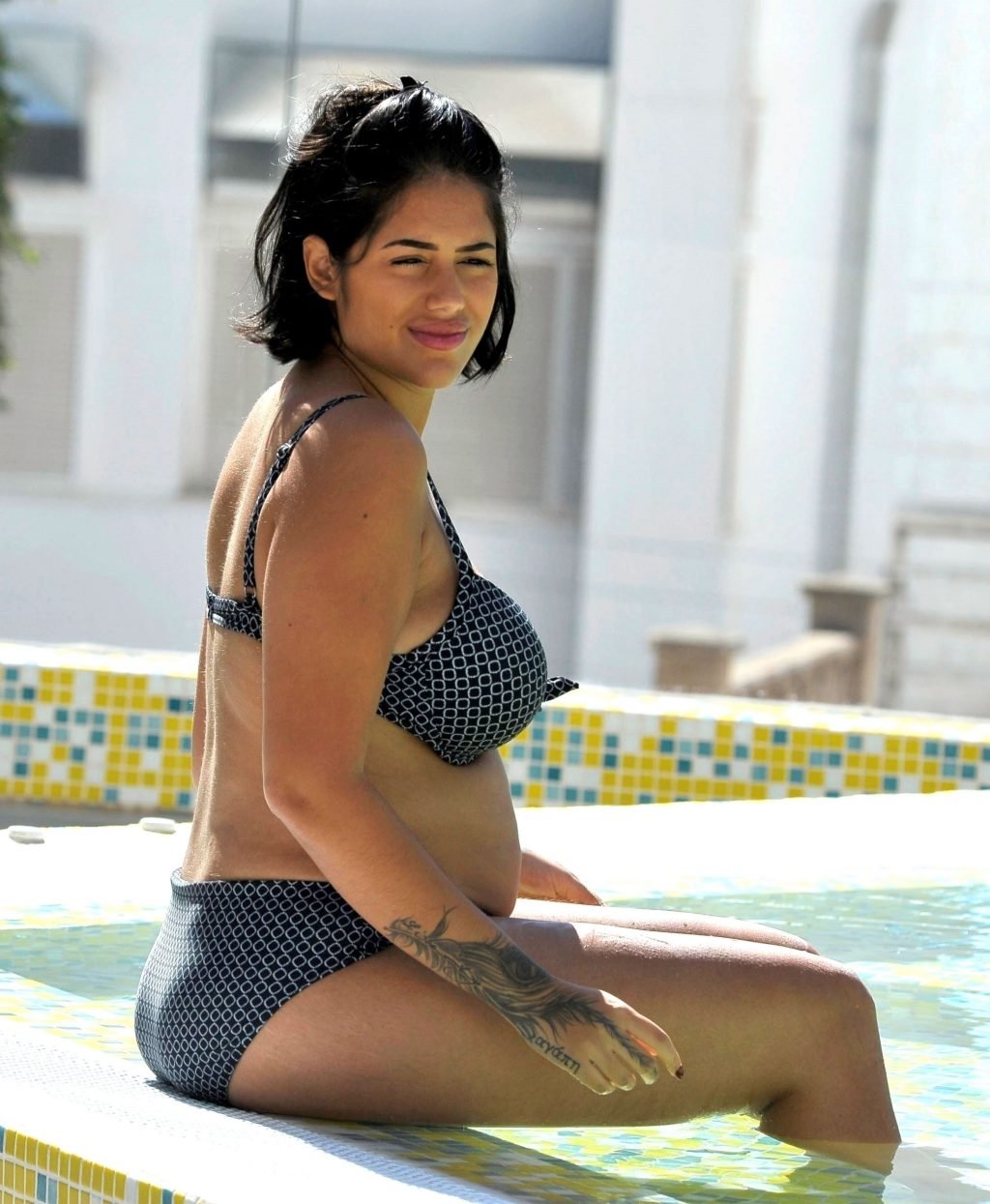 “Звезда “Love Island” и беременная Малин Андерссон сфотографирована у бассейна, гордо показывая свой животик во время отпуска в Испании (октябрь 2018). Малин выглядела счастливой и расслабленной, наслаждаясь испанским солнцем, окунаясь в бассейн и делая несколько селфи.