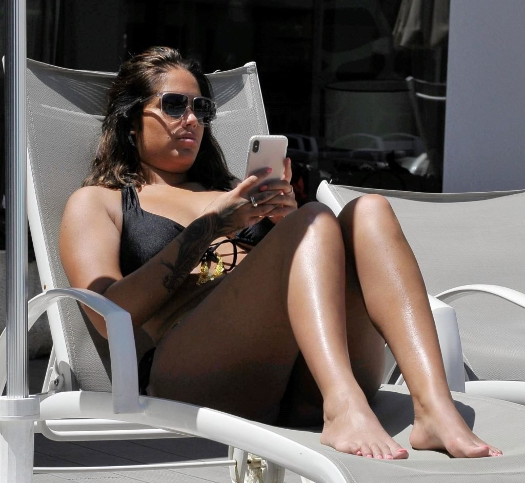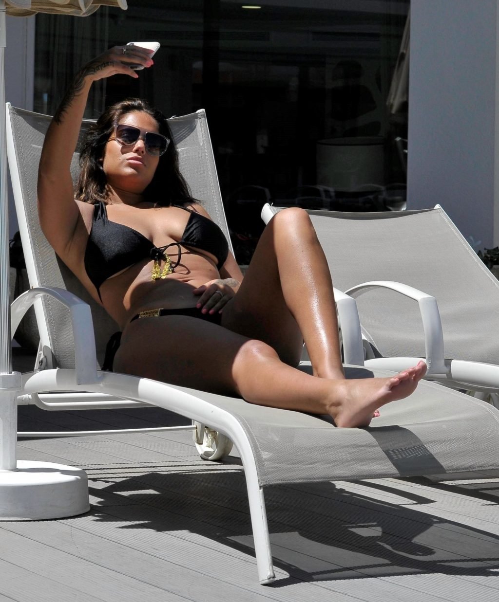 Love Island’s Malin Andersson была сфотографирована в черном бикини и делала селфи у бассейна перед шопингом на Ибице, 27.05.2019.