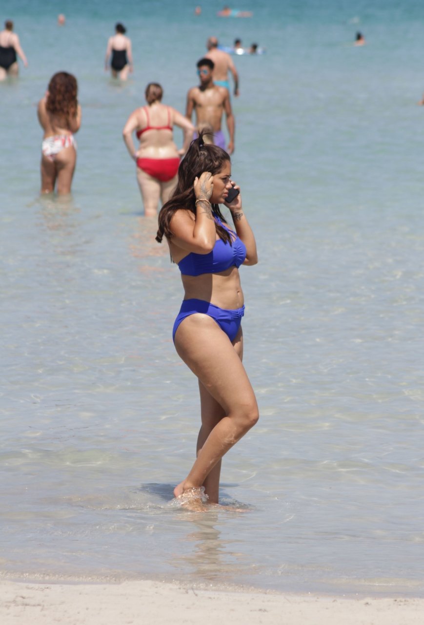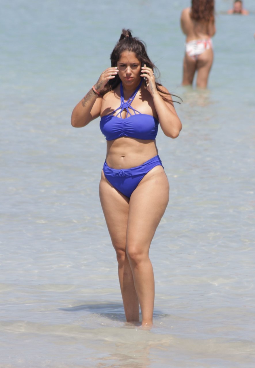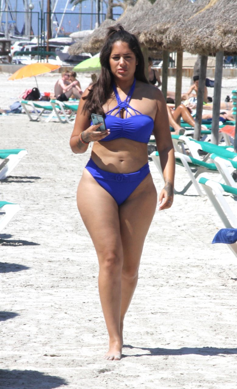 Бывшая звезда Love Island Малин Андерссон, 25 лет, загорала в своем синем бикини на отдыхе на Майорке. Малин, которая недавно объявила о своей беременности, демонстрирует свой животик и 7-тысячный лифтинг груди и ягодиц, прогуливаясь по белому песчаному пляжу.